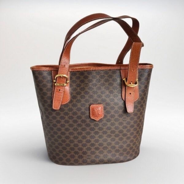 Celine Vintage Tote Bag Brown Coated Canvas with Leather and Gold Hardware #RUUK-5