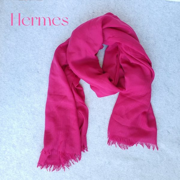 Hermes Plain H Stole Dark Pink Wool/Cashmere #TCOR-5