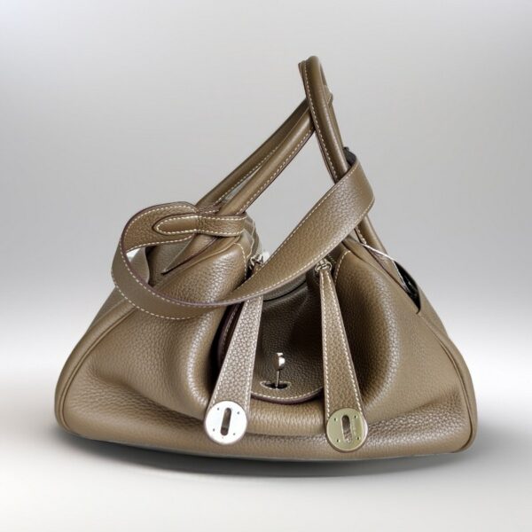 Hermes Lindy 30 Etoupe Clemence Leather with Palladium-plated Hardware #RUKE-2