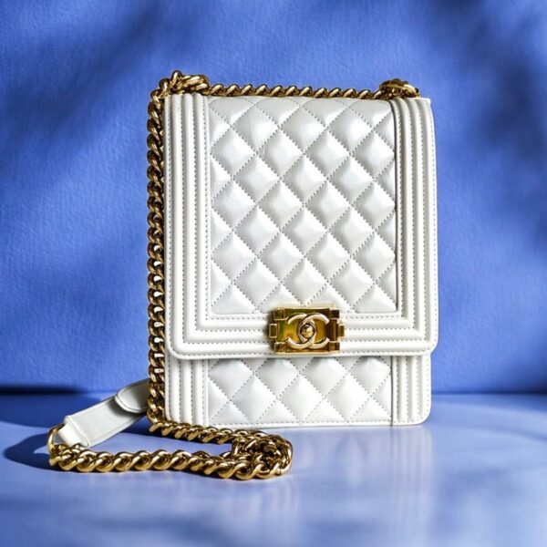 Chanel Boy Buckle Crossbody/Shoulder Bag Pearl White Calf Leather with Silver Hardware #RURL-2