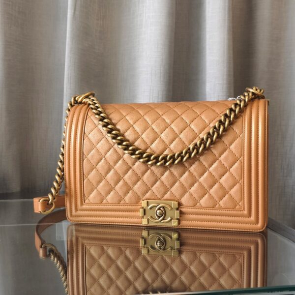 Chanel Boy Large Gold Calf Leather with Gold Hardware #RKUS-1