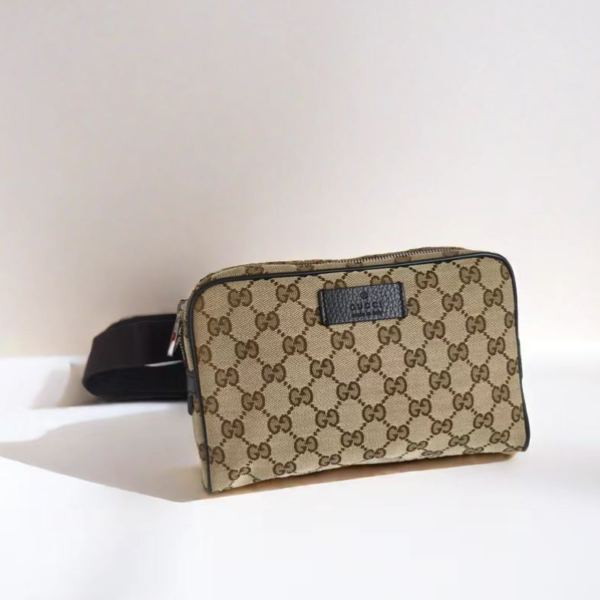 Fendi Belt Bag Black Calf Leather with Canvas and Gold Hardware #ORSL-3