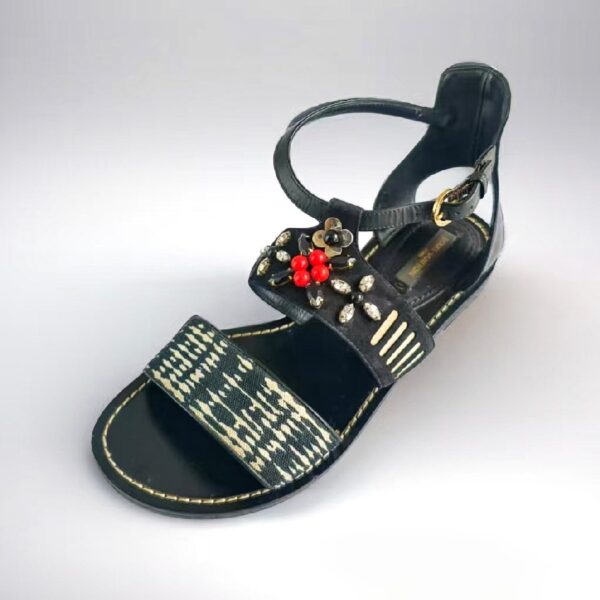 LV Sandal Size 38 Black/White Leather Shoes #RCKL-4