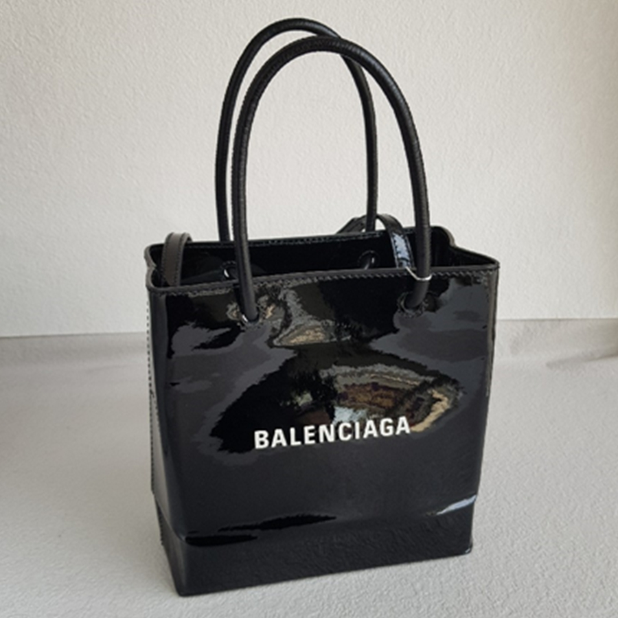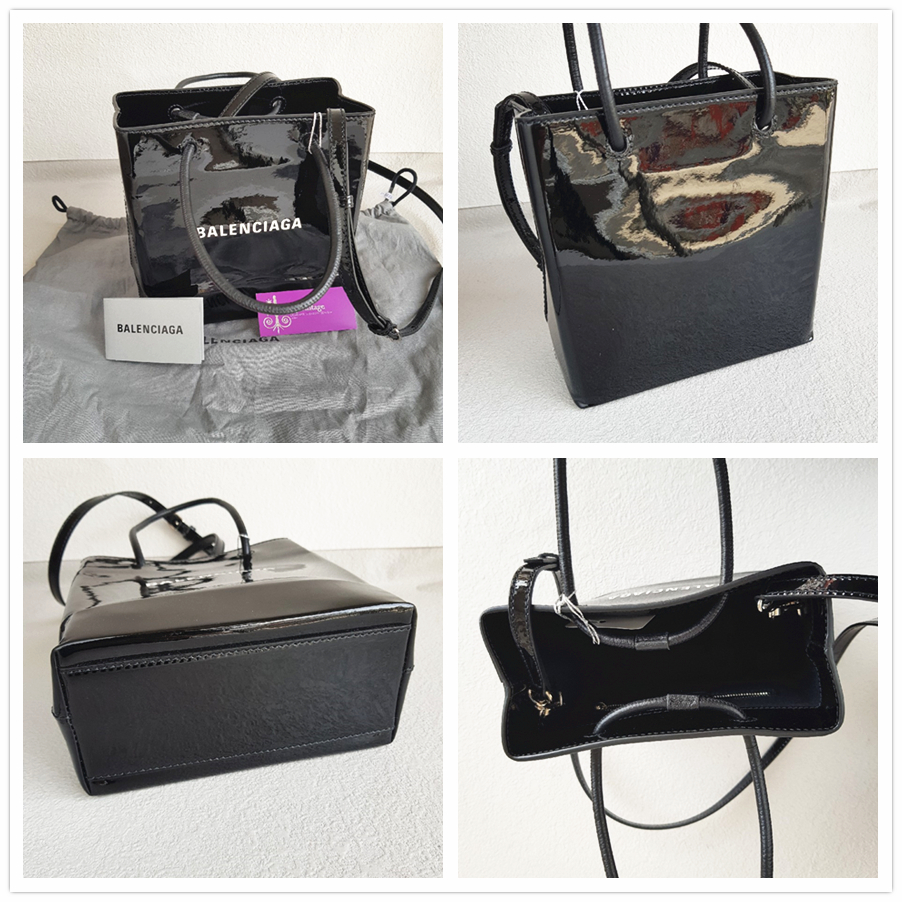 Balenciaga XXS Shopping Tote Black Patent Leather with Silver Hardware #RYOO-1
