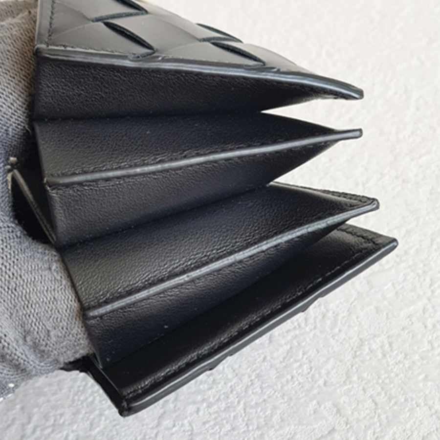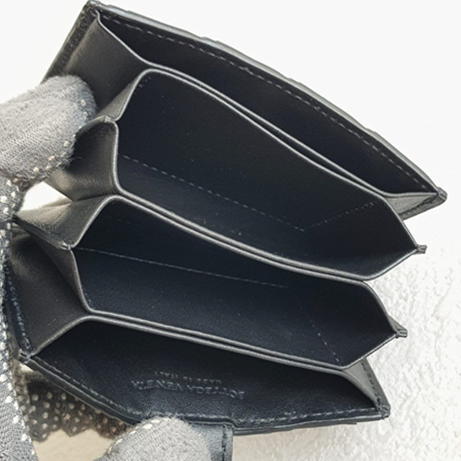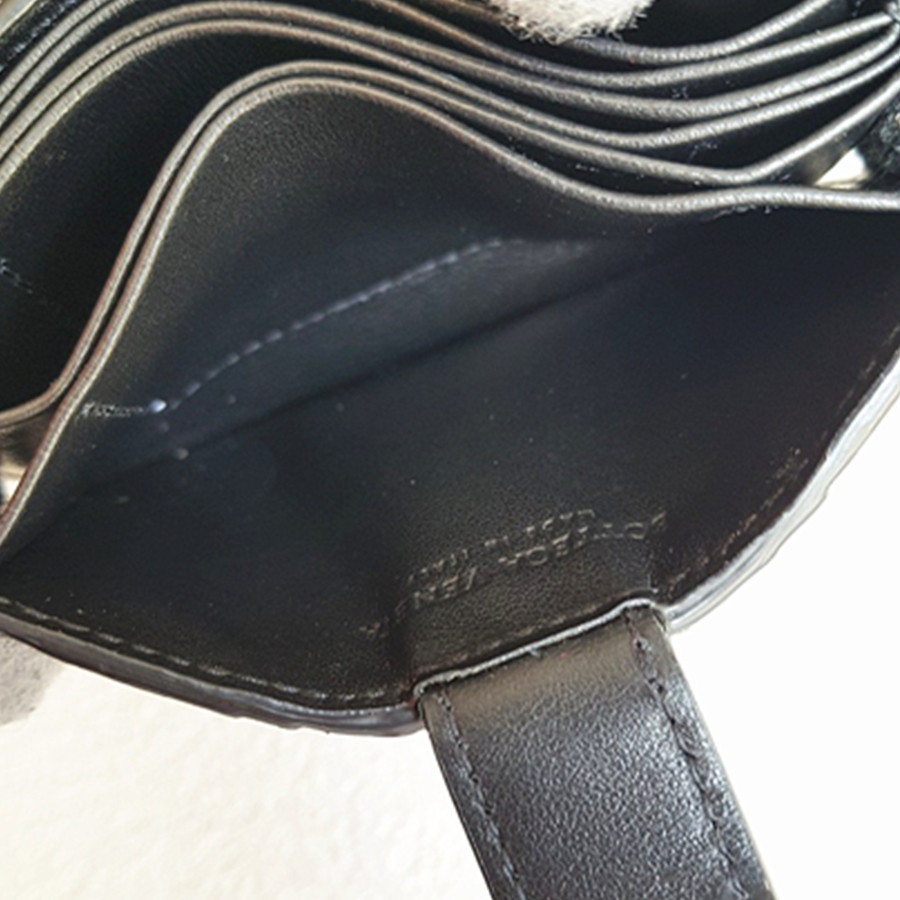 Bottega Veneta Card Holder Black Intrecciato Leather with Silver Hardware #RSLY-201