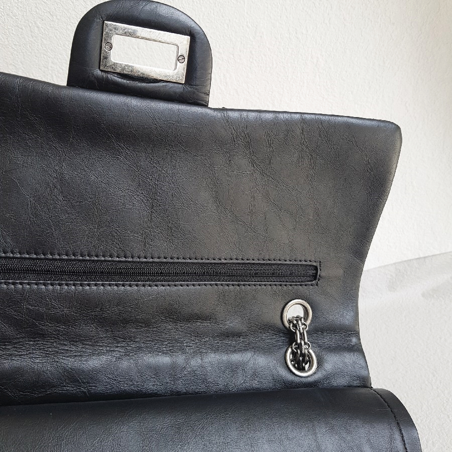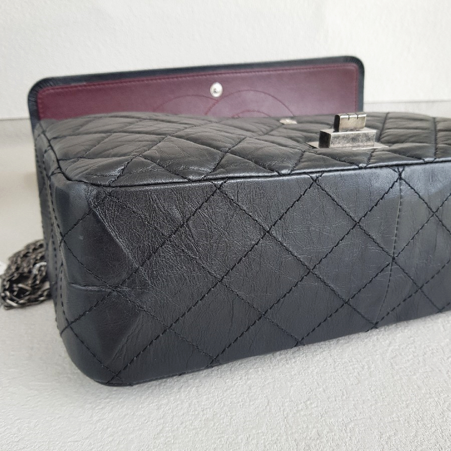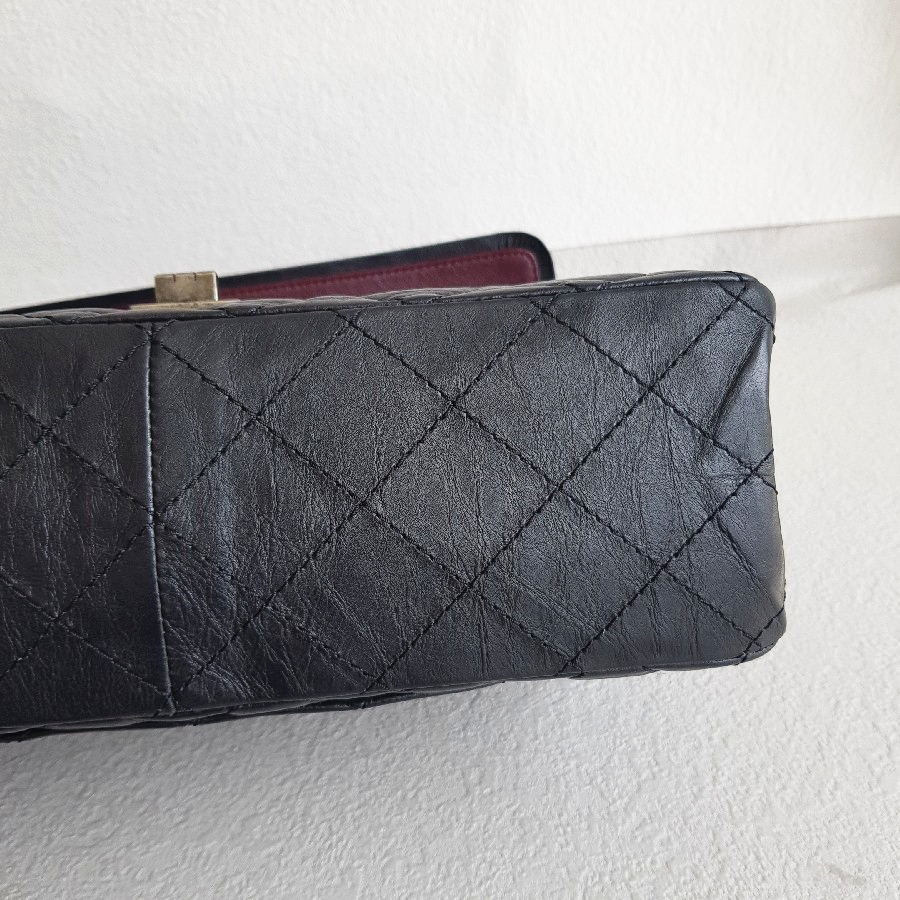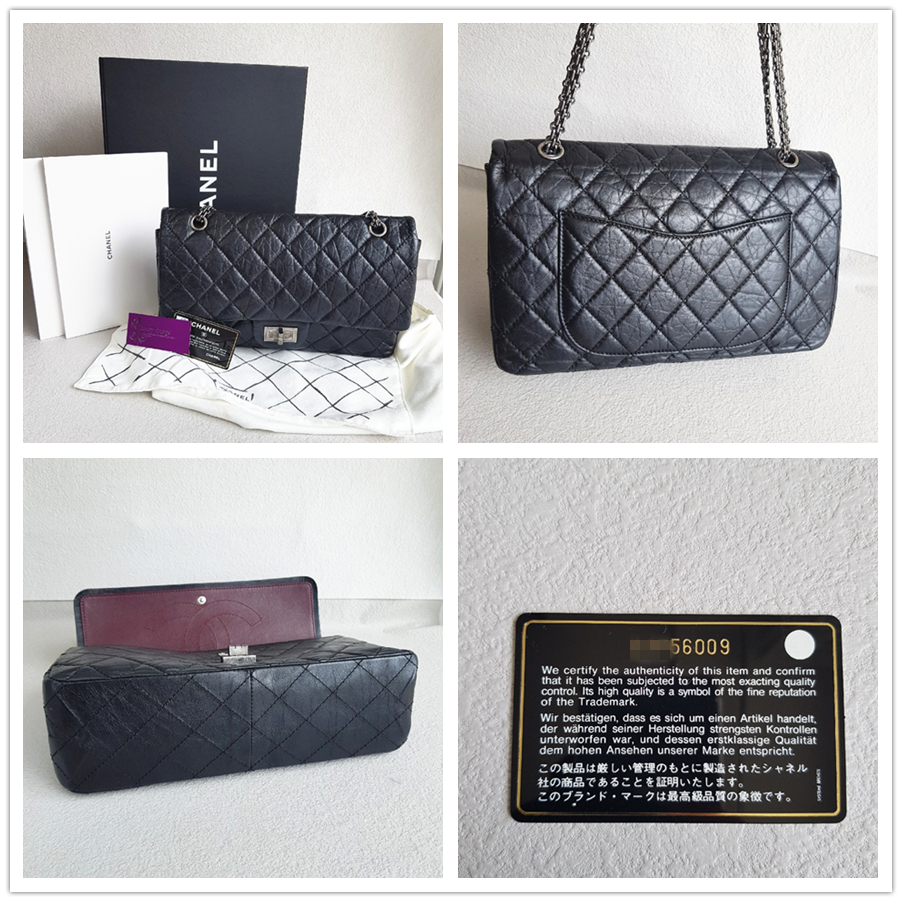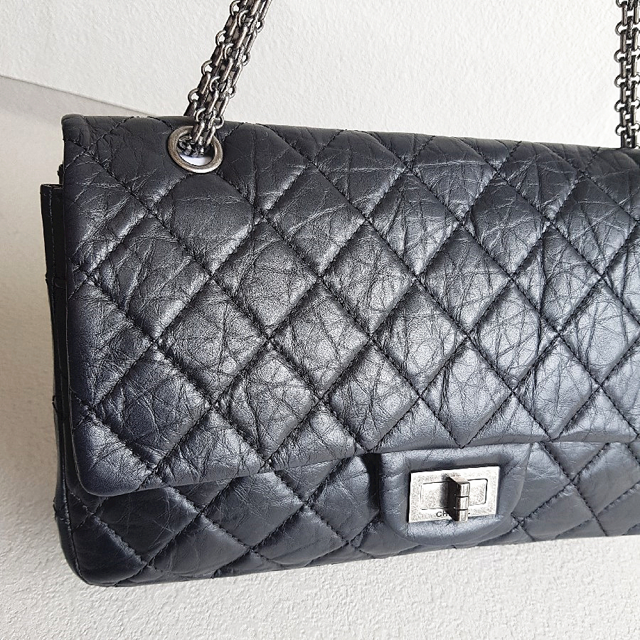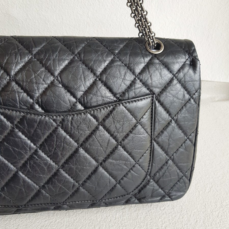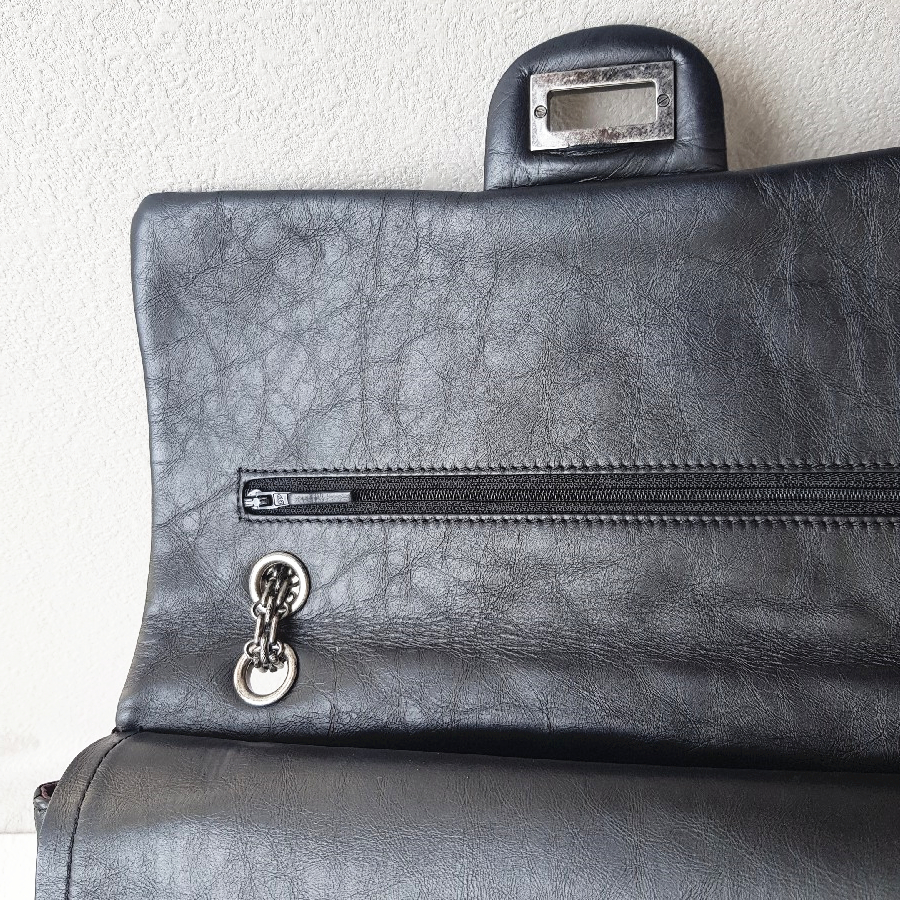 Chanel 2.55 Maxi Double Flap Black Aged Calfskin with Ruthenium Hardware #RSUU-1