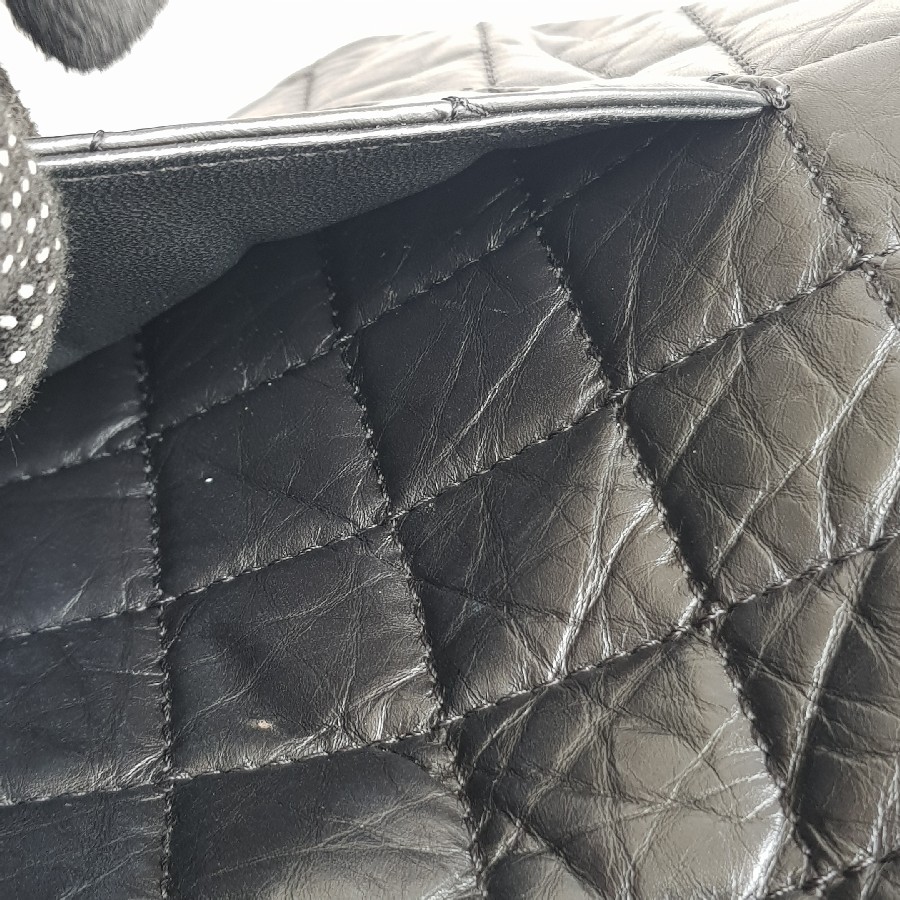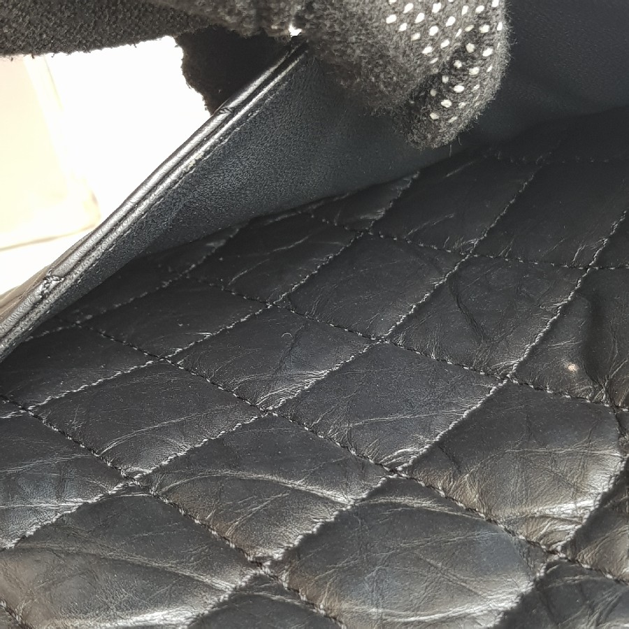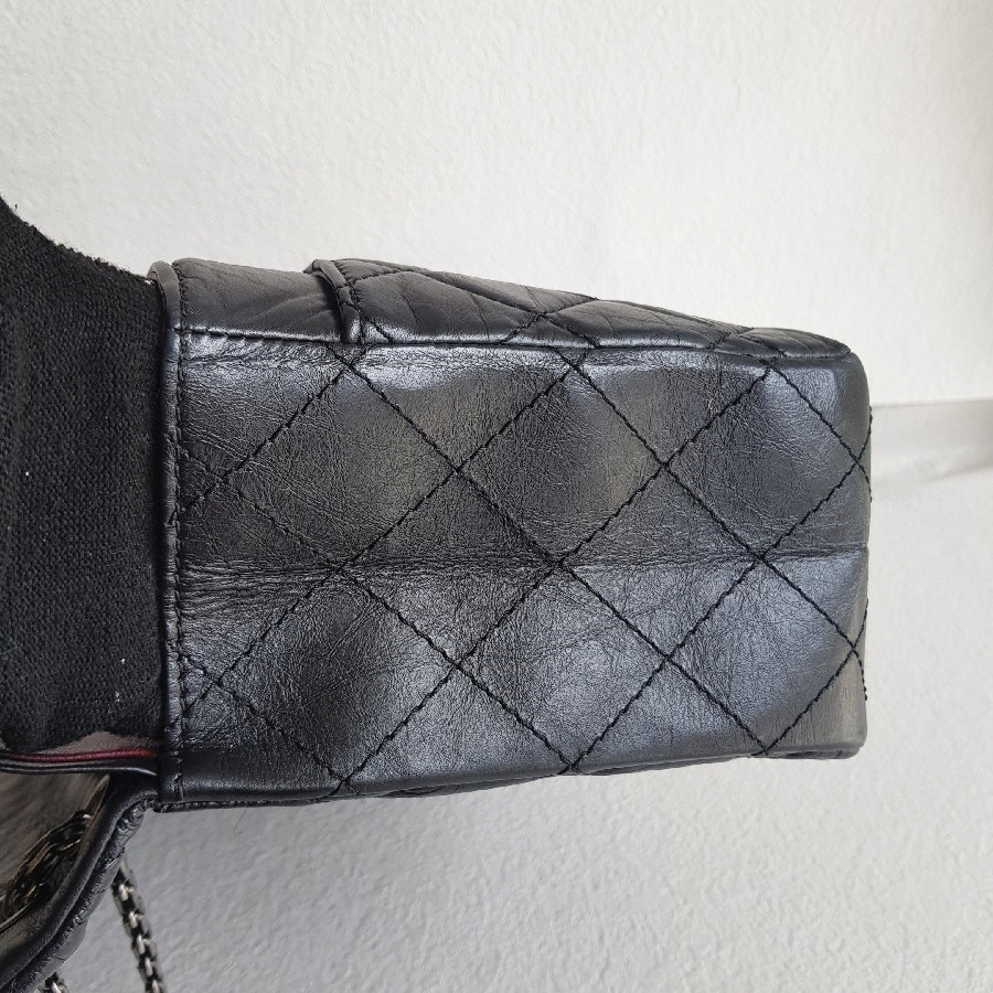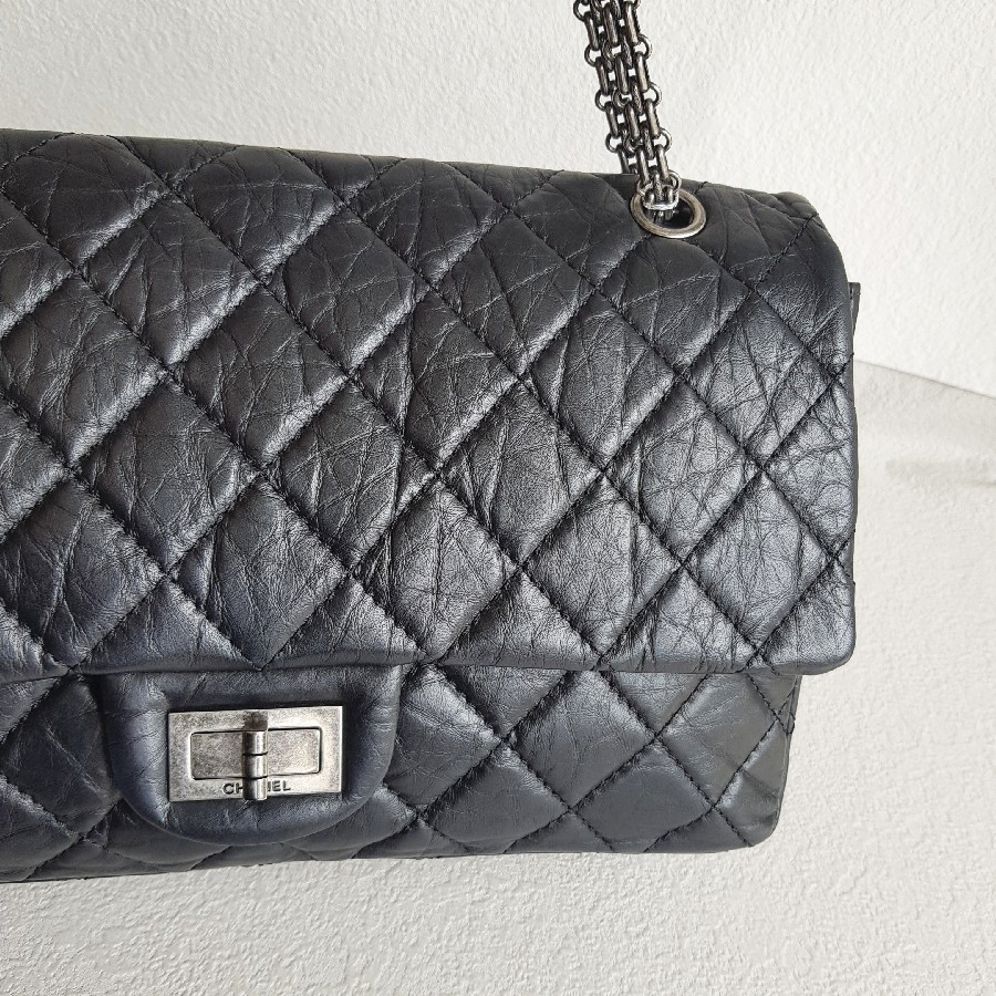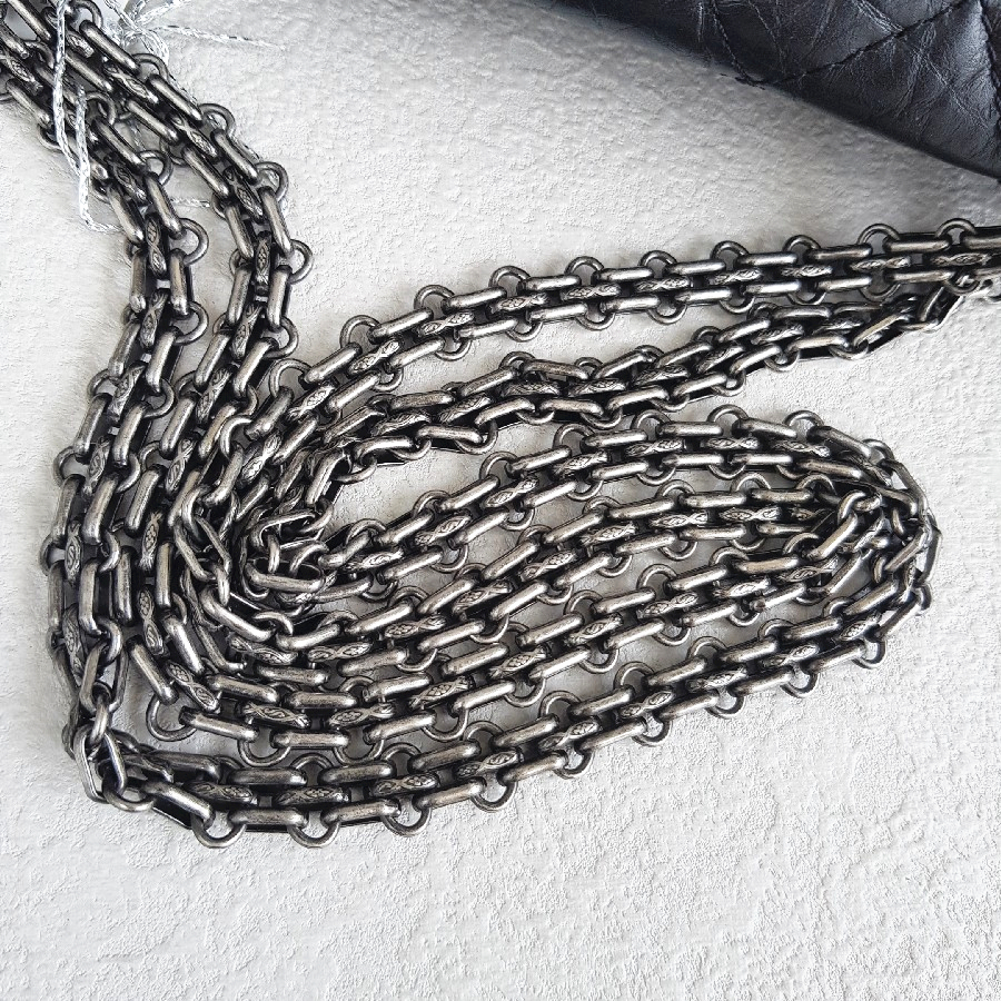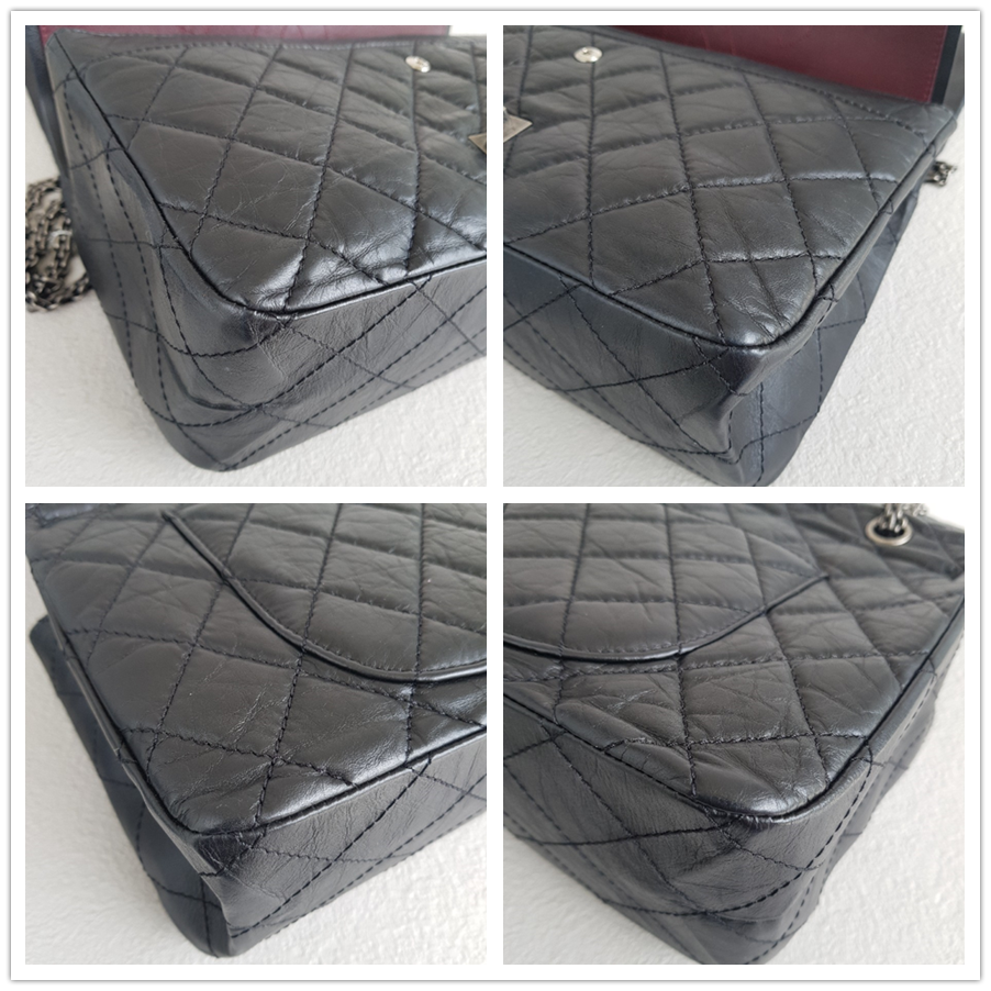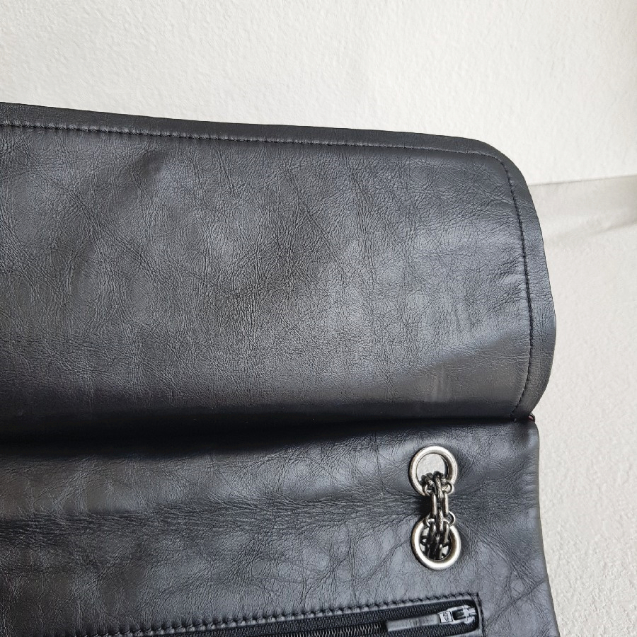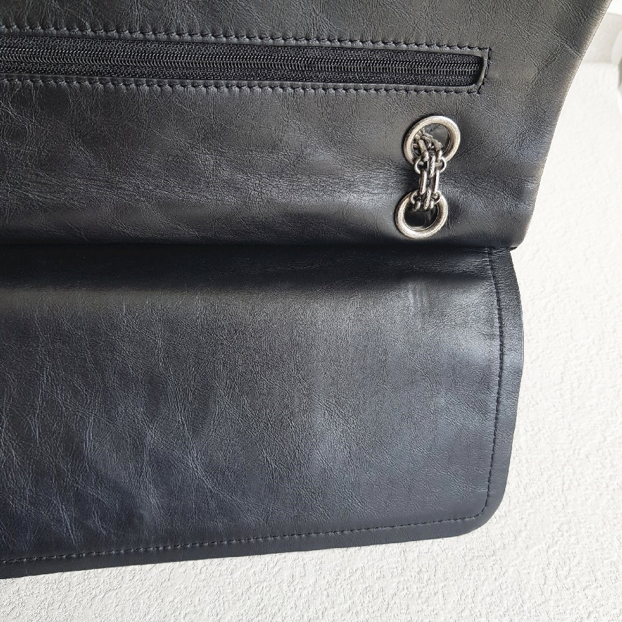 Chanel 2.55 Maxi Double Flap Black Aged Calfskin with Ruthenium Hardware #RSUU-1
