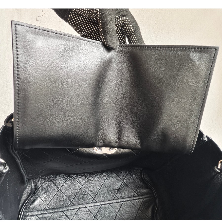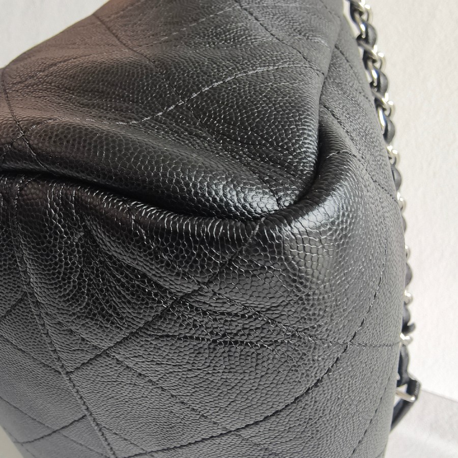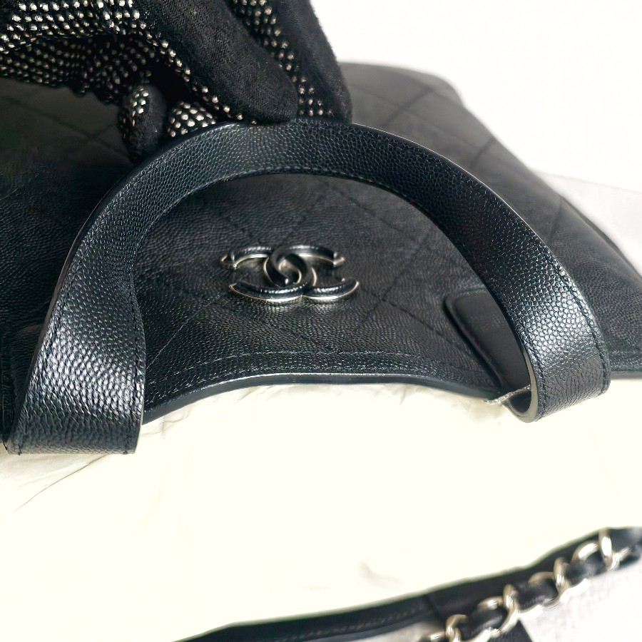 Chanel 2Way-bag Black Grained Calfskin with Silver Hardware #RSEK-1