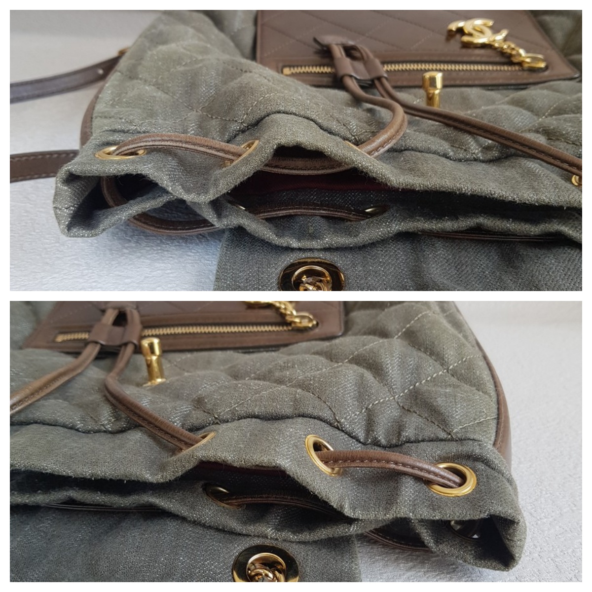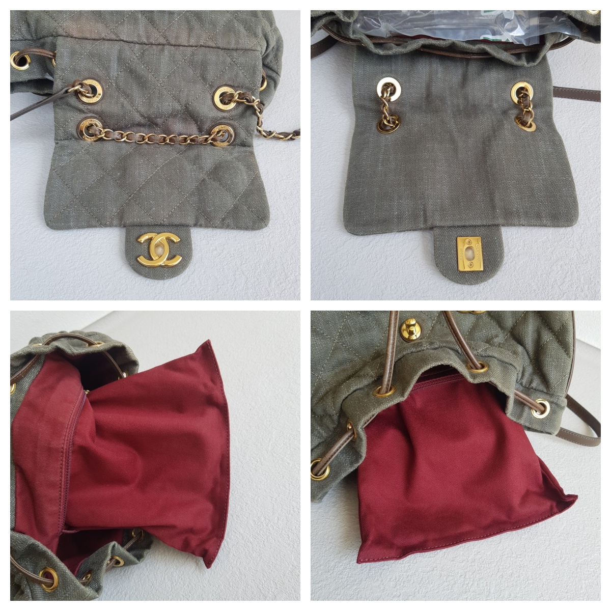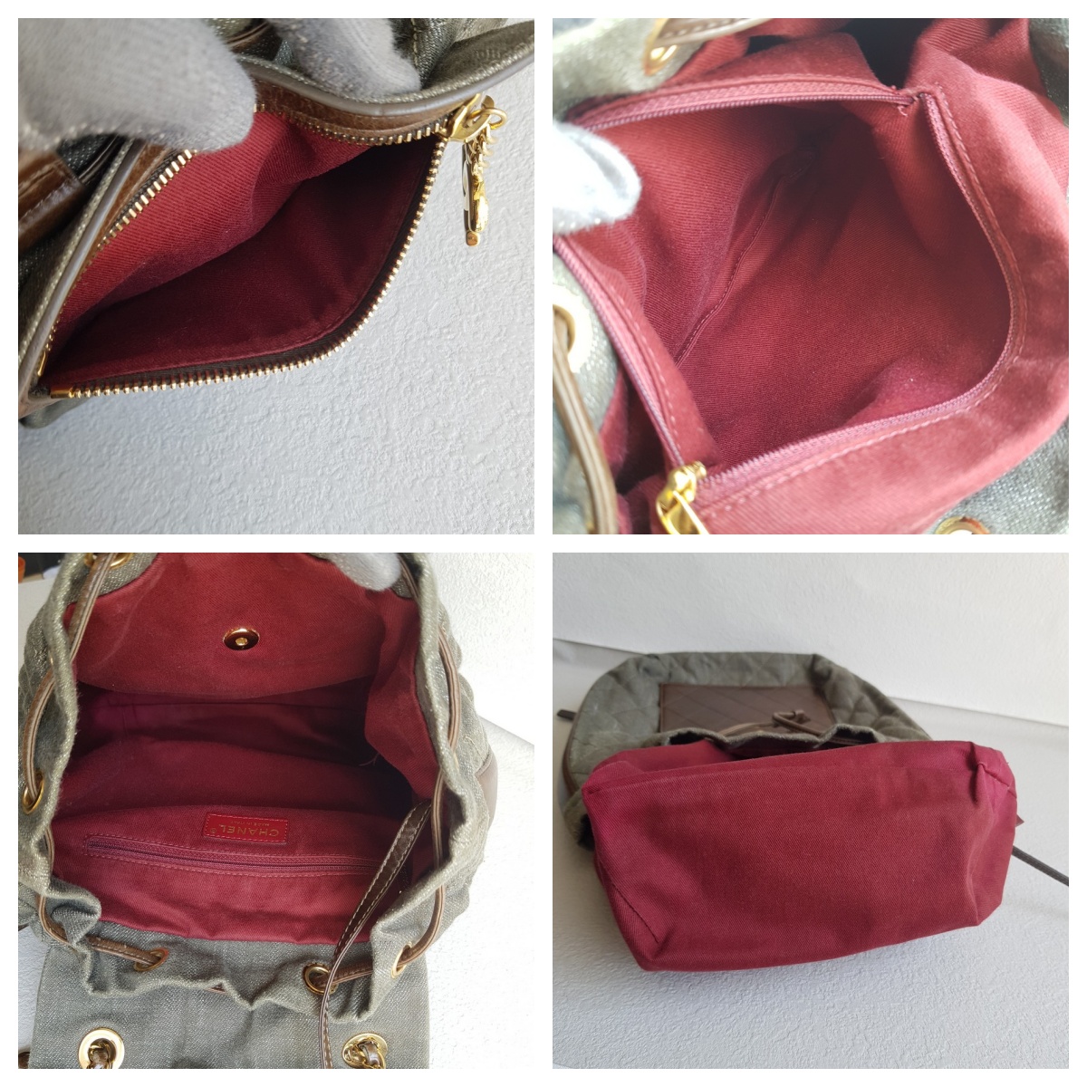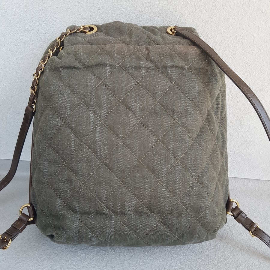 Chanel Backpack Olive Green Canvas with Leather and Gold Hardware #RERC-6