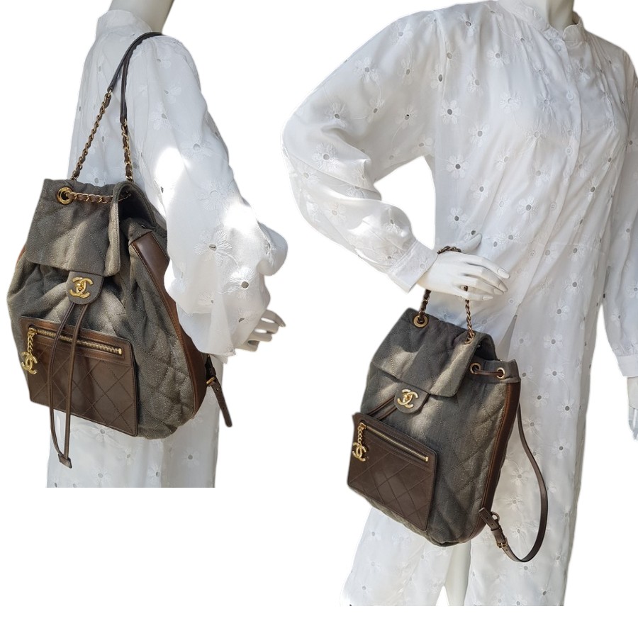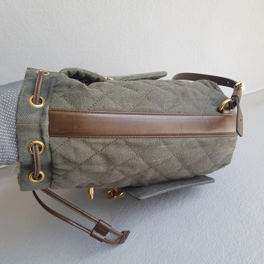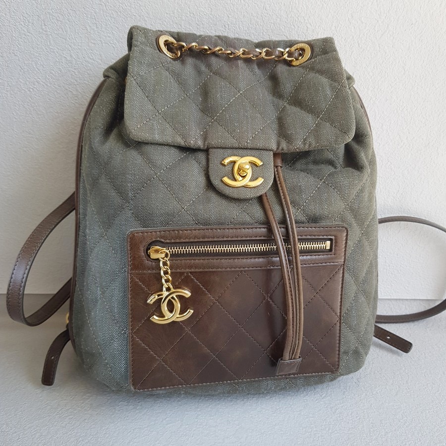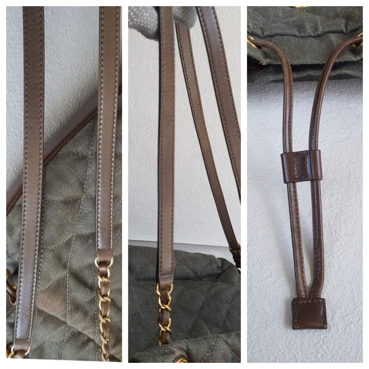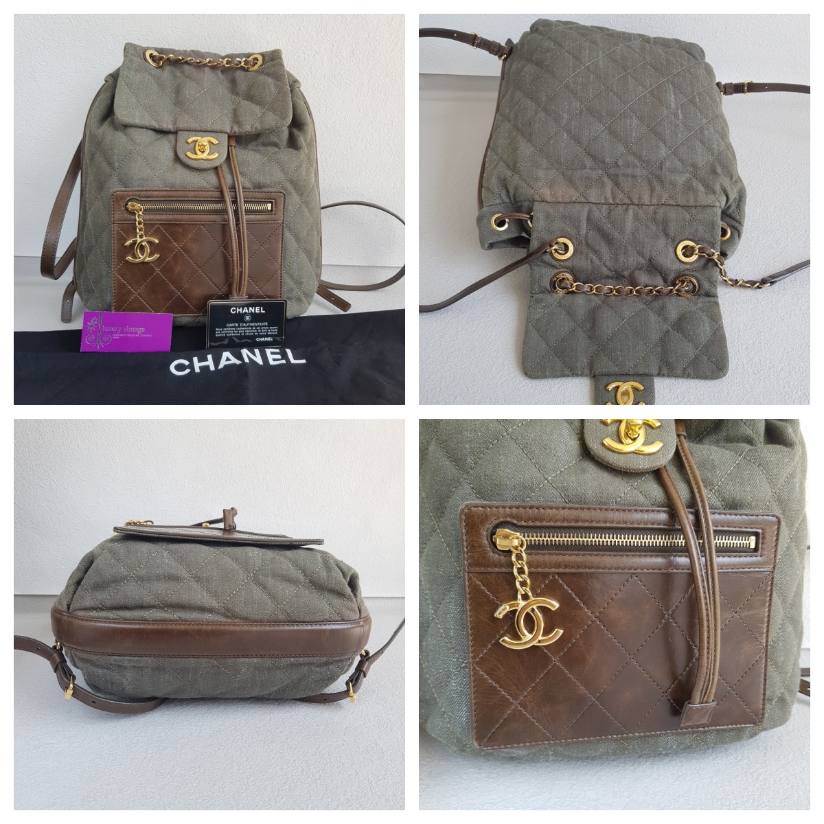 Chanel Backpack Olive Green Canvas with Leather and Gold Hardware #RERC-6