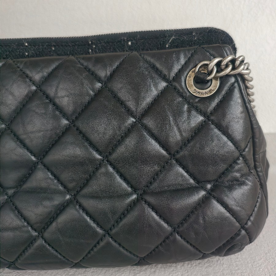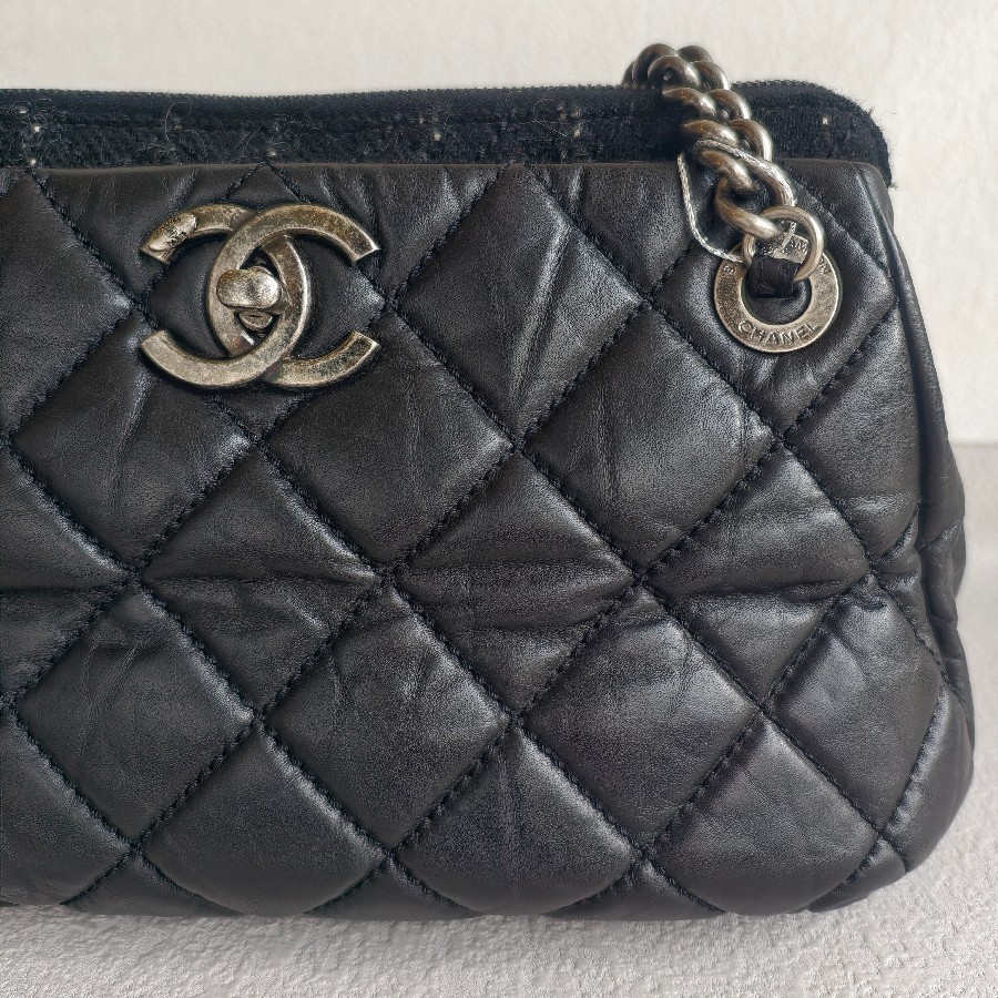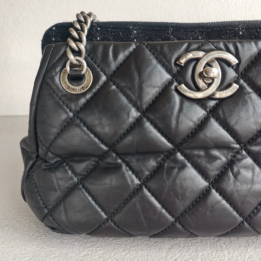 Chanel Bowler Shoulder Bag Black Aged Calfskin with Ruthenium Hardware #RCLO-1