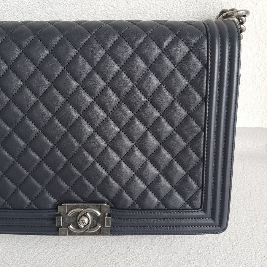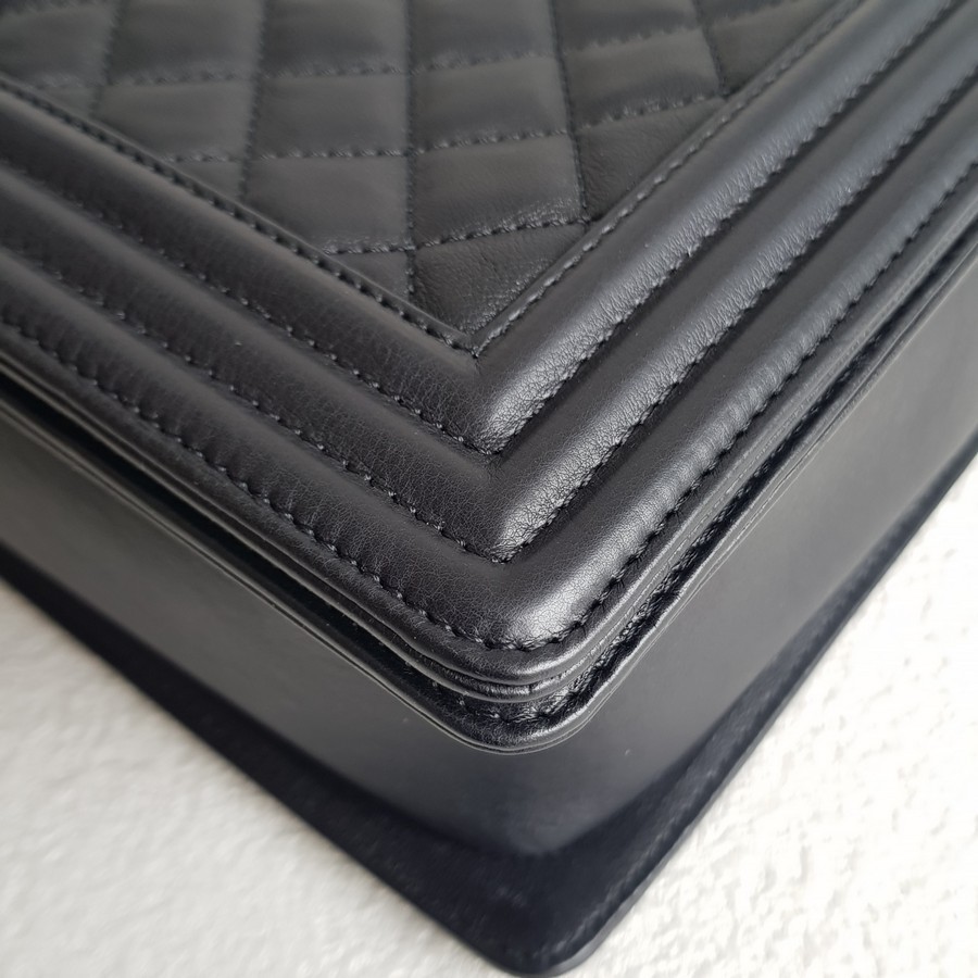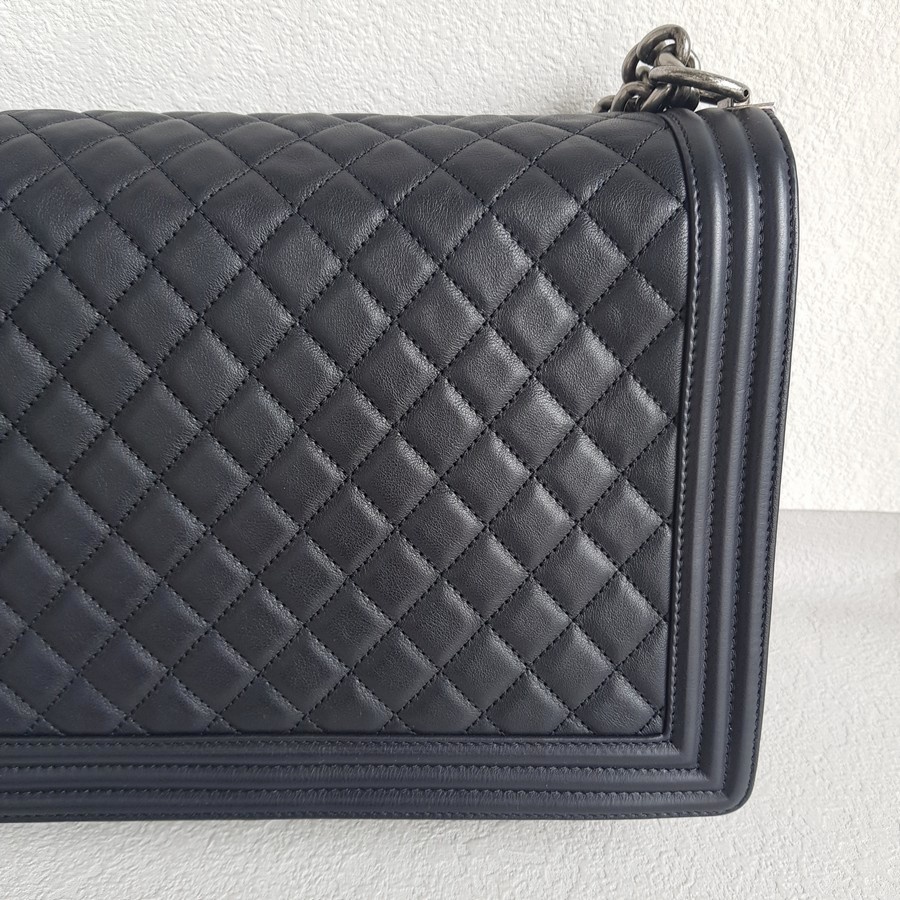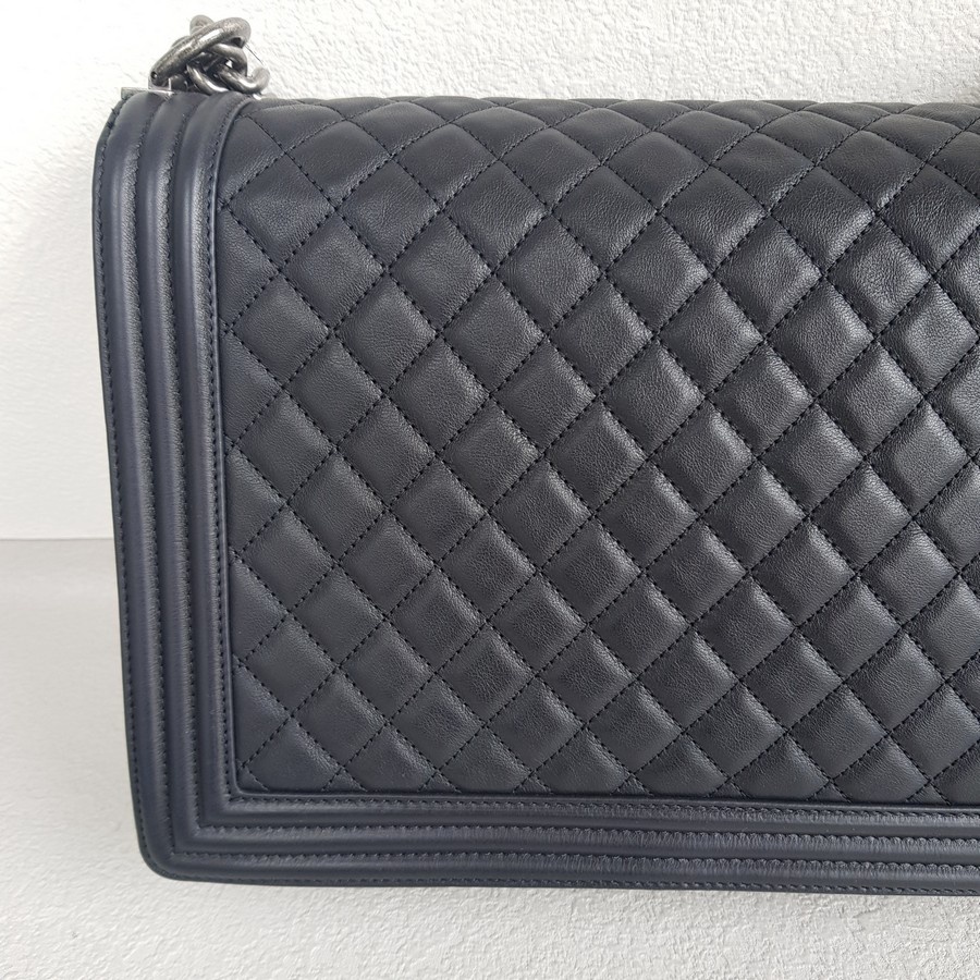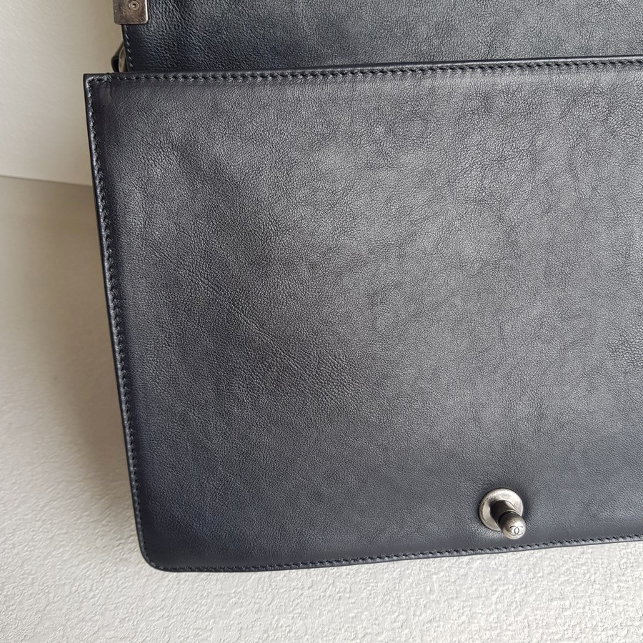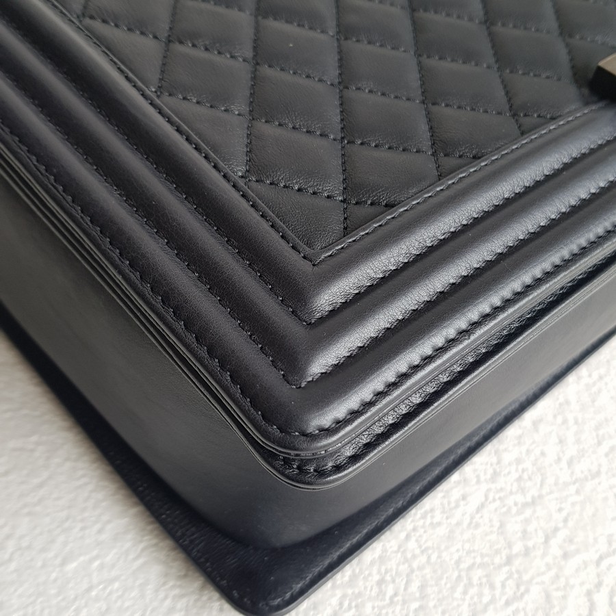 Chanel Boy Large 30cm Black Calf Leather with Ruthenium Hardware #RERL-1