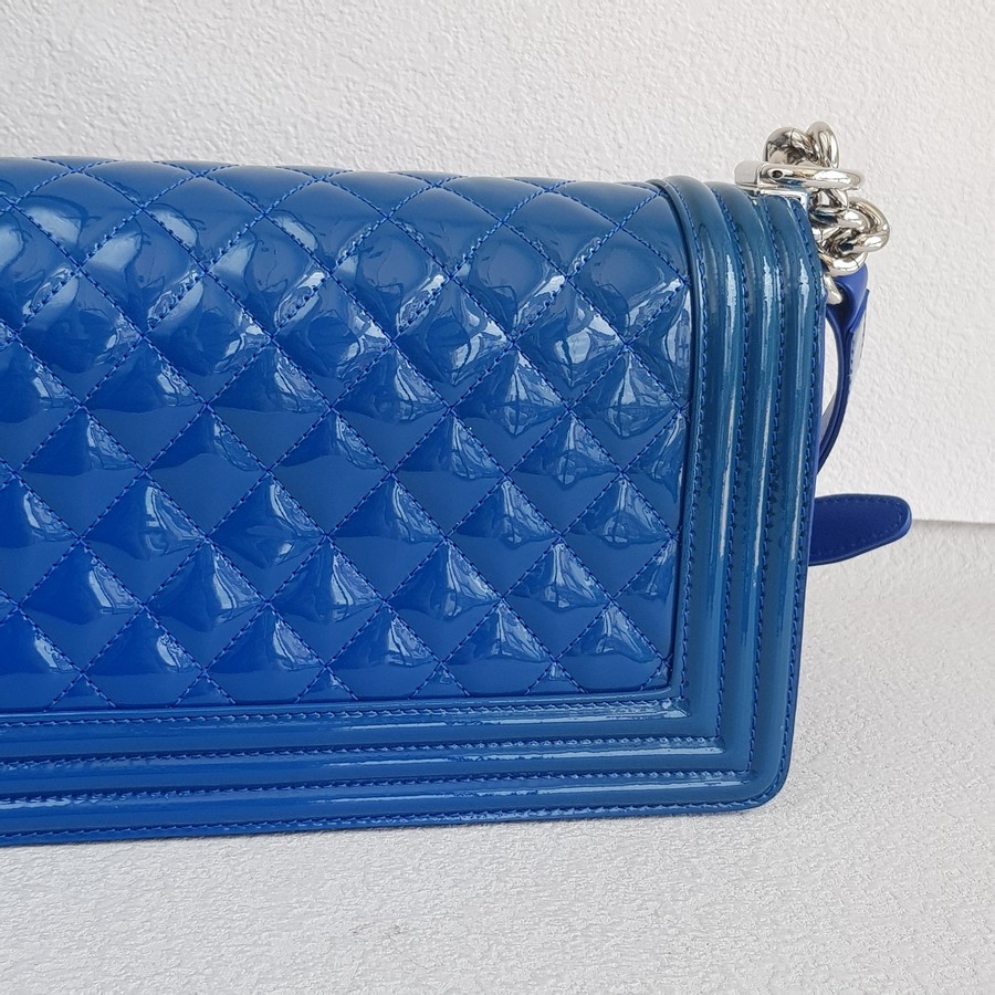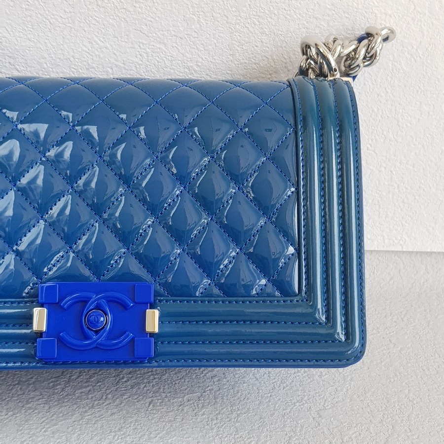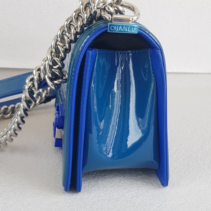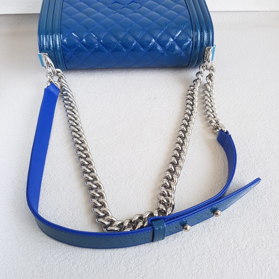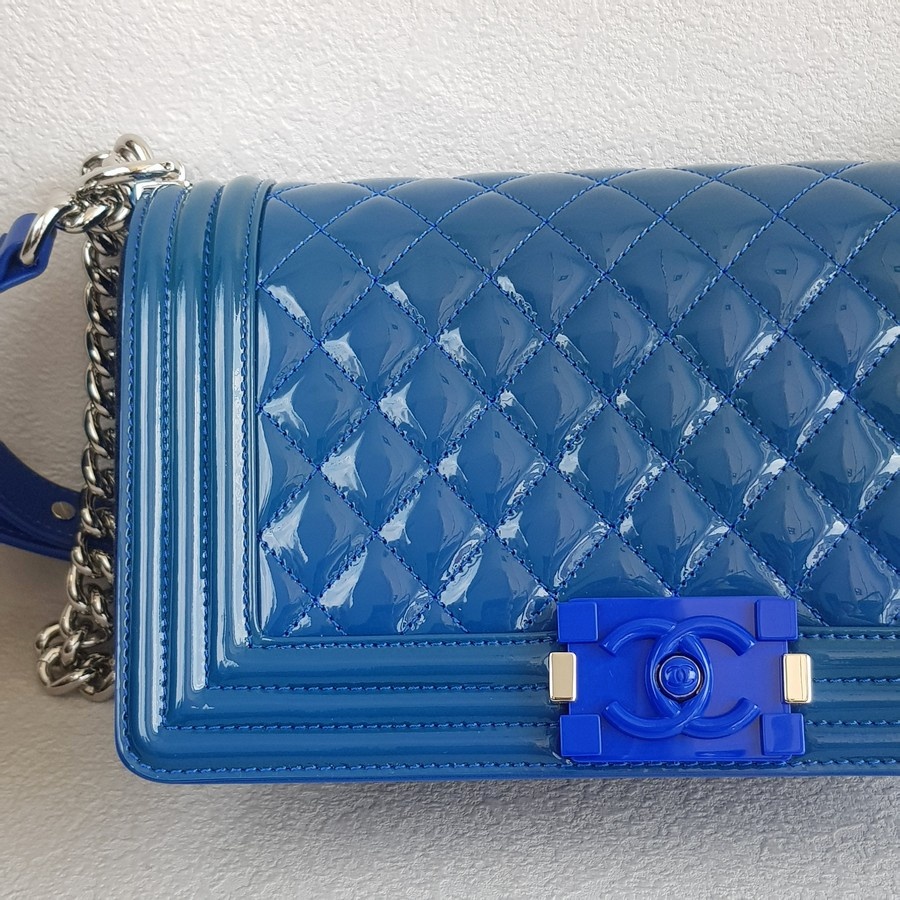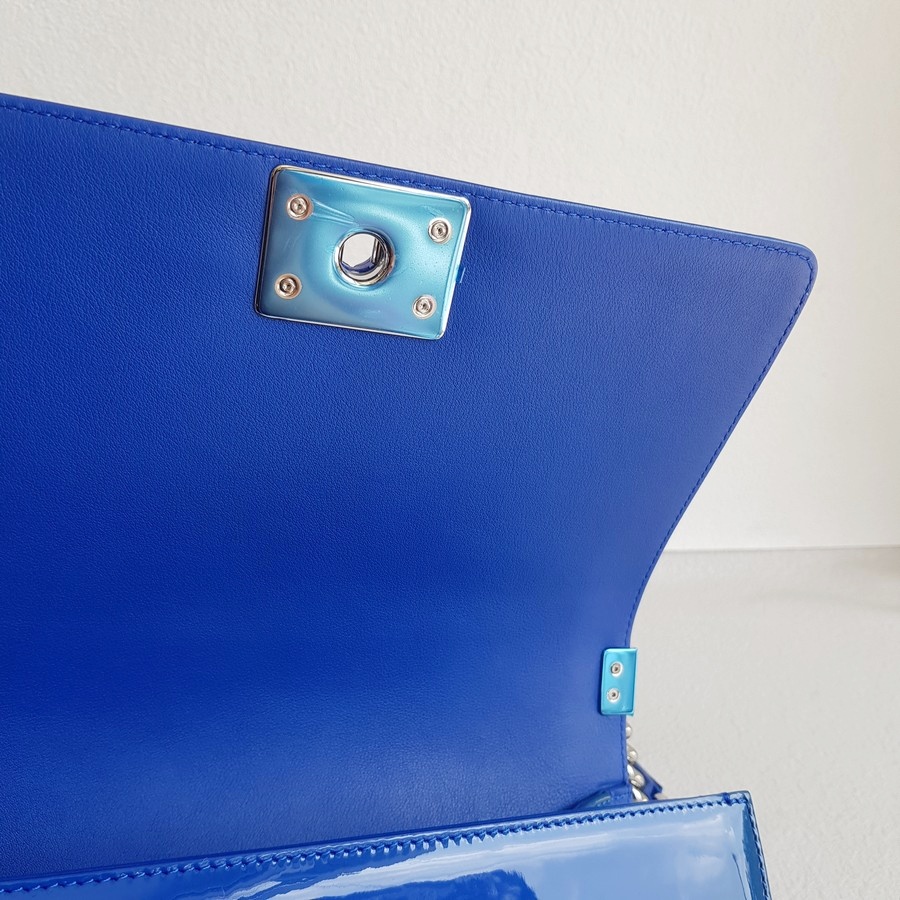Chanel Boy Medium 25cm Blue Patent Leather with Silver Hardware #RTSK-2