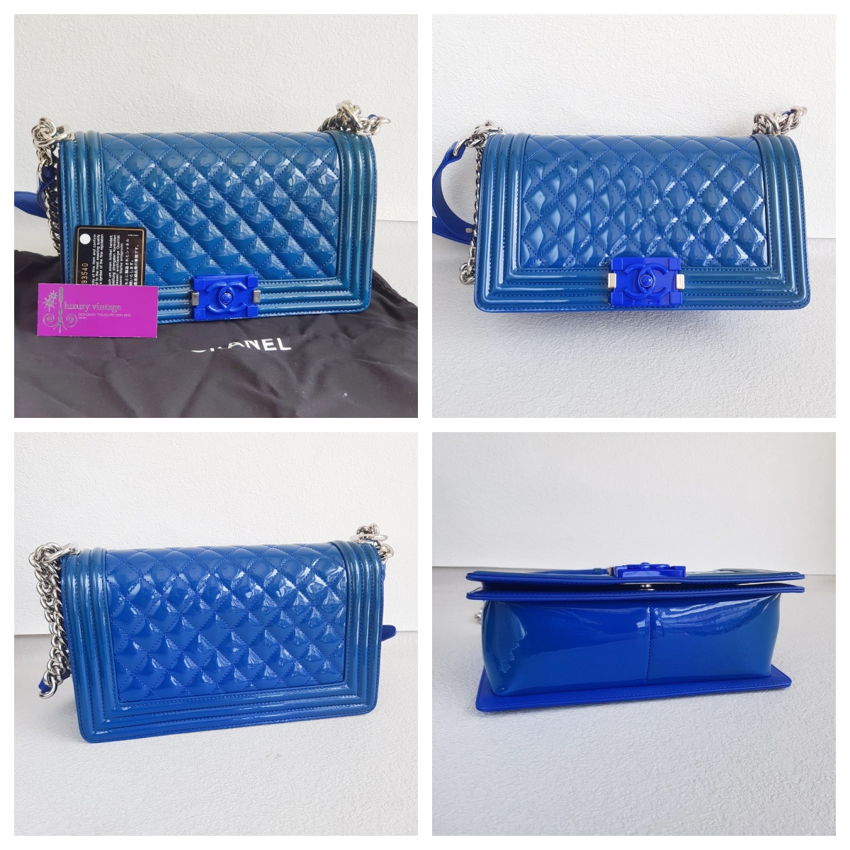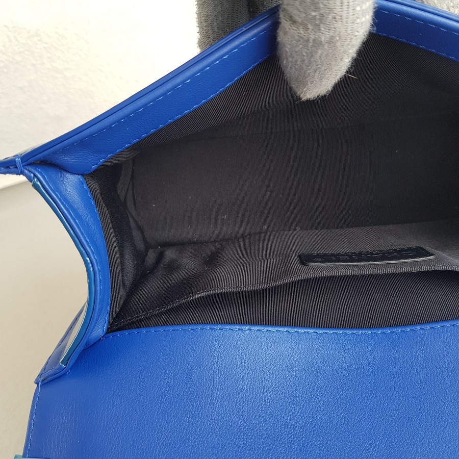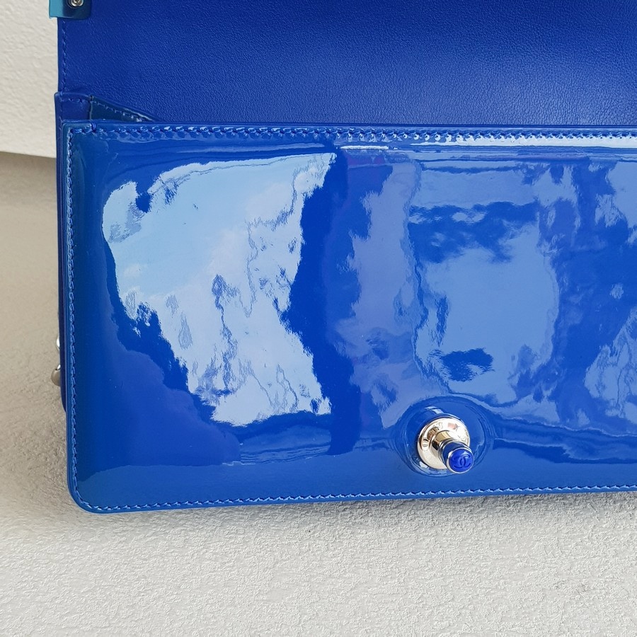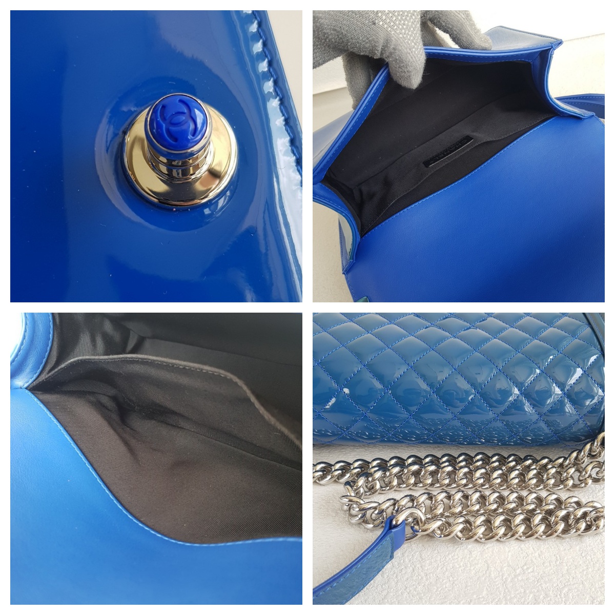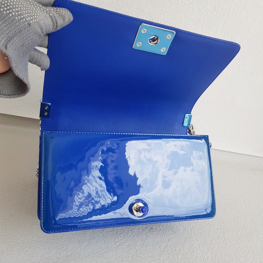 Chanel Boy Medium 25cm Blue Patent Leather with Silver Hardware #RTSK-2