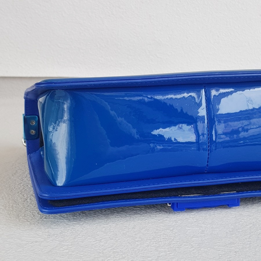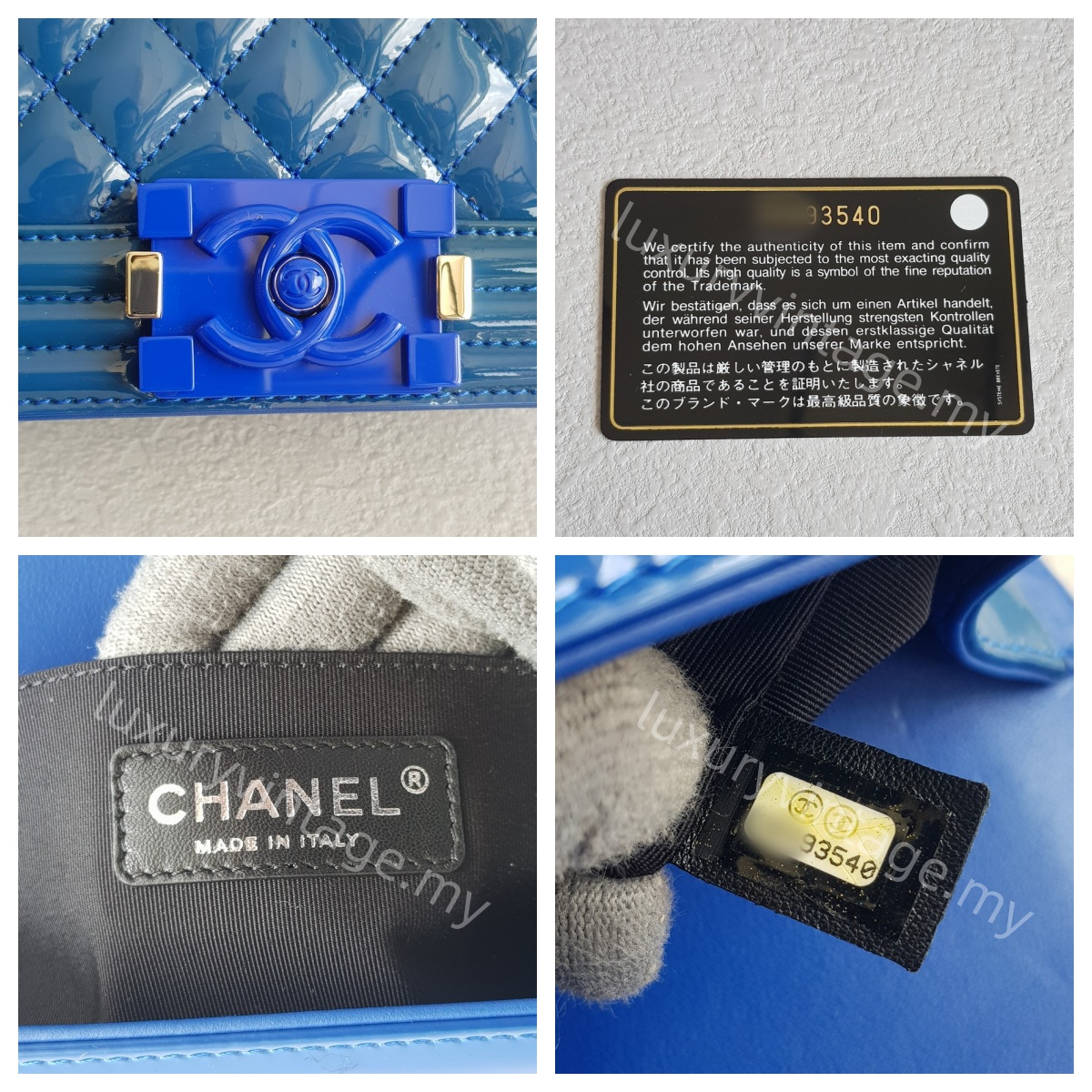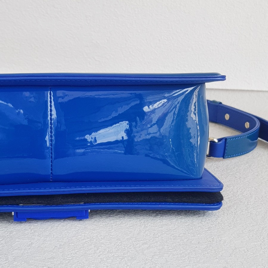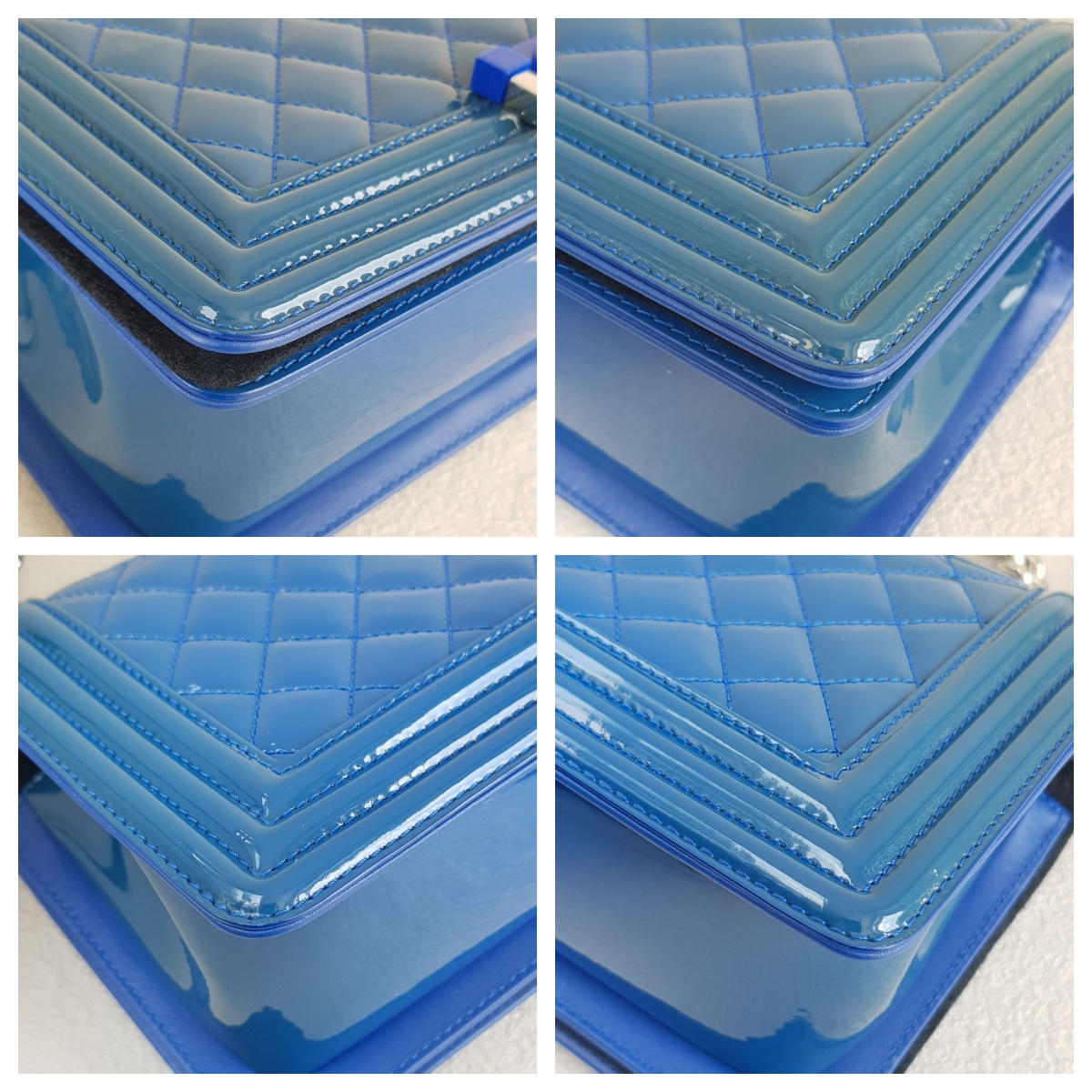 Chanel Boy Medium 25cm Blue Patent Leather with Silver Hardware #RTSK-2
