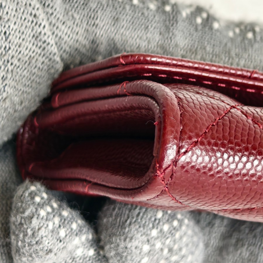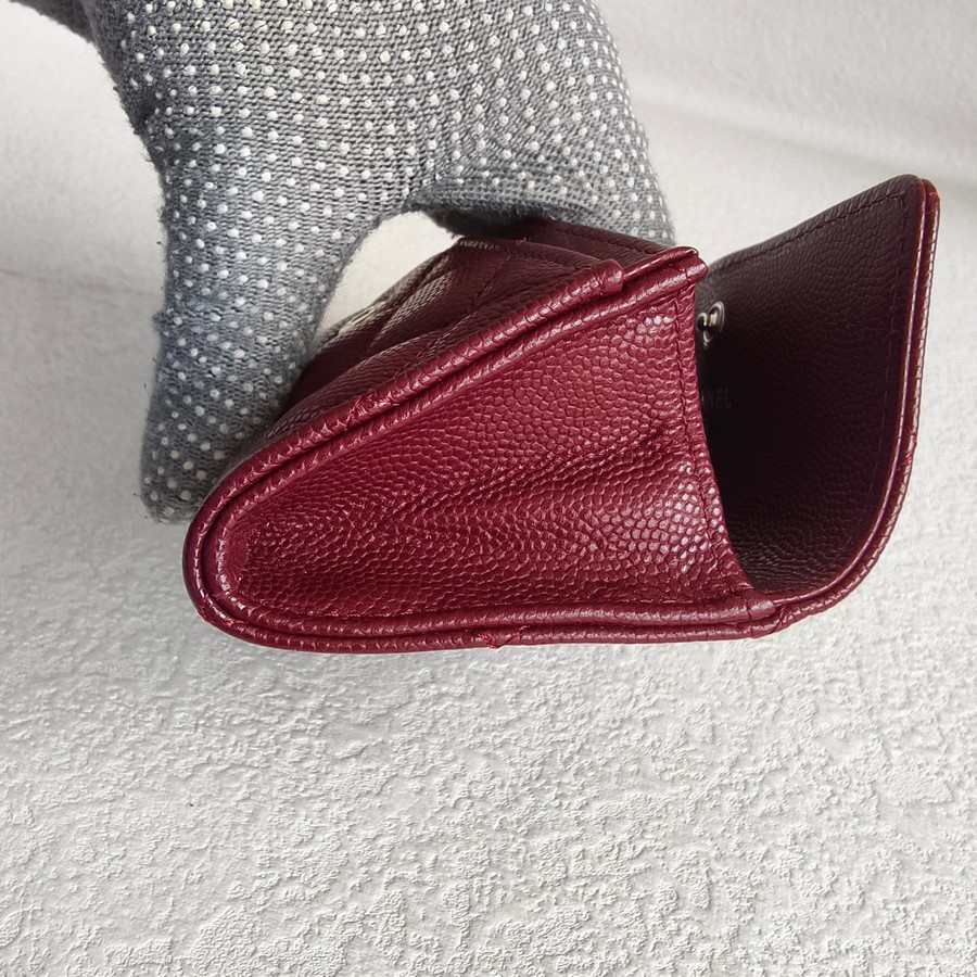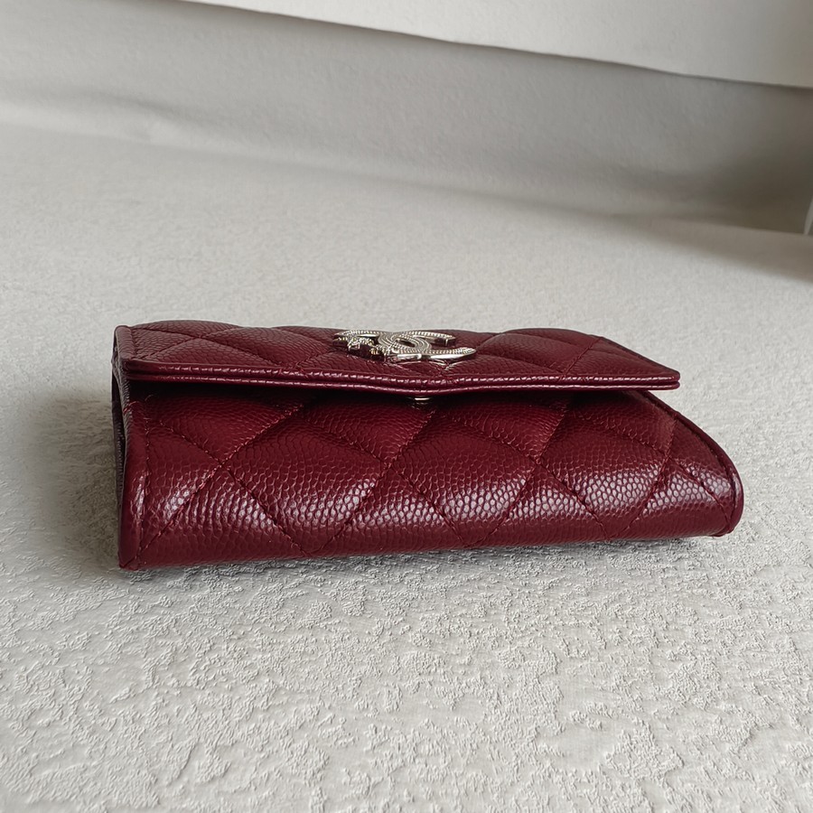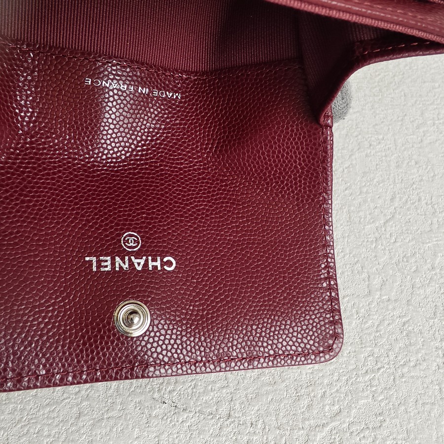 Chanel Card Holder Maroon Grained Calfskin with Silver Hardware #ROTE-1