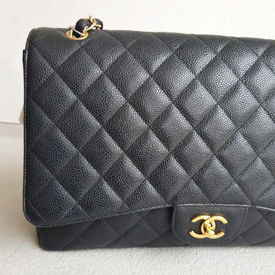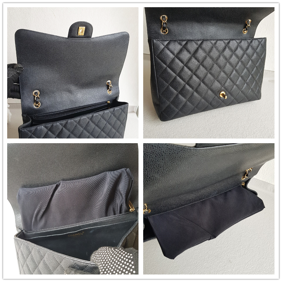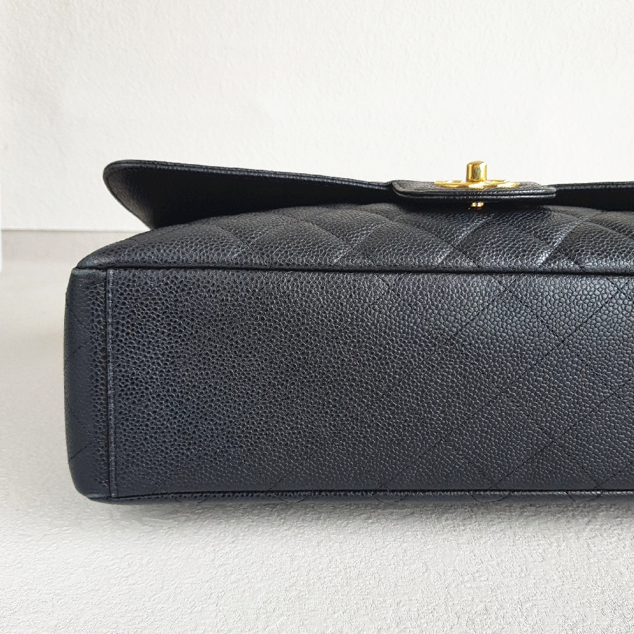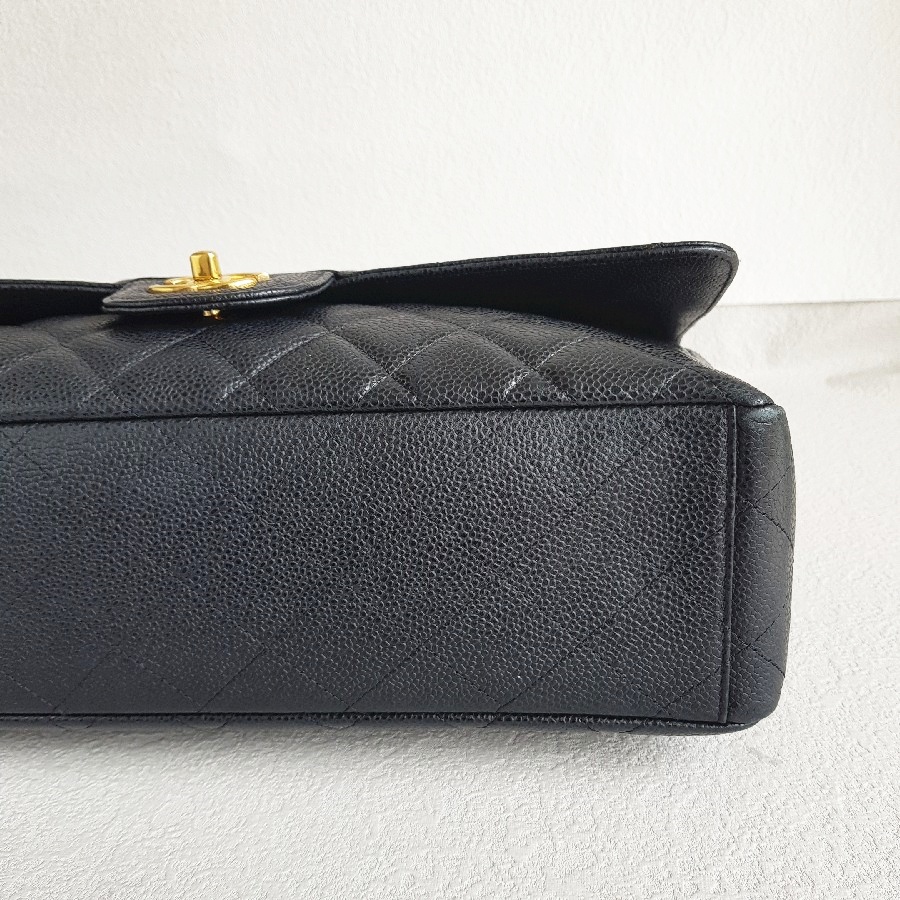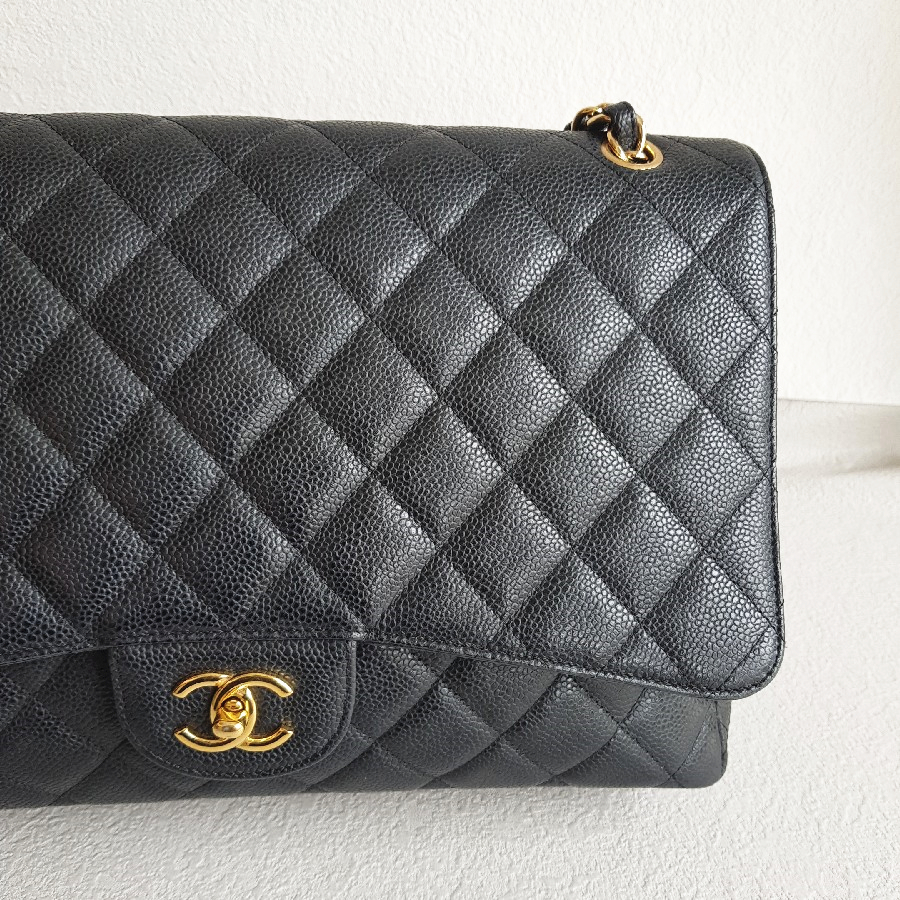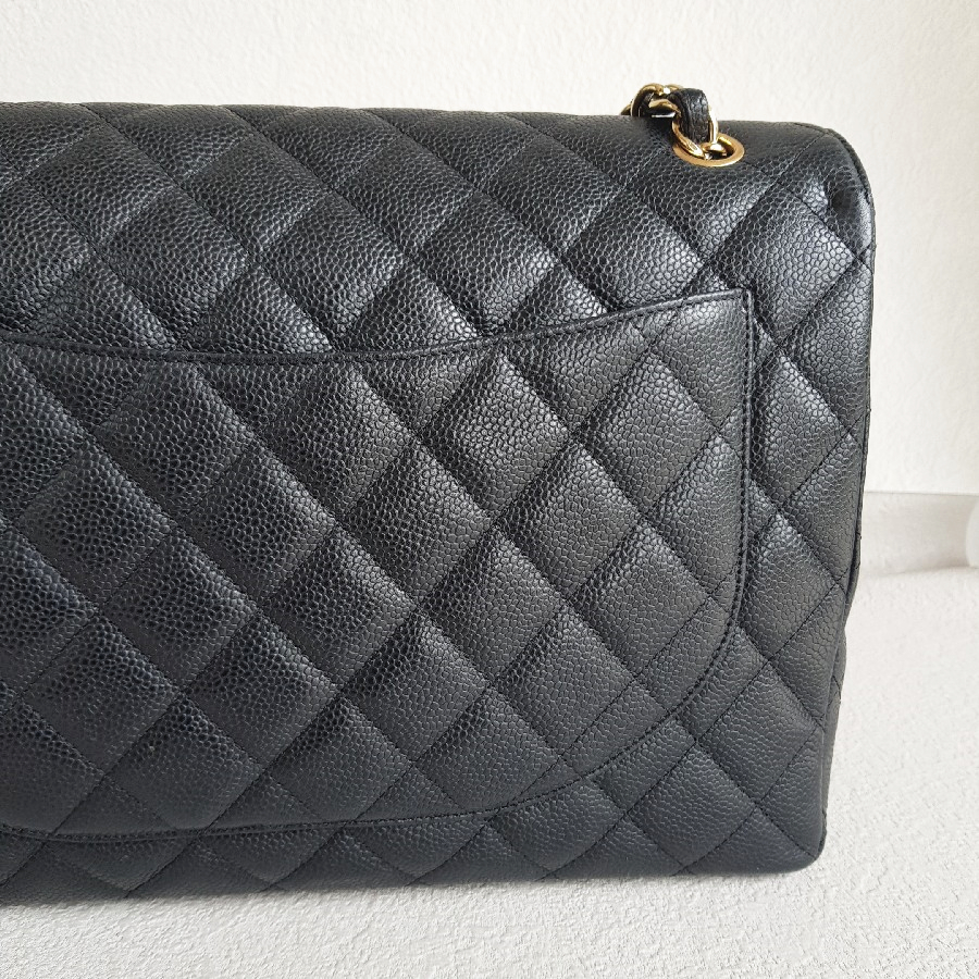 Chanel Classic Maxi Jumbo Double Flap Bag Black Grained Calfskin with Gold Hardware #RKUC-1