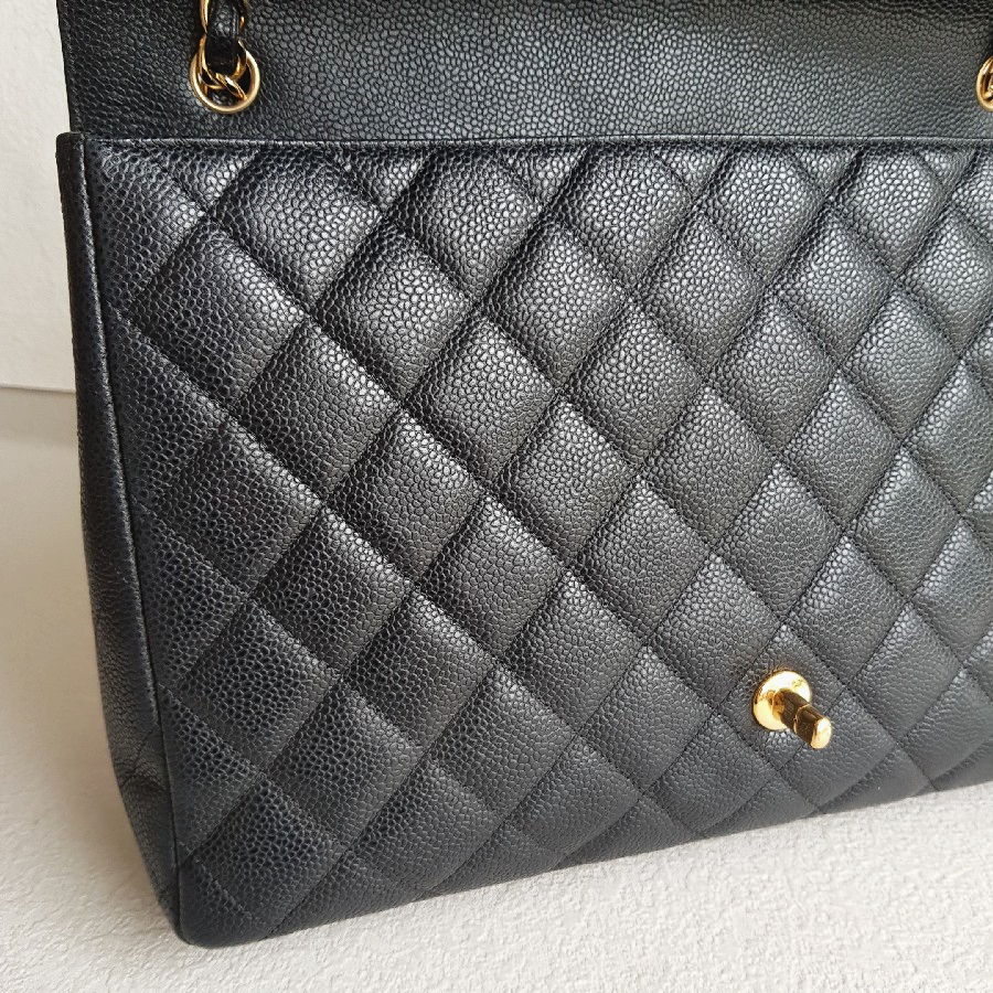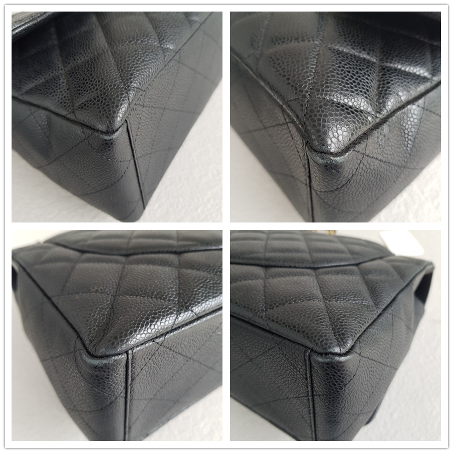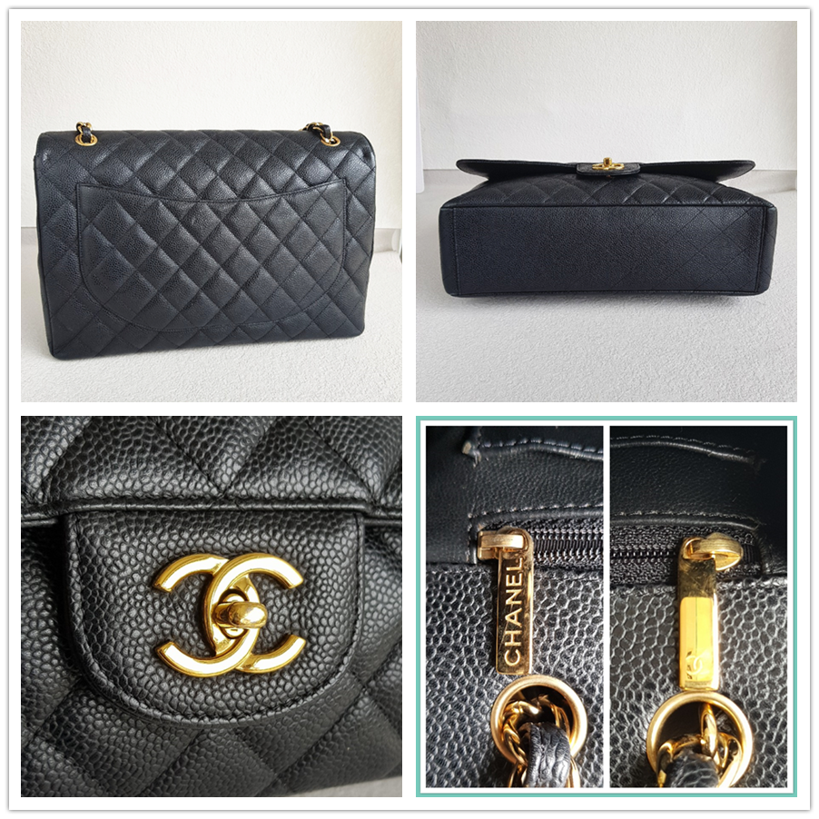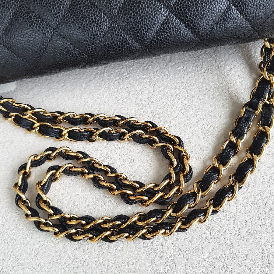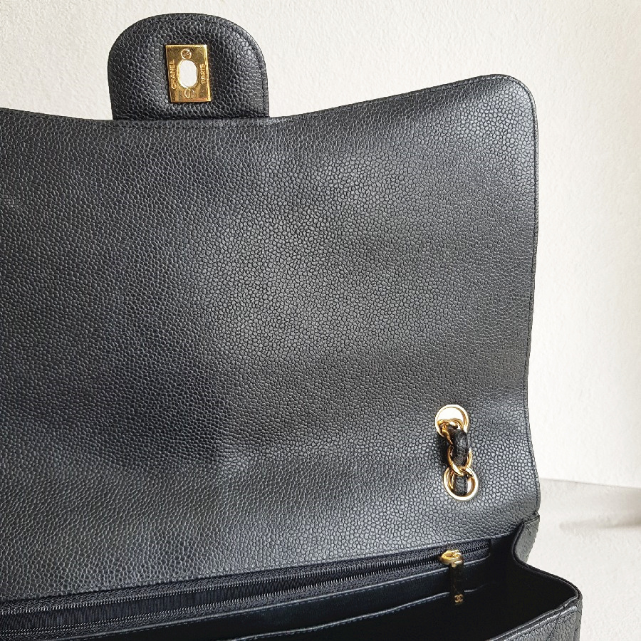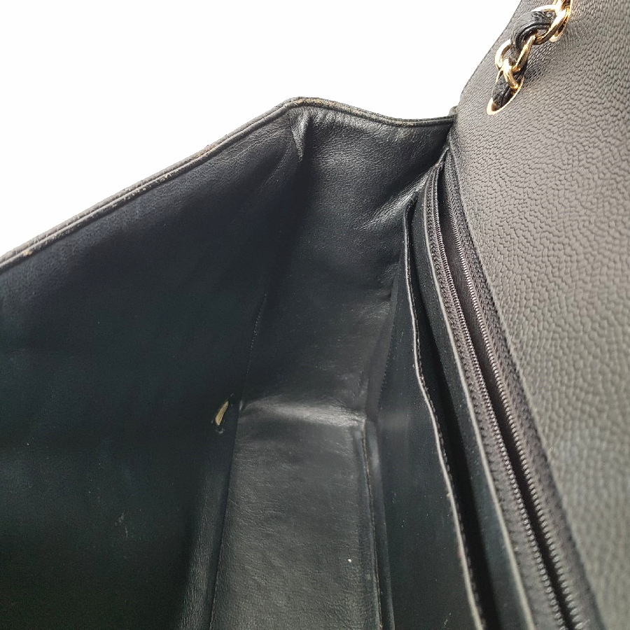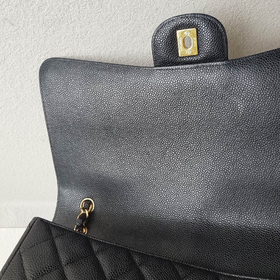 Chanel Classic Maxi Jumbo Double Flap Bag Black Grained Calfskin with Gold Hardware #RKUC-1