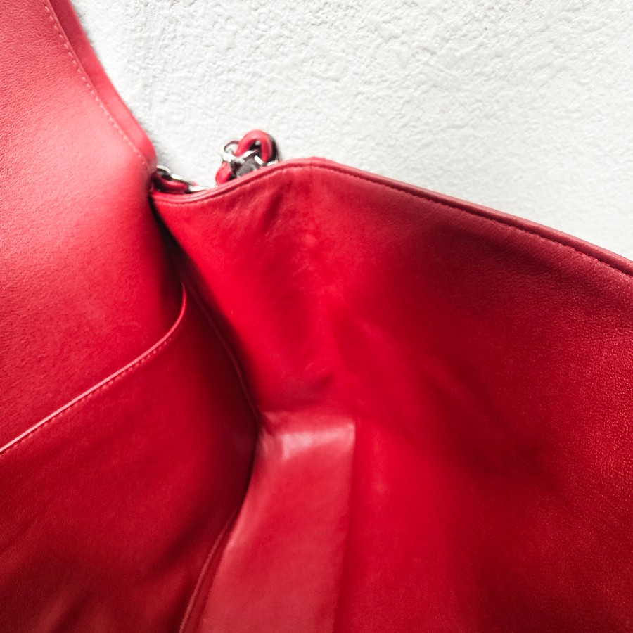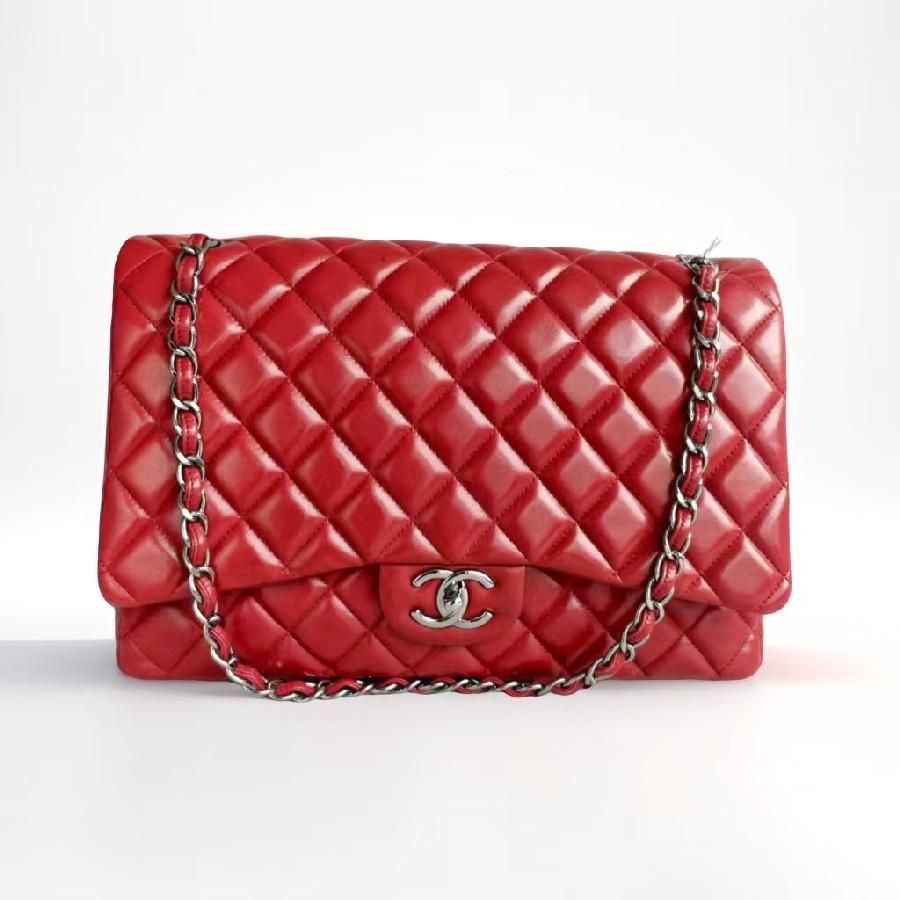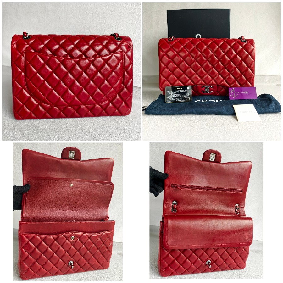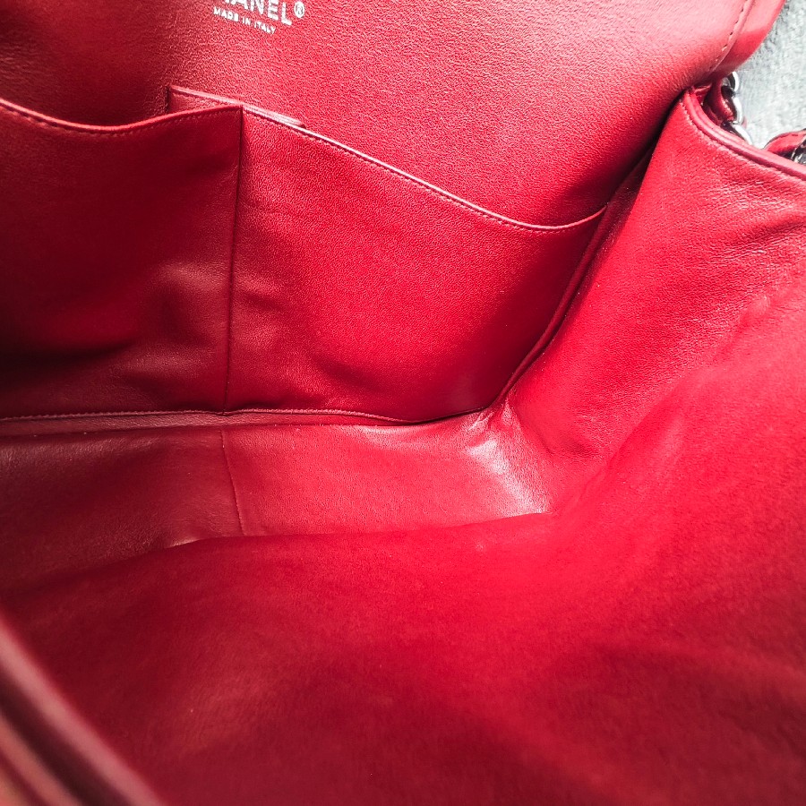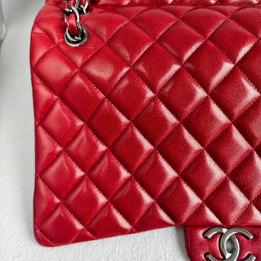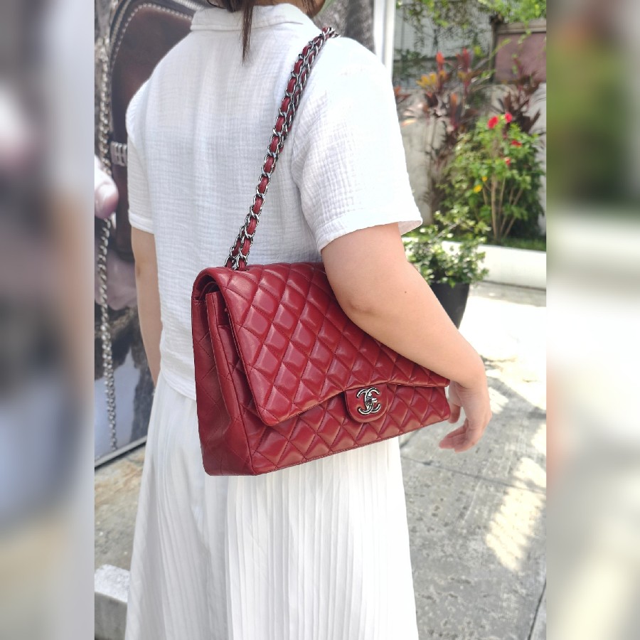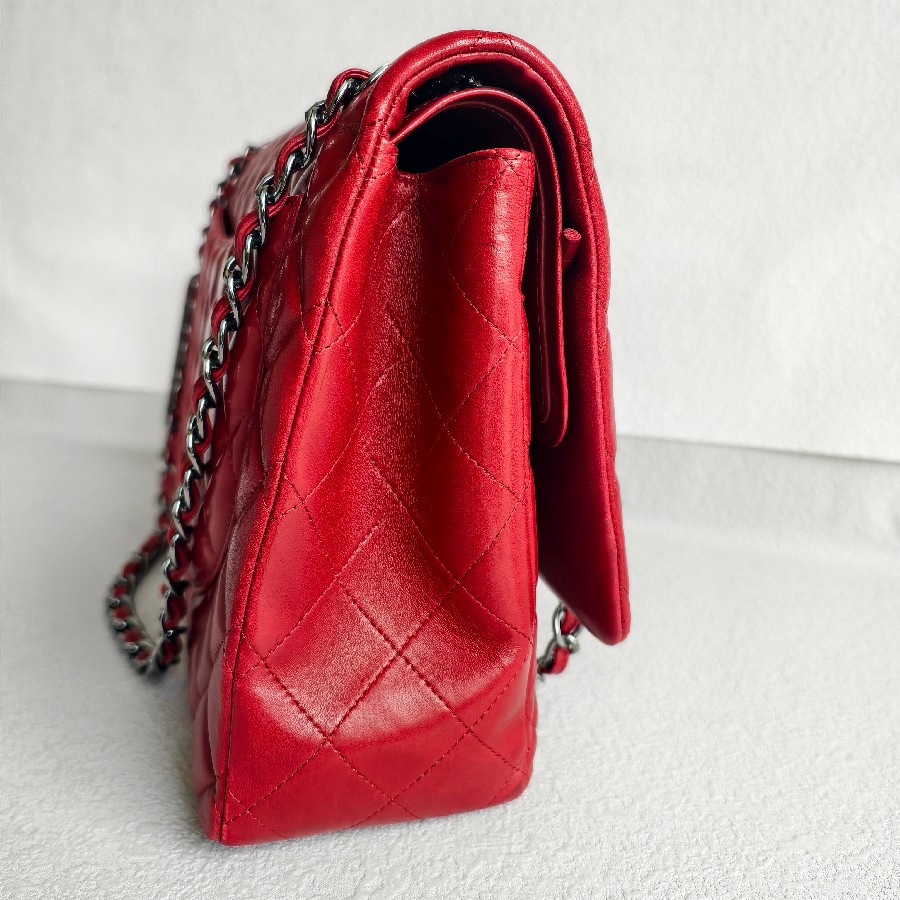 Chanel Classic Maxi Jumbo Double Flap Bag Maroon Lambskin with Silver Hardware #RYUE-1