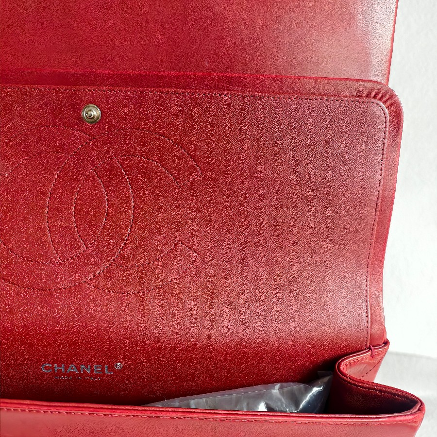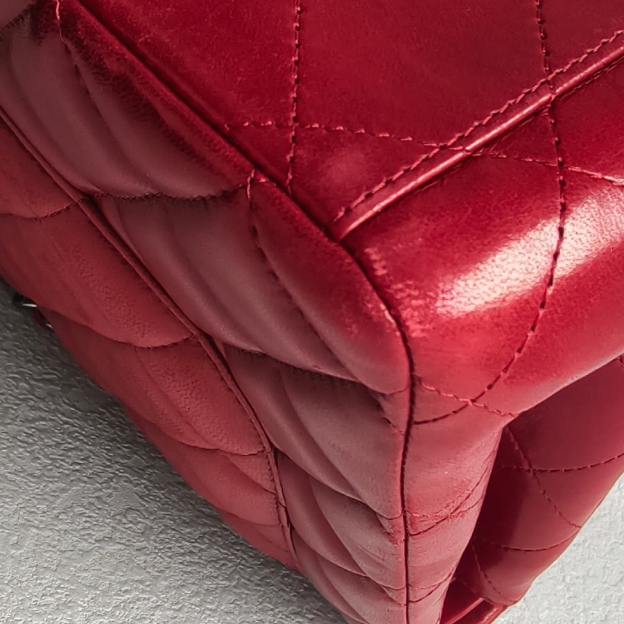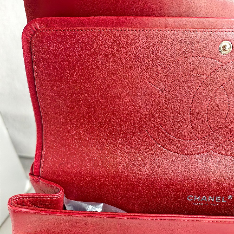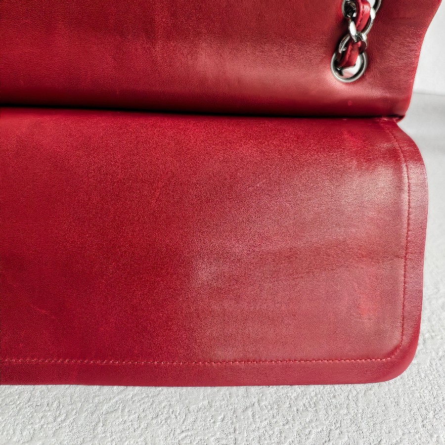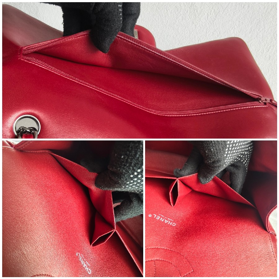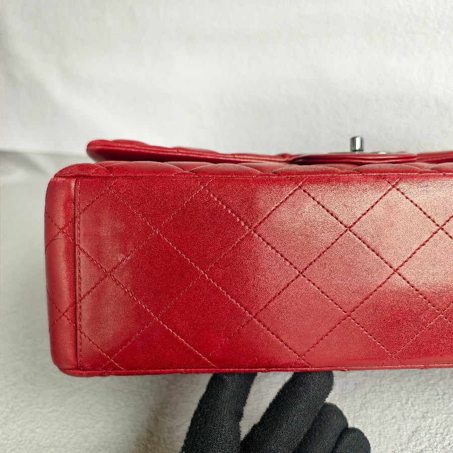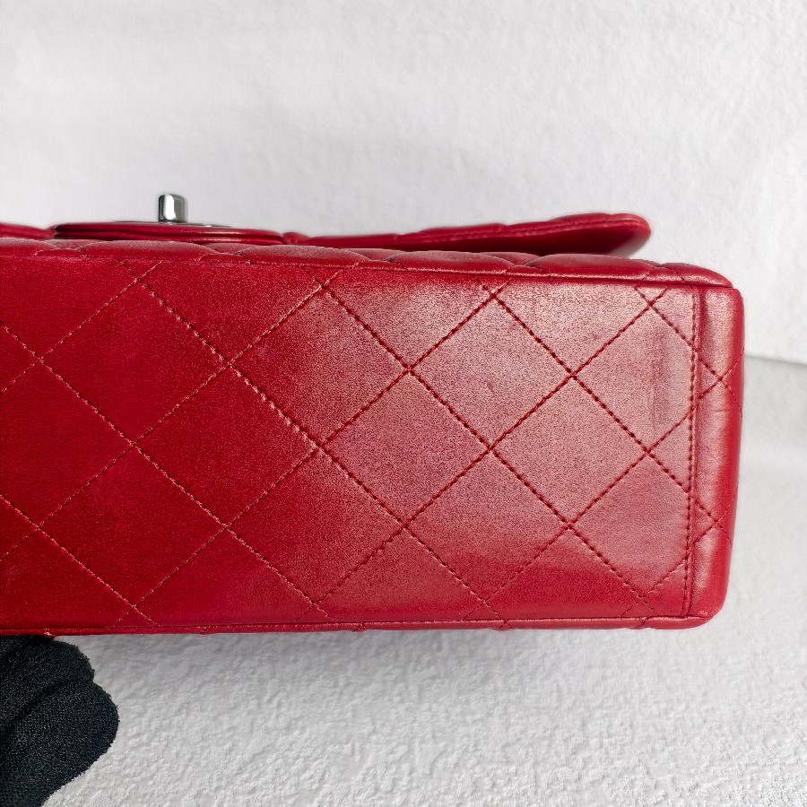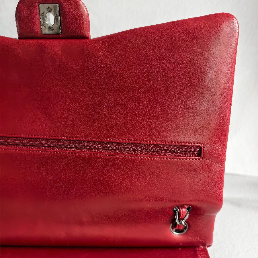 Chanel Classic Maxi Jumbo Double Flap Bag Maroon Lambskin with Silver Hardware #RYUE-1