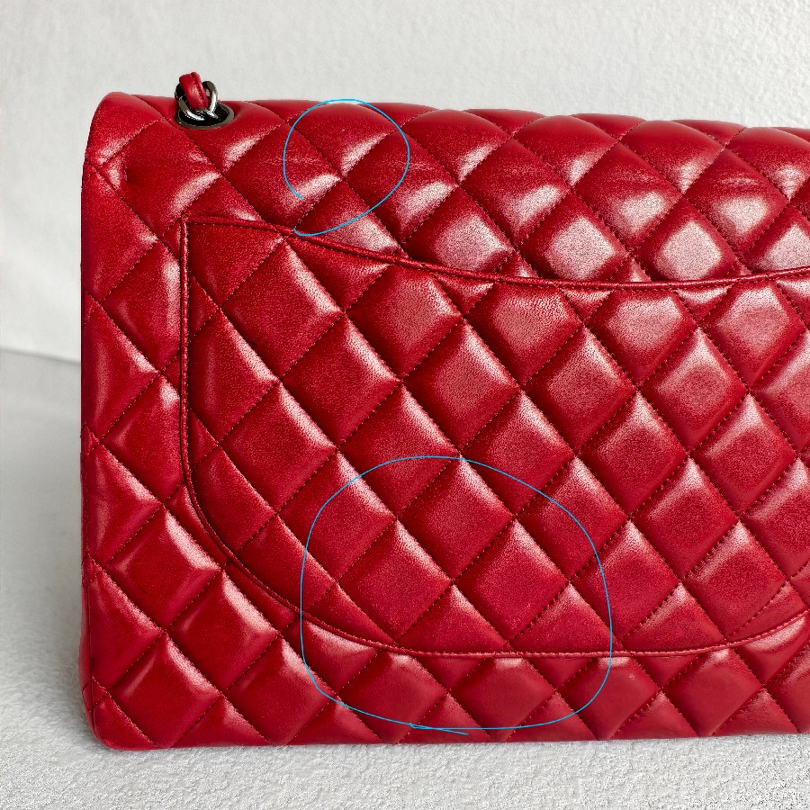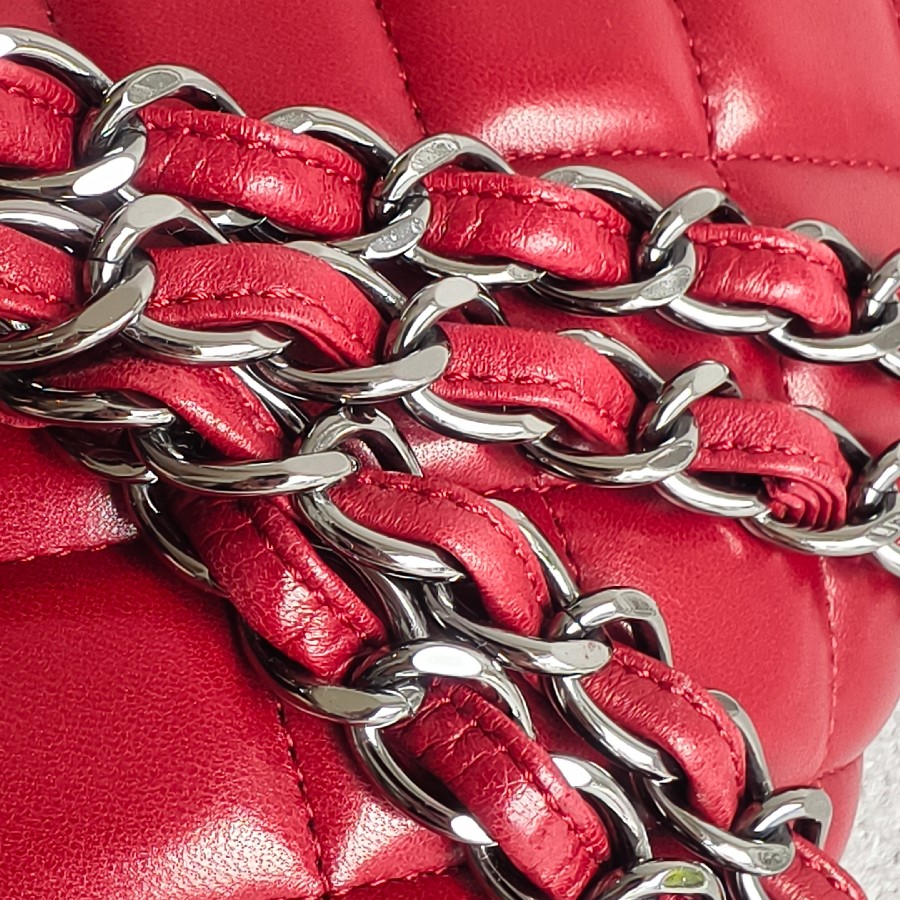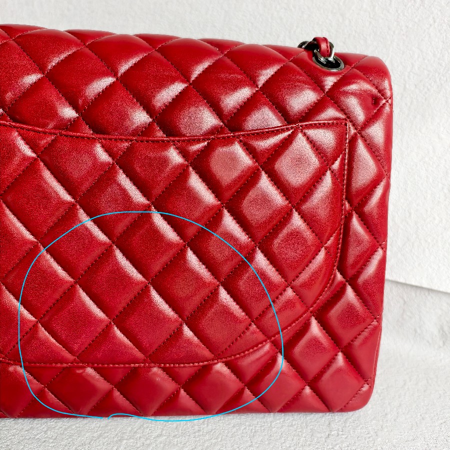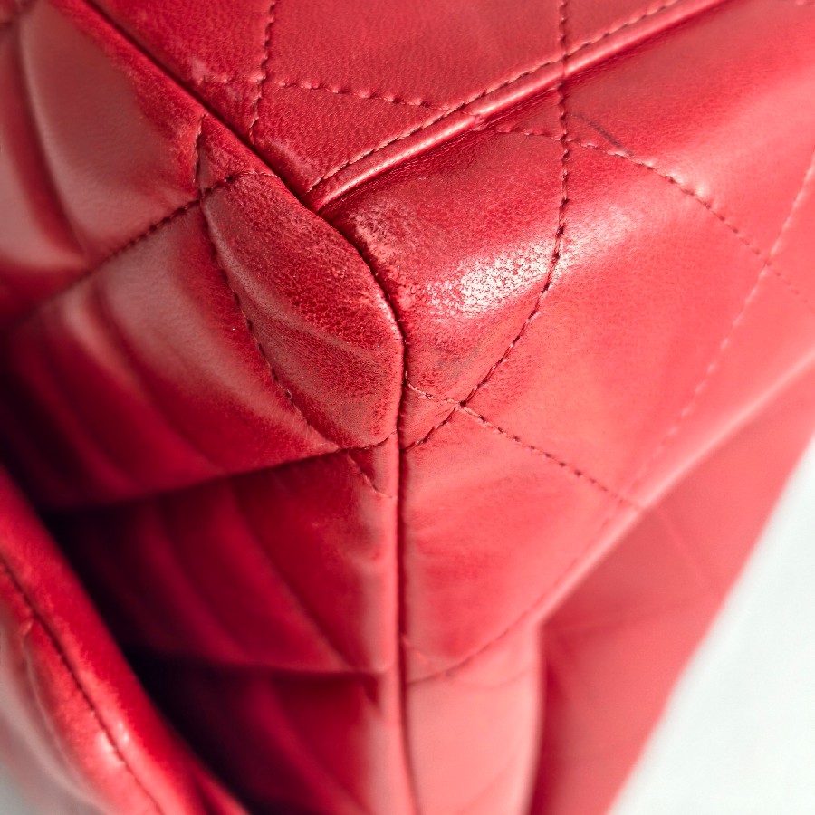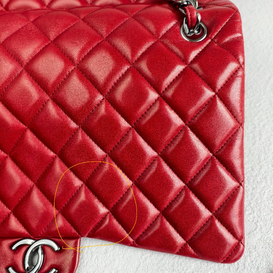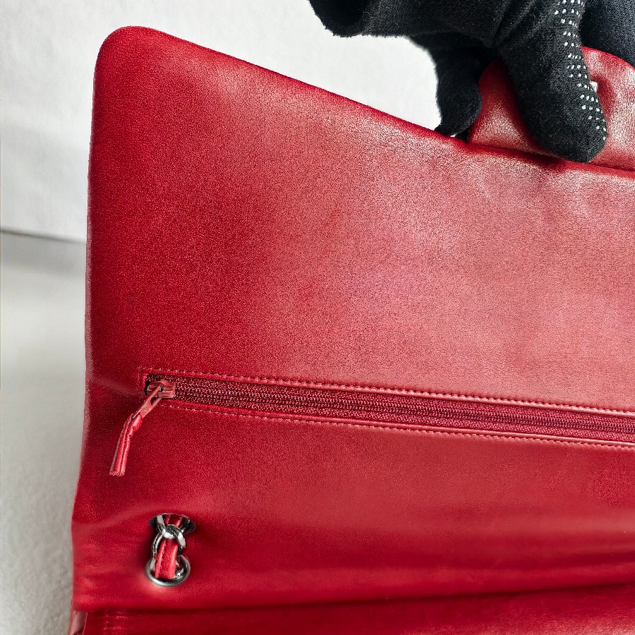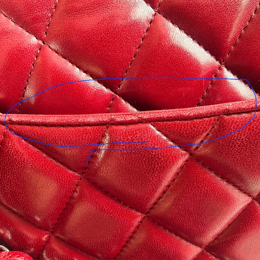 Chanel Classic Maxi Jumbo Double Flap Bag Maroon Lambskin with Silver Hardware #RYUE-1