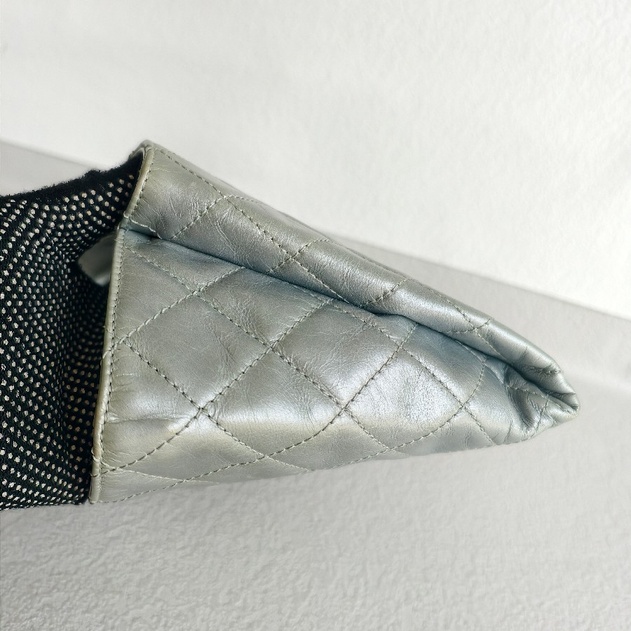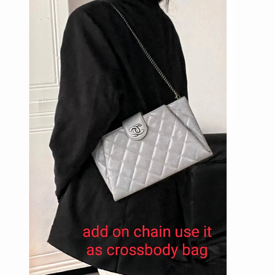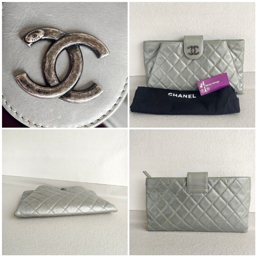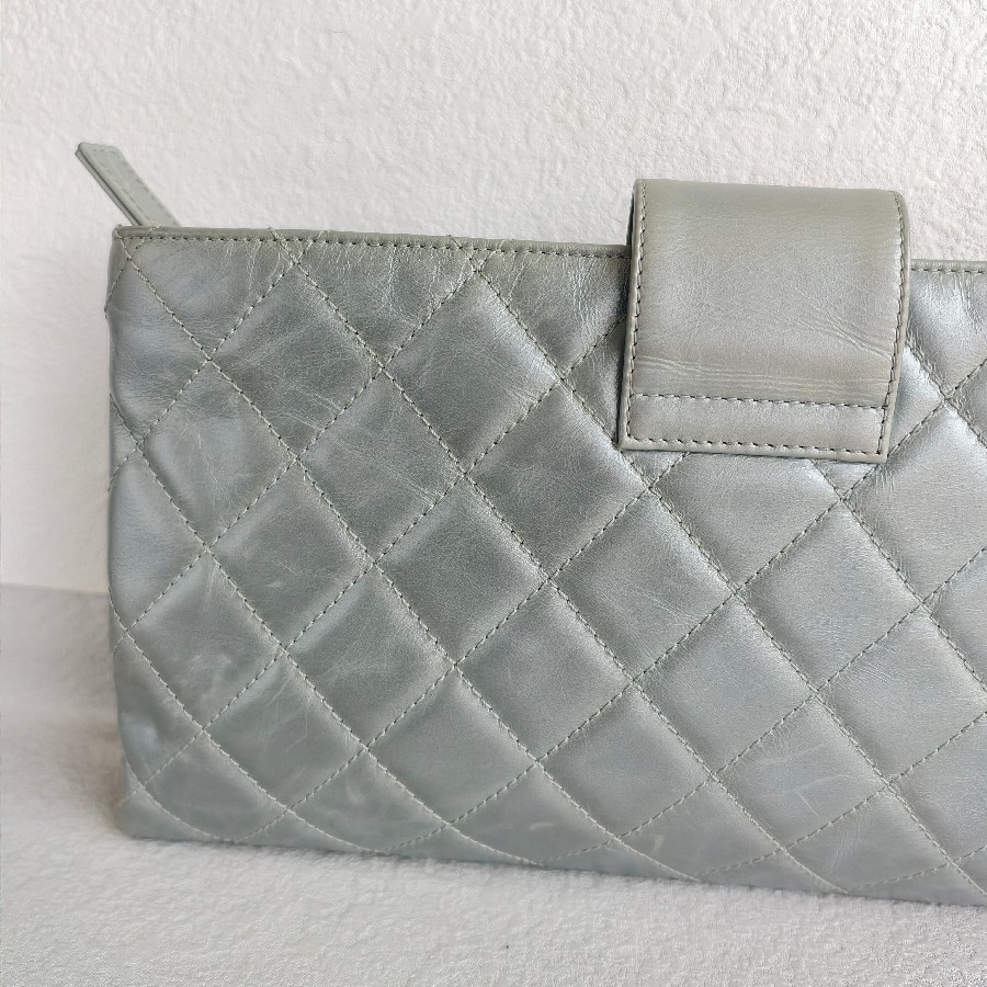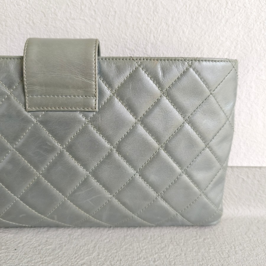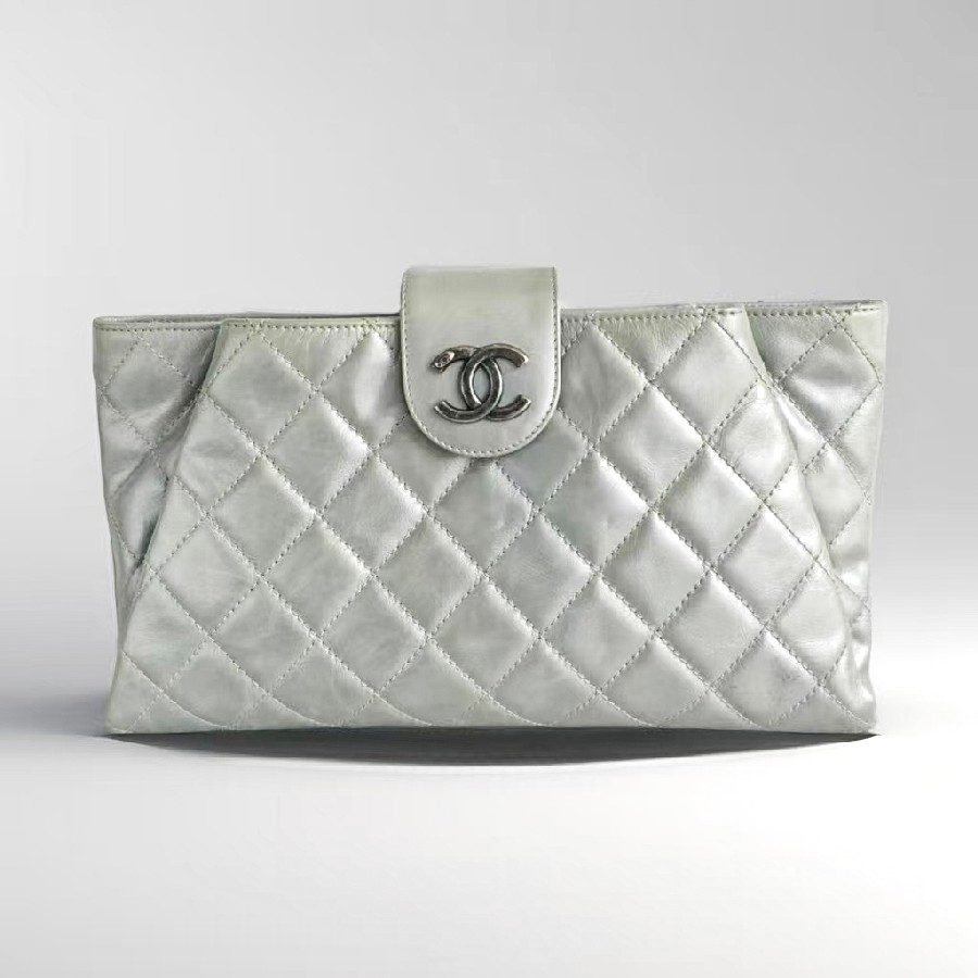 Chanel Clutch Silver Aged Calfskin with Silver Hardware #RYOS-1