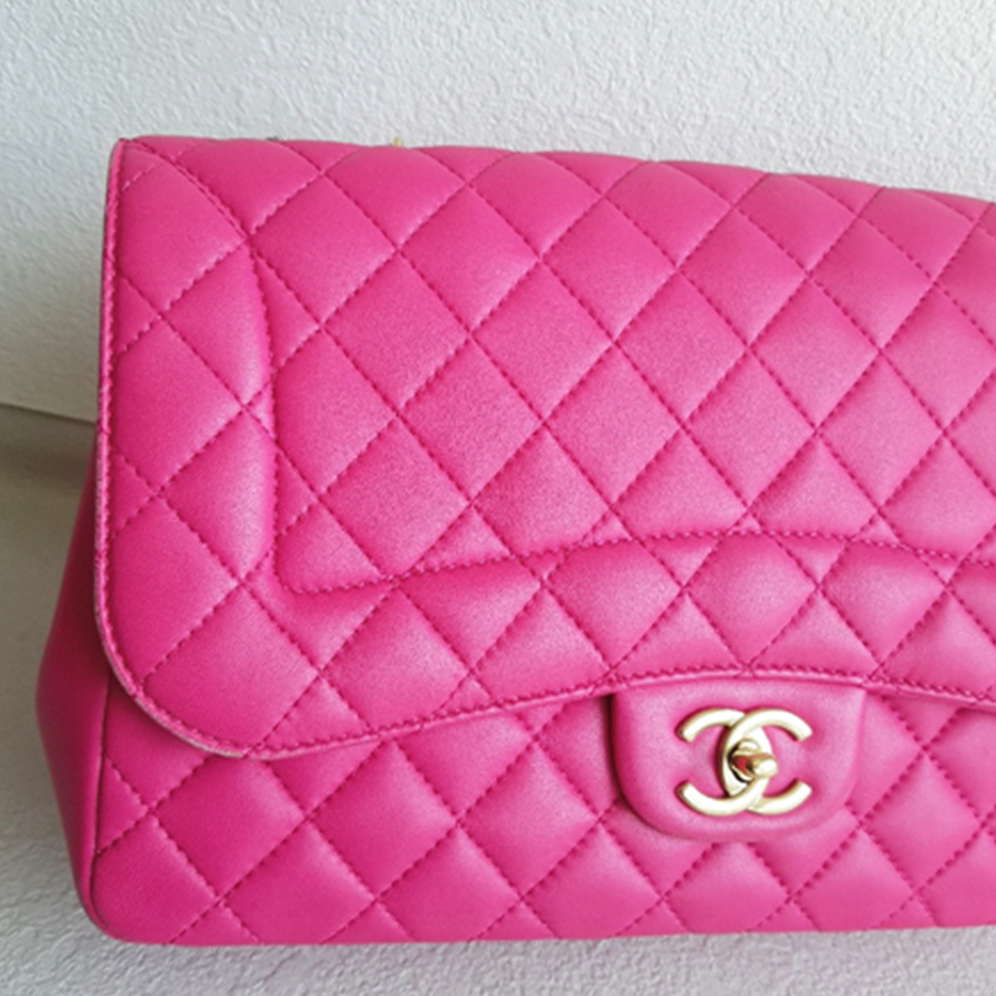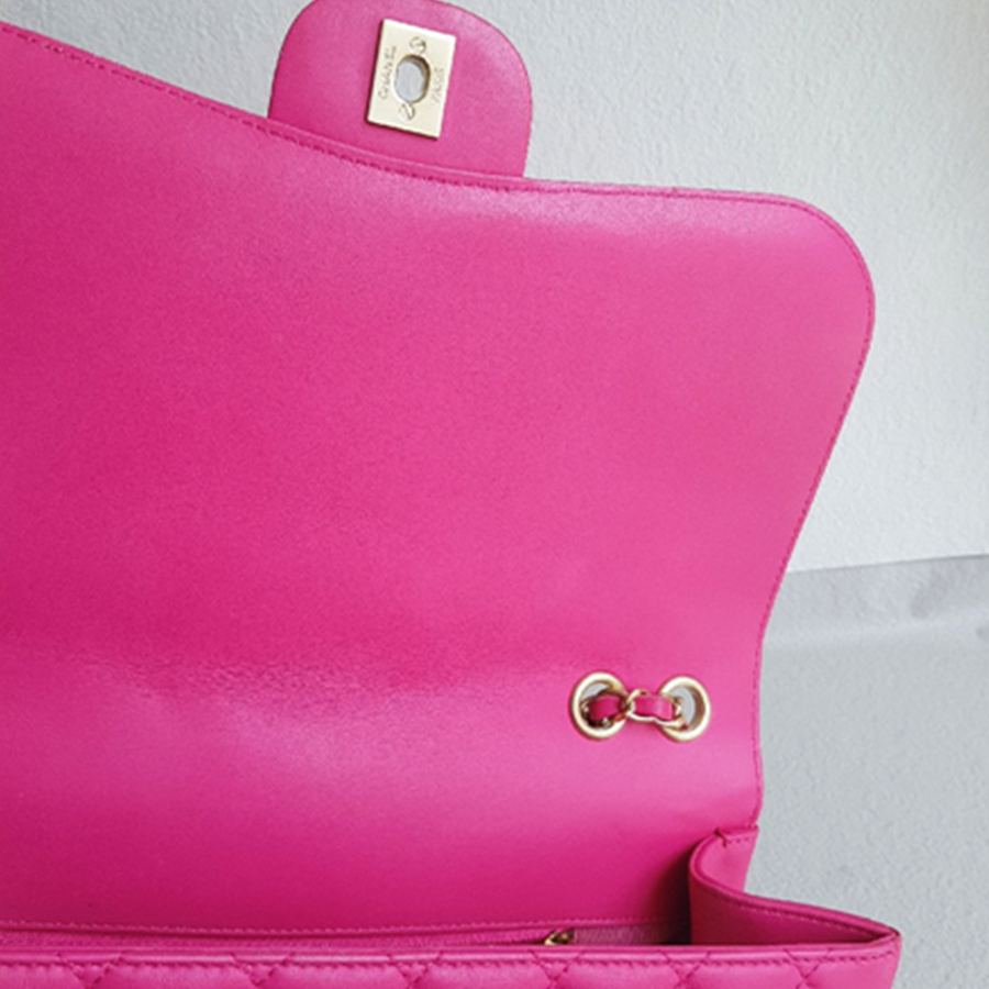 Chanel Flap Bag Pink Lambskin with Gold Hardware #RKKR-8