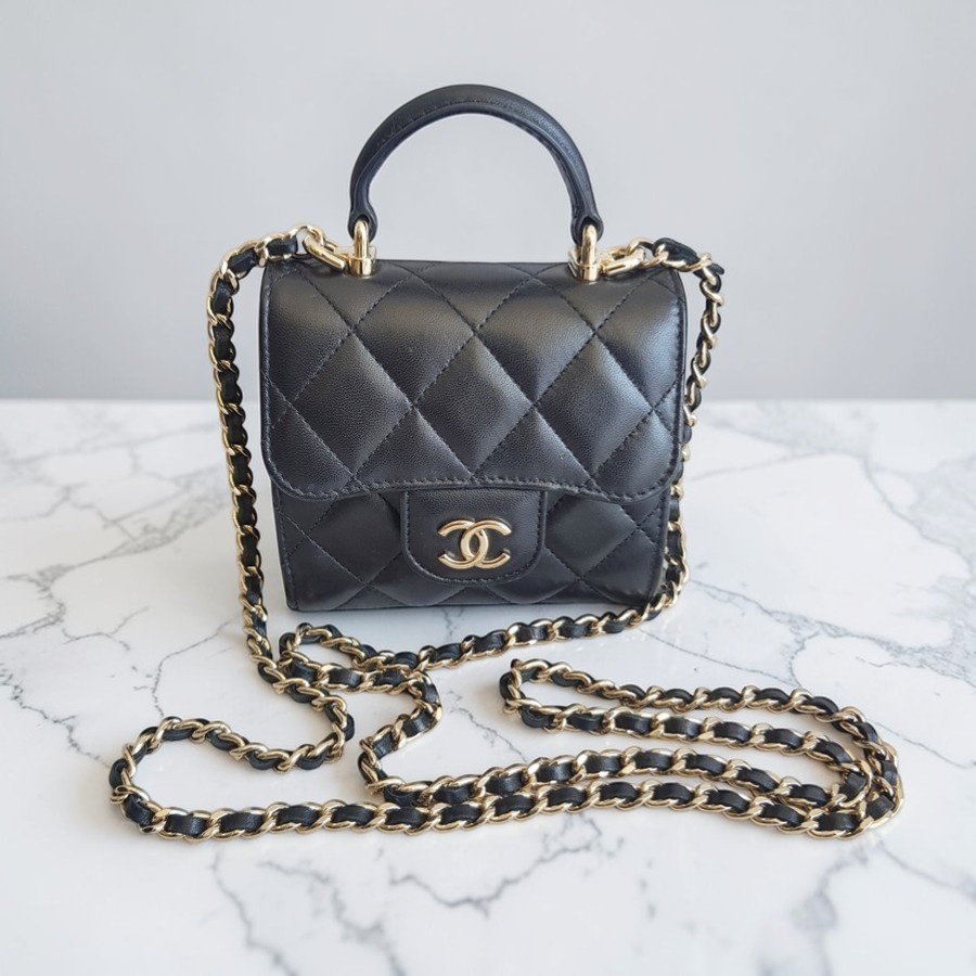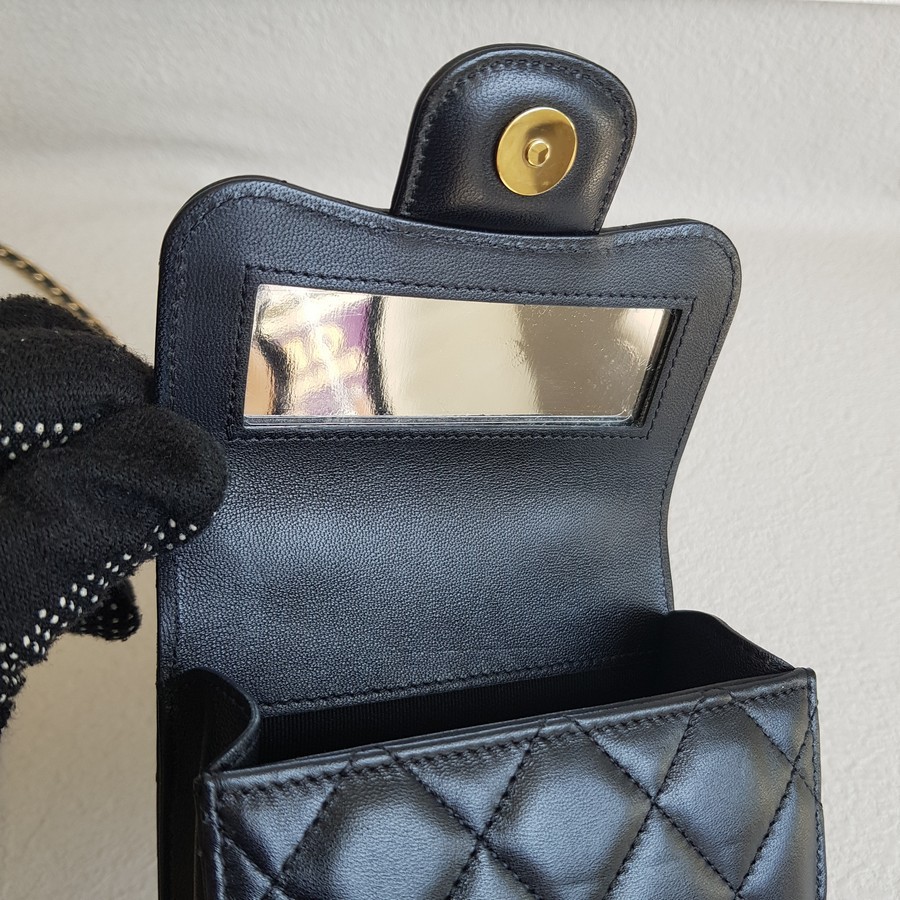 Chanel Micro Vanity Bag Black Lambskin with Light Gold Hardware #RTTE-6