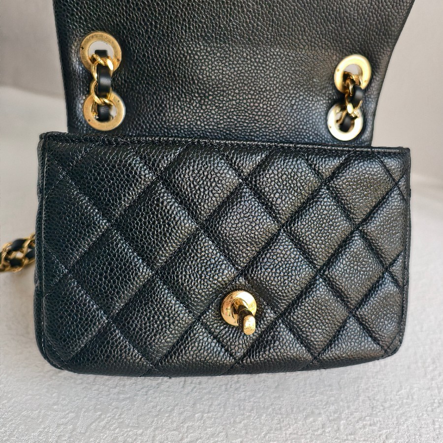 Chanel Mini Flap Black Grained Calfskin with Gold Hardware #RKRY-1