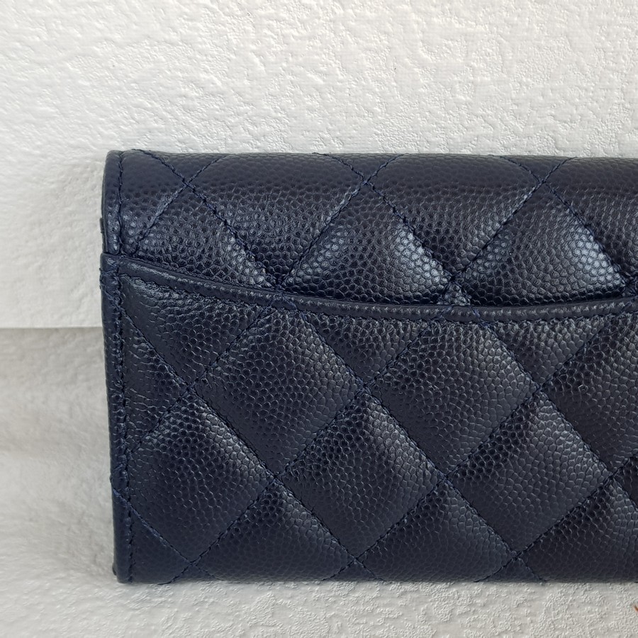 Chanel Pouch/ Card Holder Blue Grained Calfskin with Gold Hardware #RTYC-3