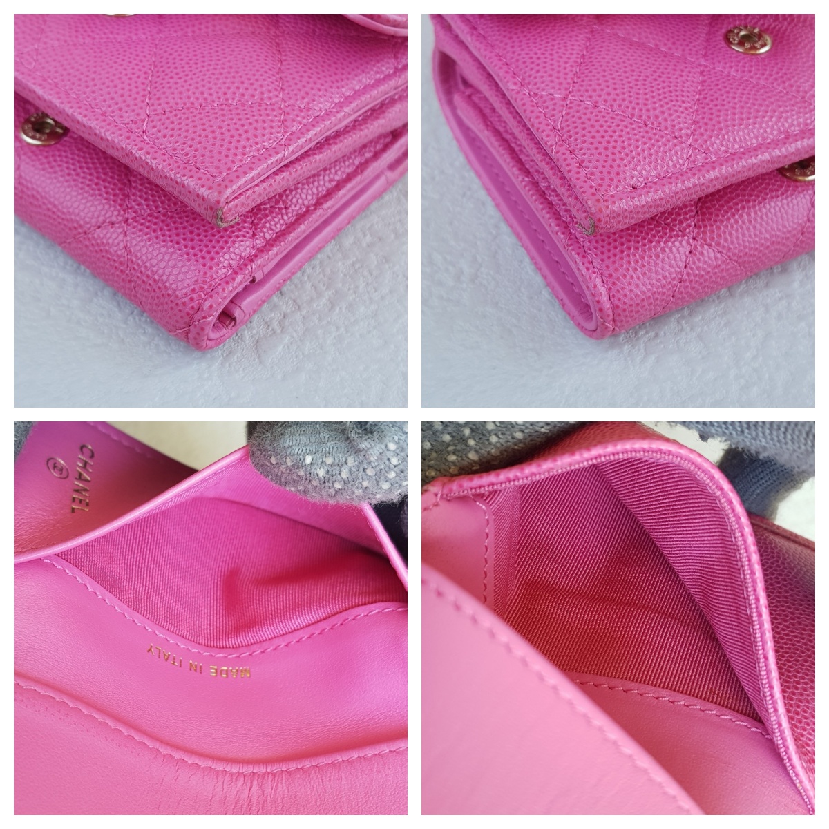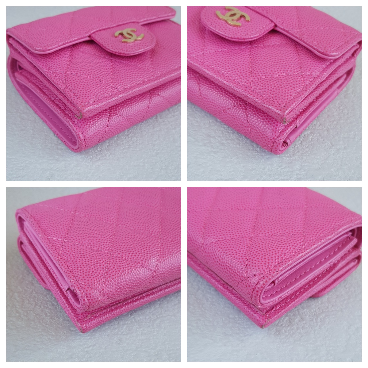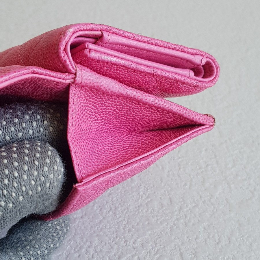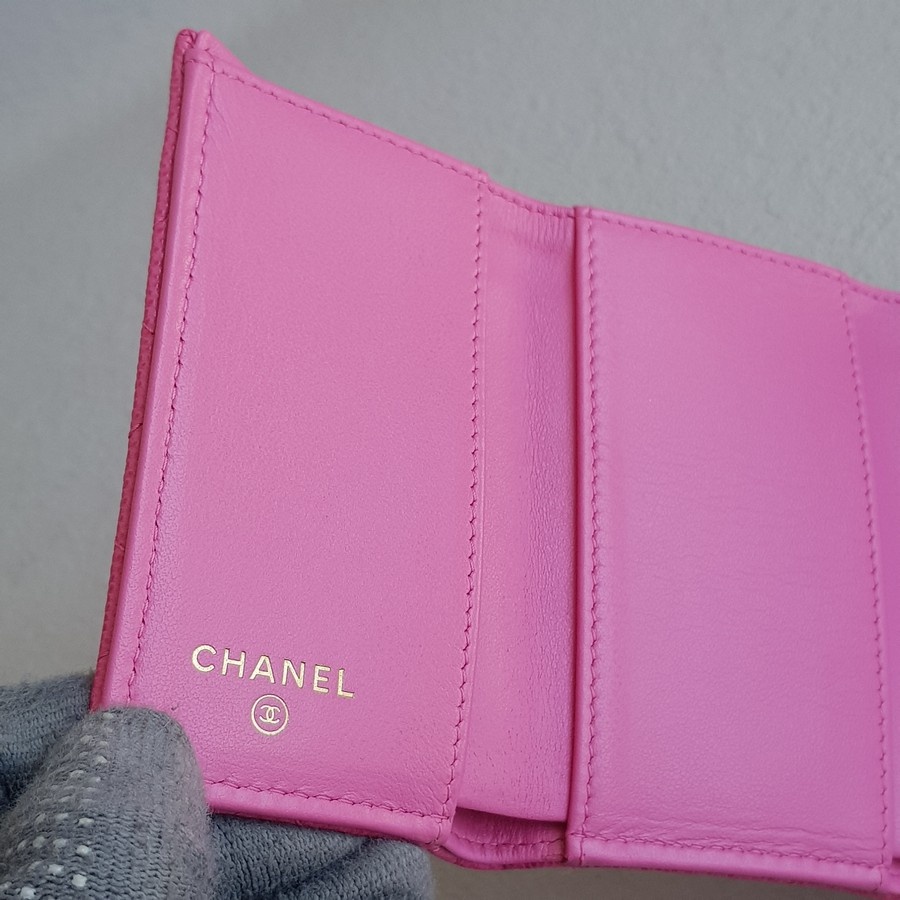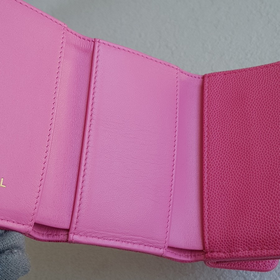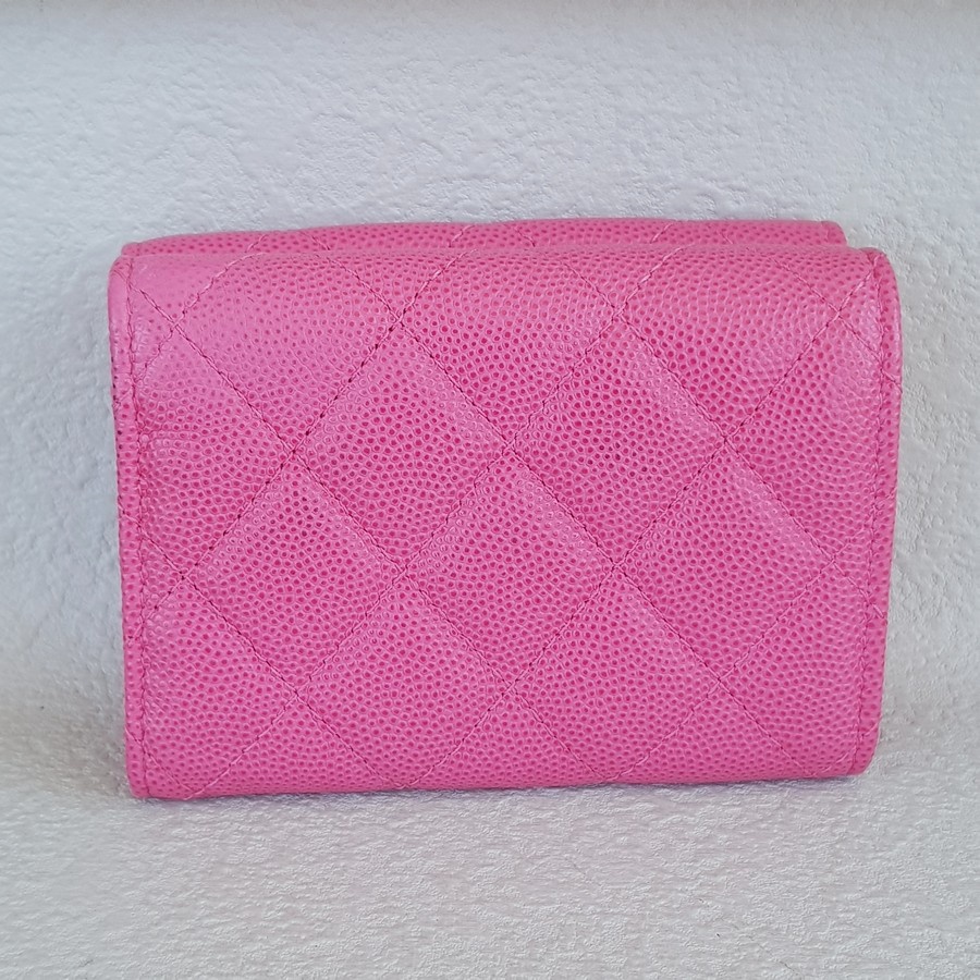 Chanel Tri-fold Wallet Pink Grained Calfskin with Gold Hardware #ROYU-2