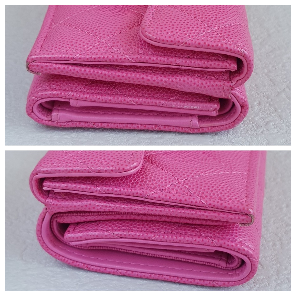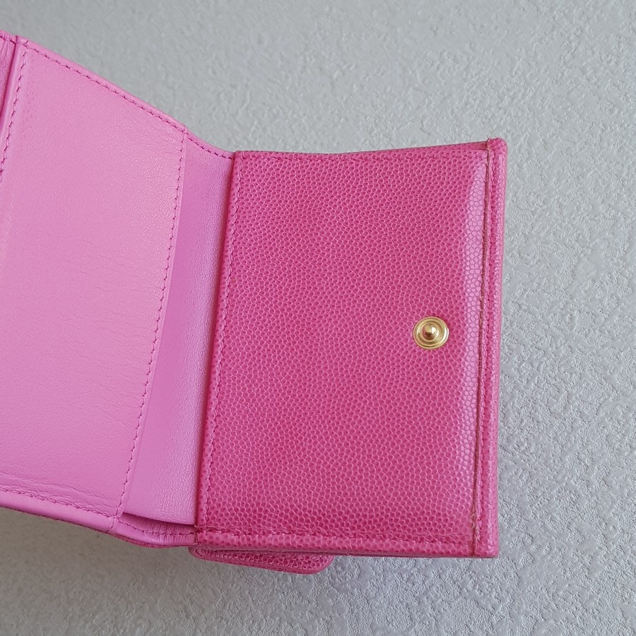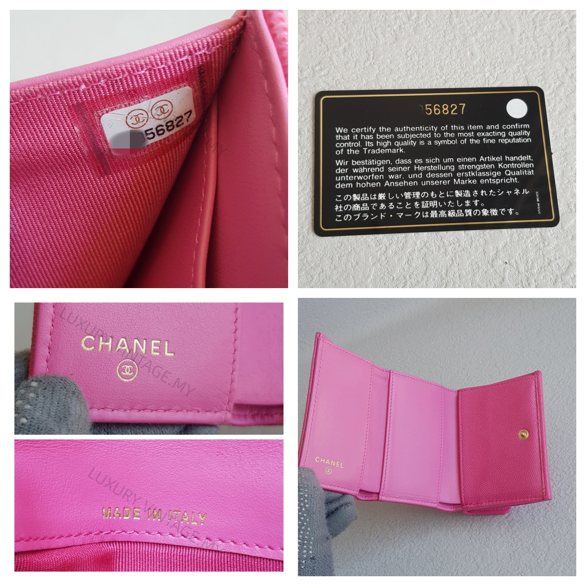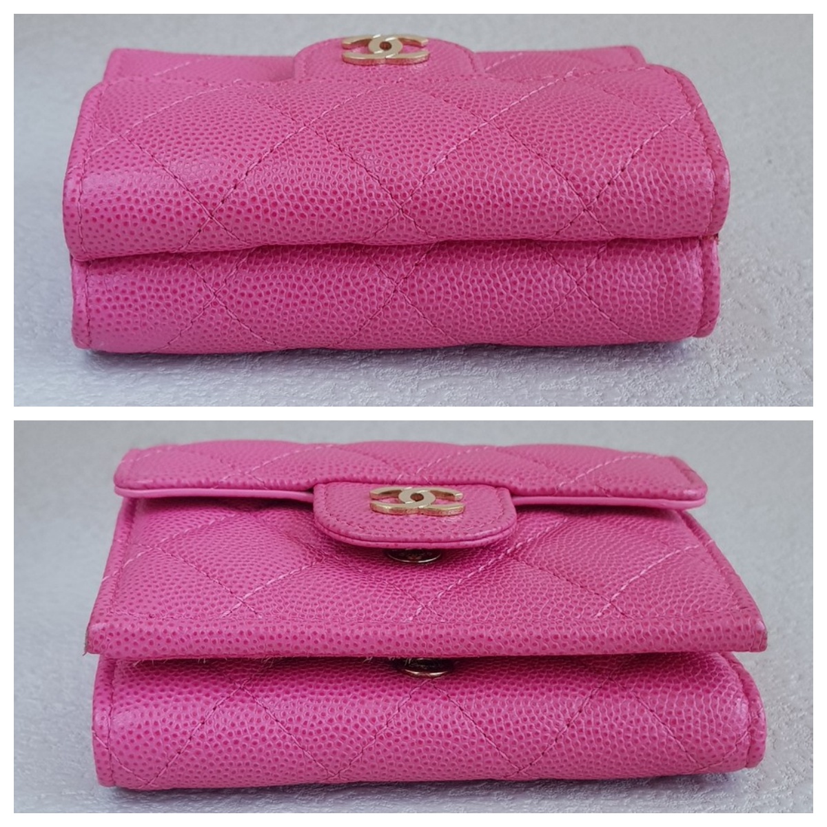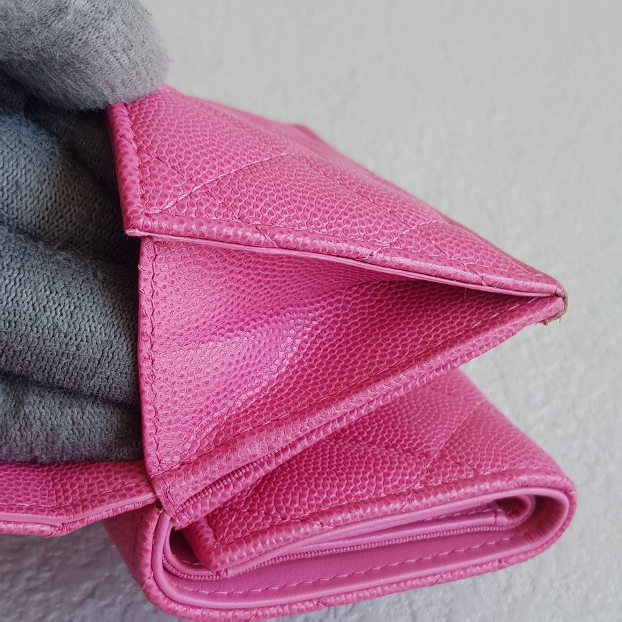 Chanel Tri-fold Wallet Pink Grained Calfskin with Gold Hardware #ROYU-2