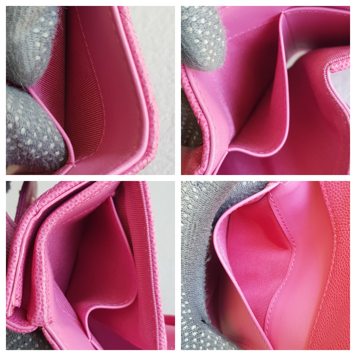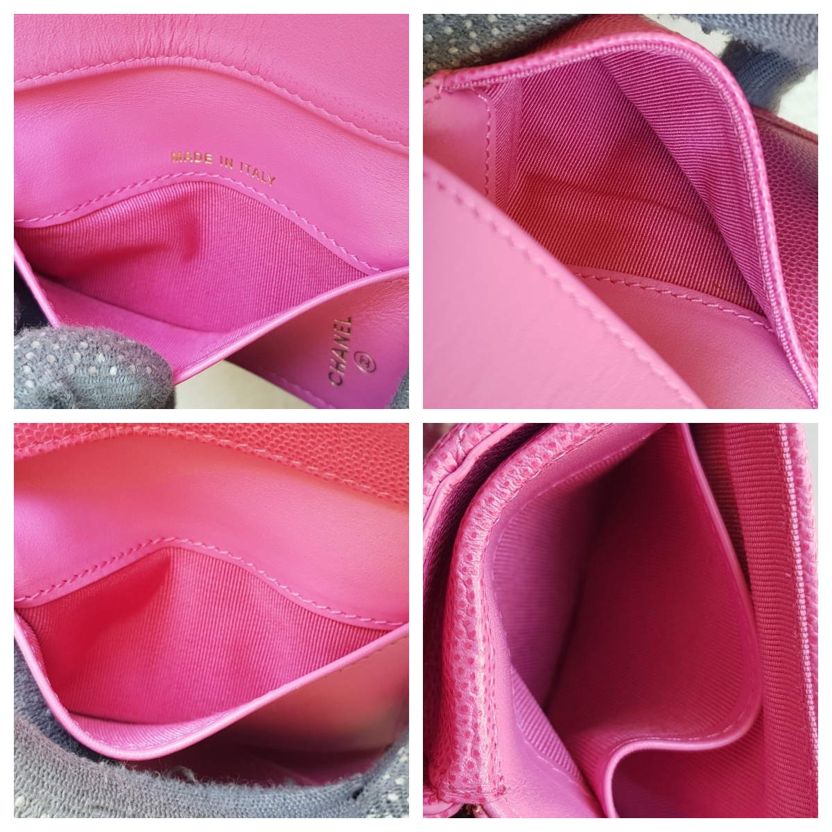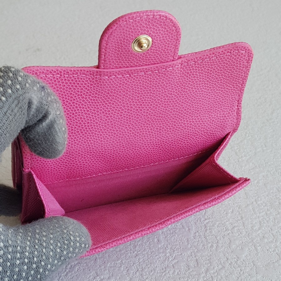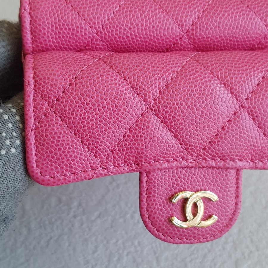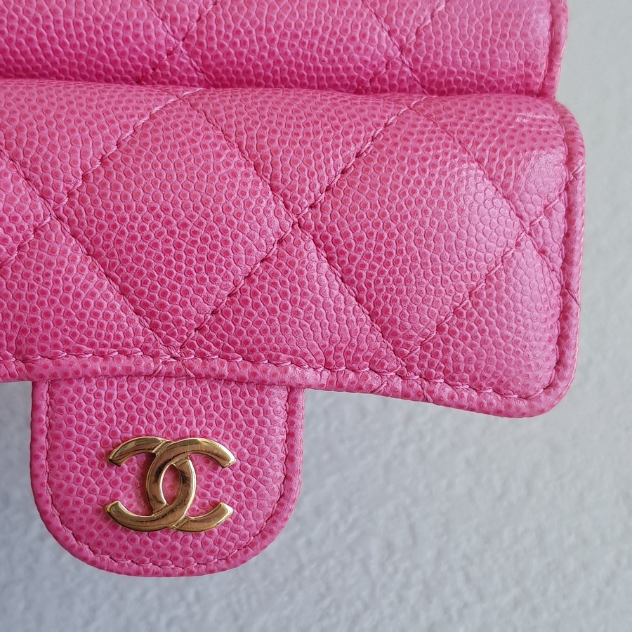 Chanel Tri-fold Wallet Pink Grained Calfskin with Gold Hardware #ROYU-2