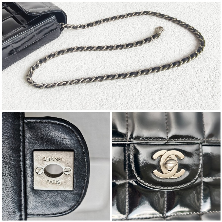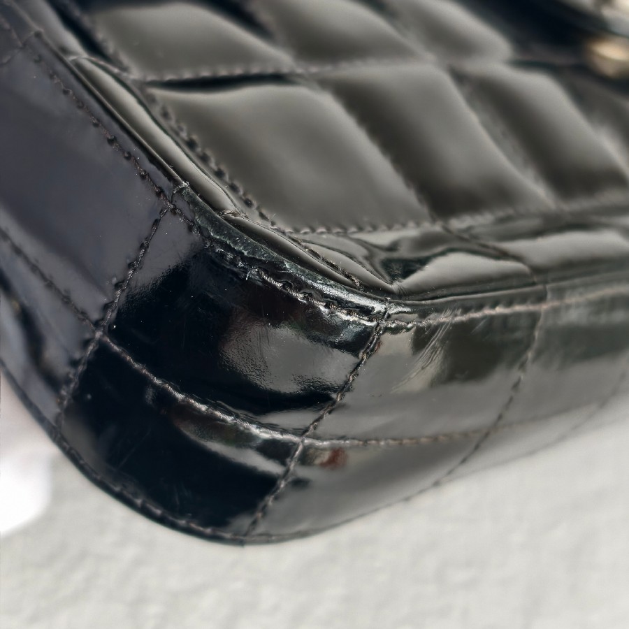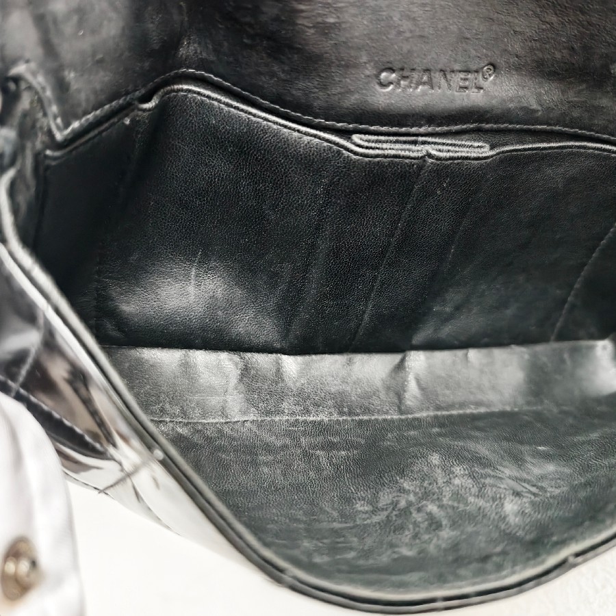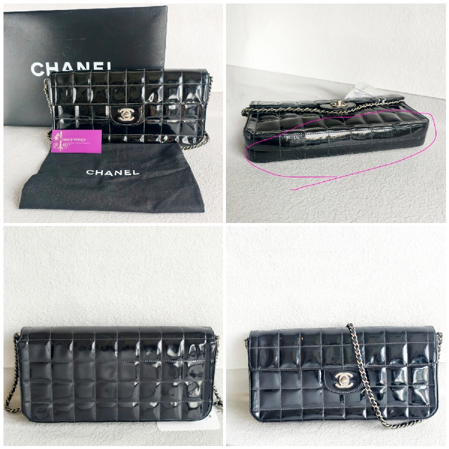 Chanel Vintage Chocolate Bar Flap Bag/Clutch Black Patent Leather with Gold Hardware #RYEU-2