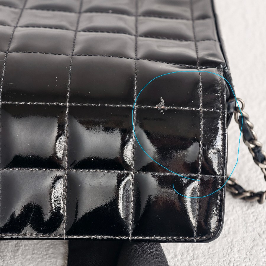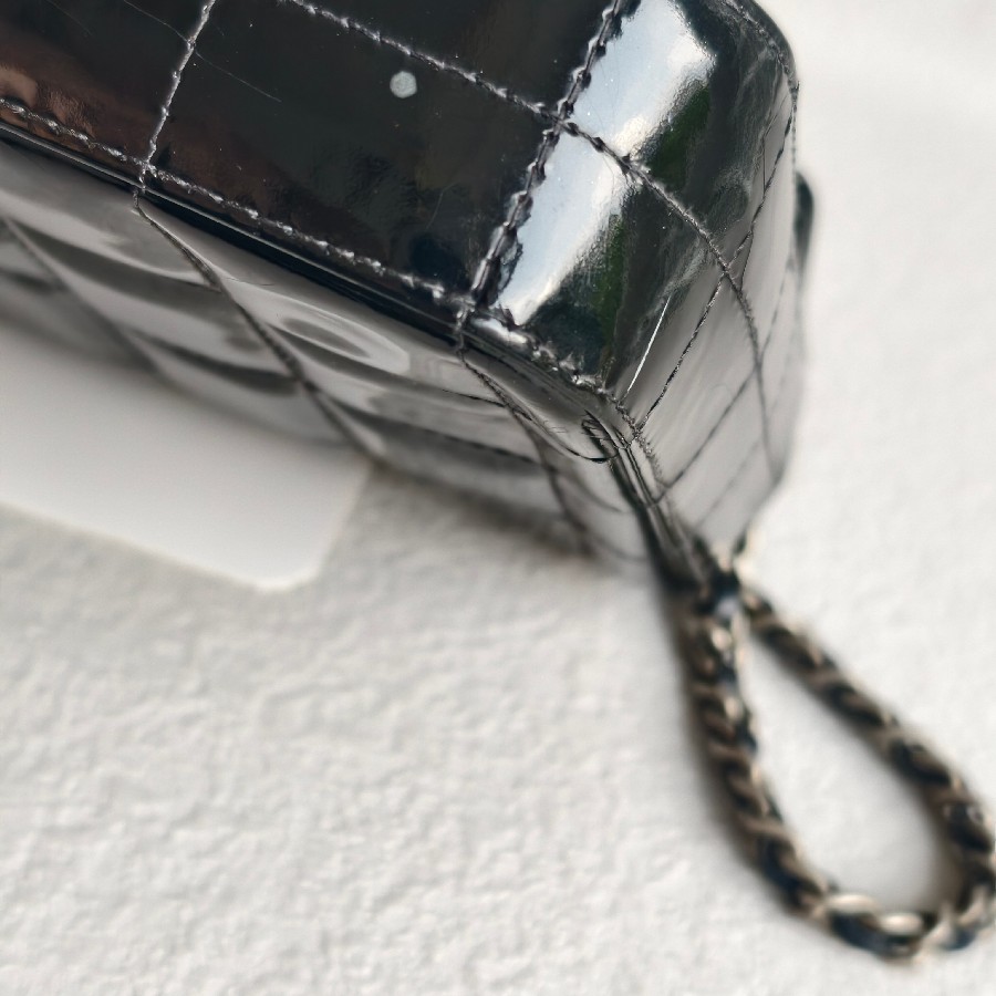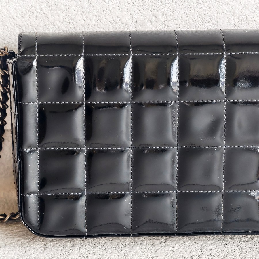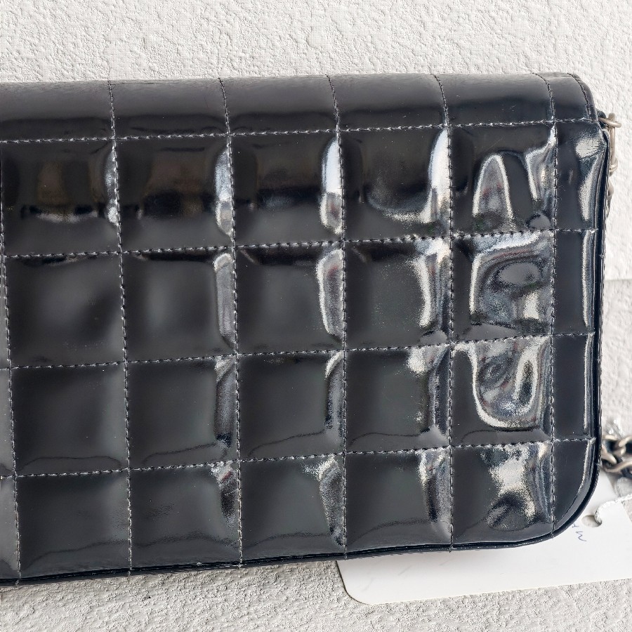 Chanel Vintage Chocolate Bar Flap Bag/Clutch Black Patent Leather with Gold Hardware #RYEU-2
