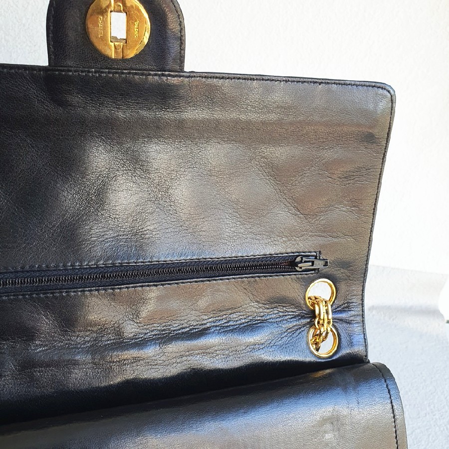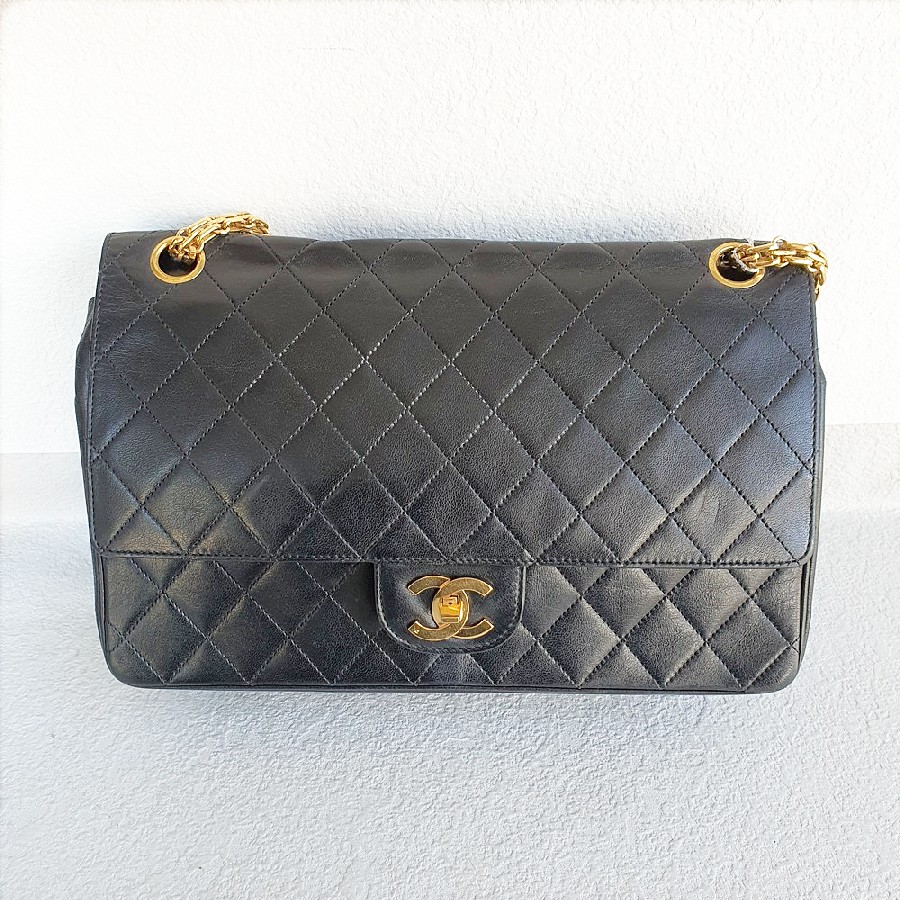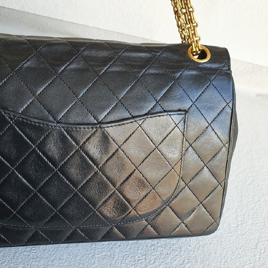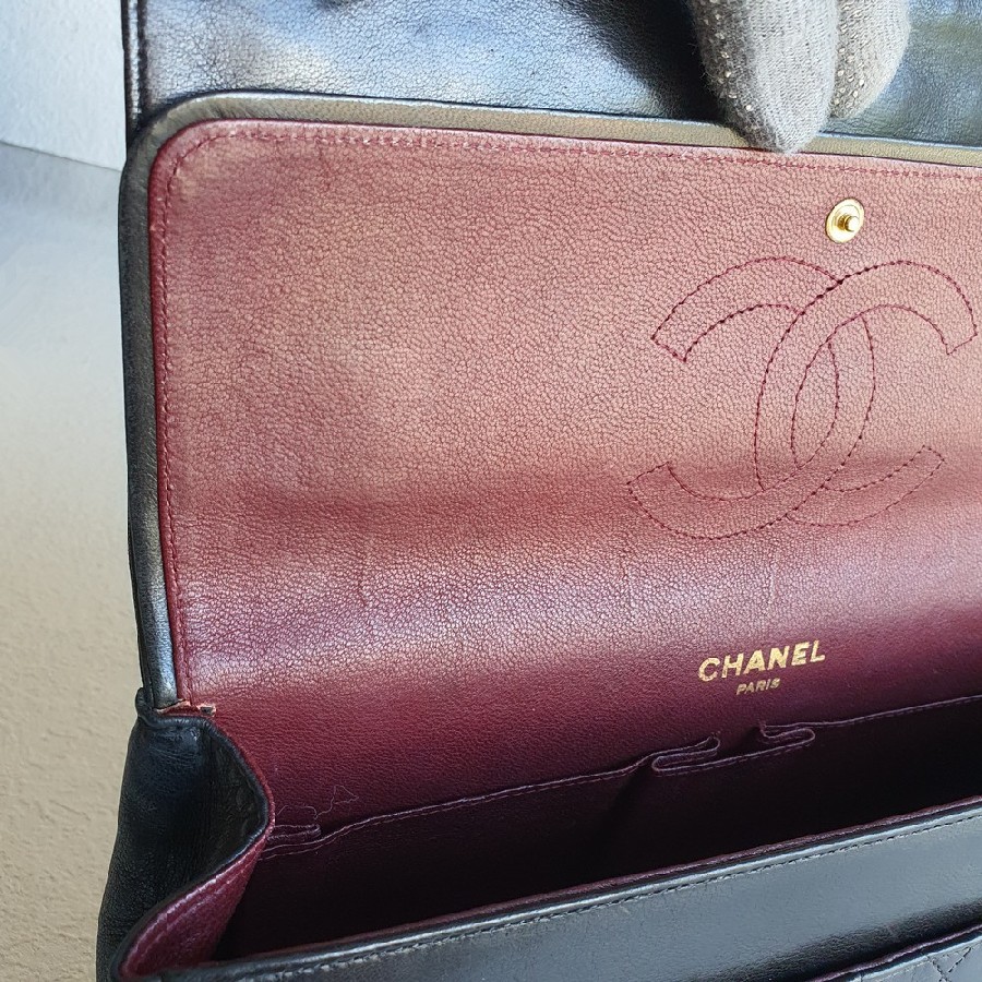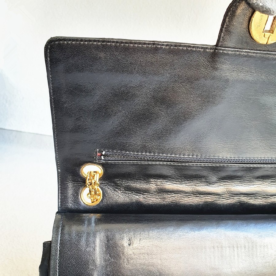 Chanel Vintage Medium Double Flap Black Lambskin with Gold Hardware #RCYT-3