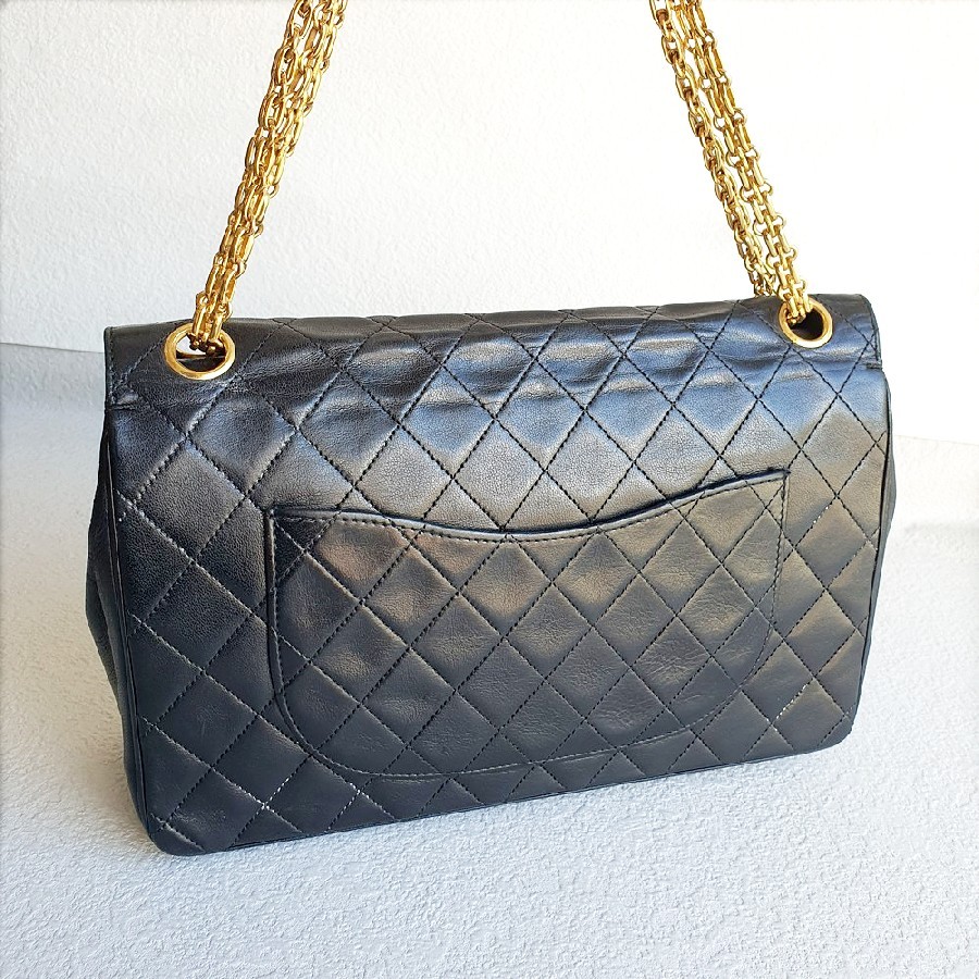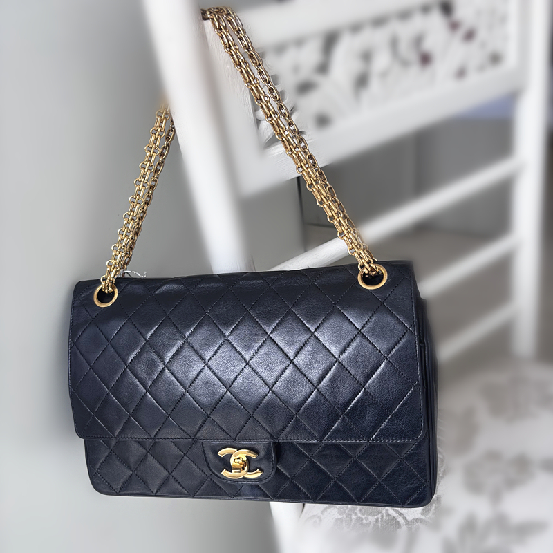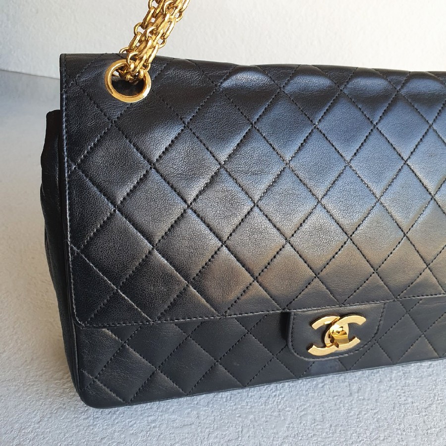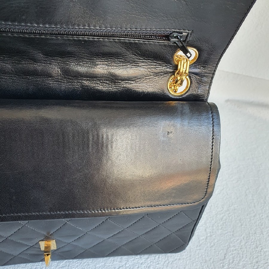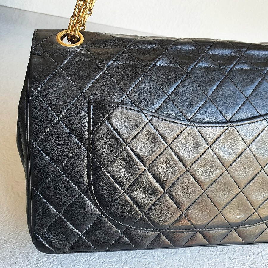 Chanel Vintage Medium Double Flap Black Lambskin with Gold Hardware #RCYT-3