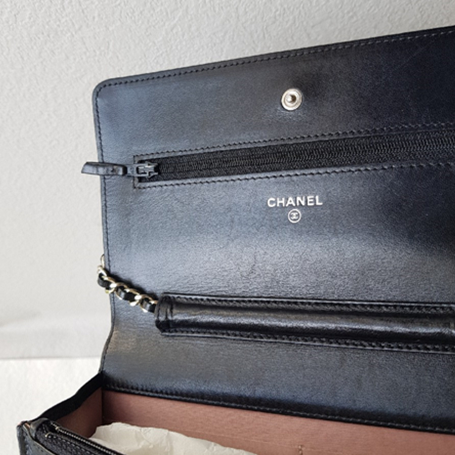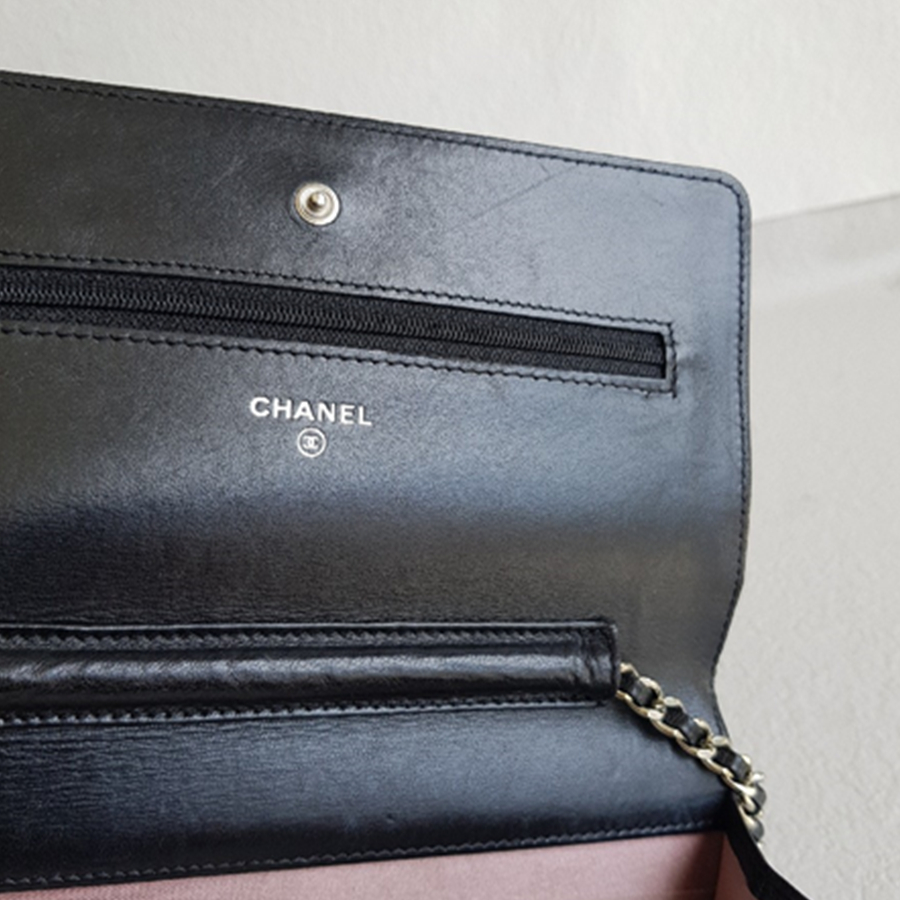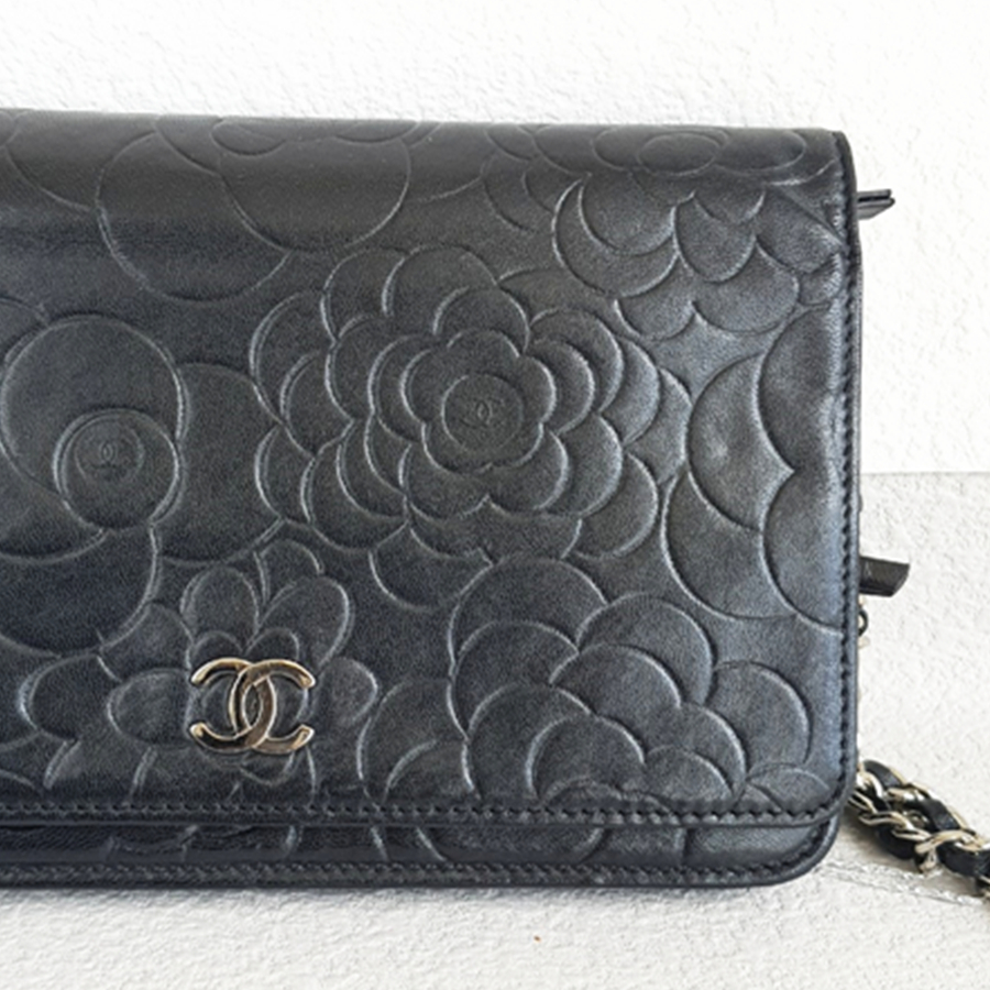 Chanel WOC Wallet On Chain Black Camellia Lambskin with Silver Hardware #RYOC-2