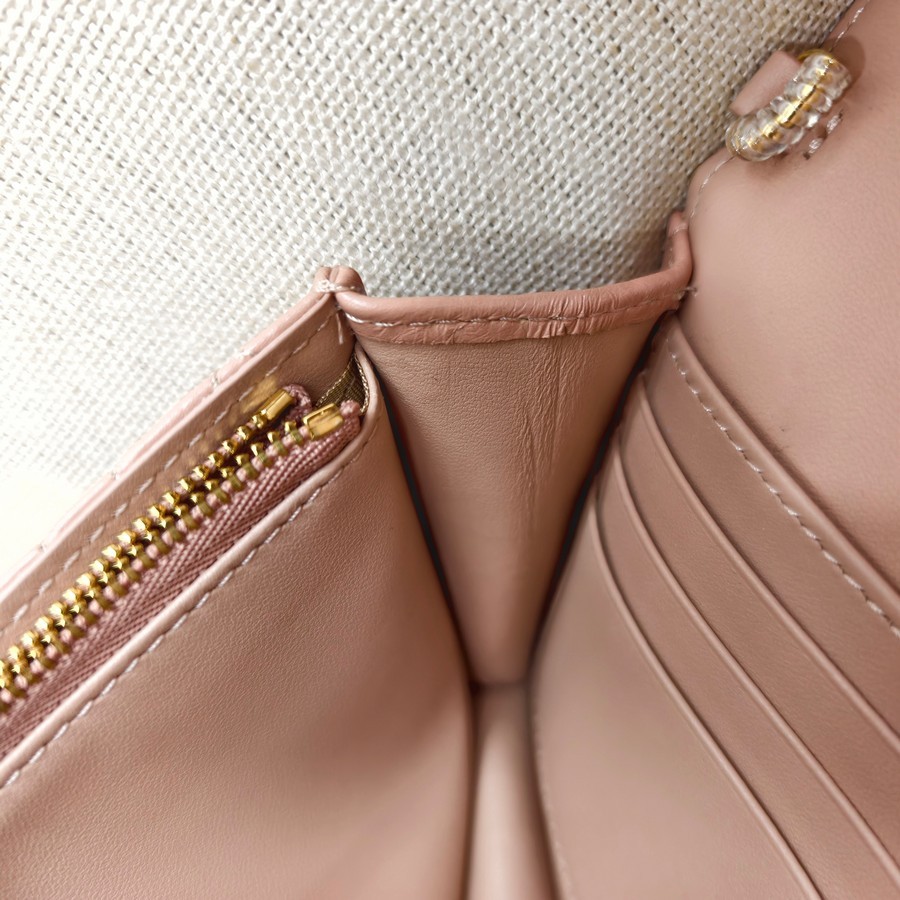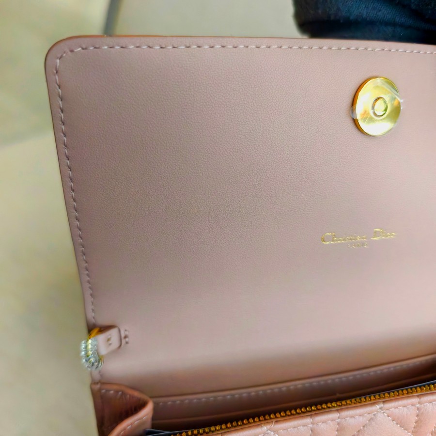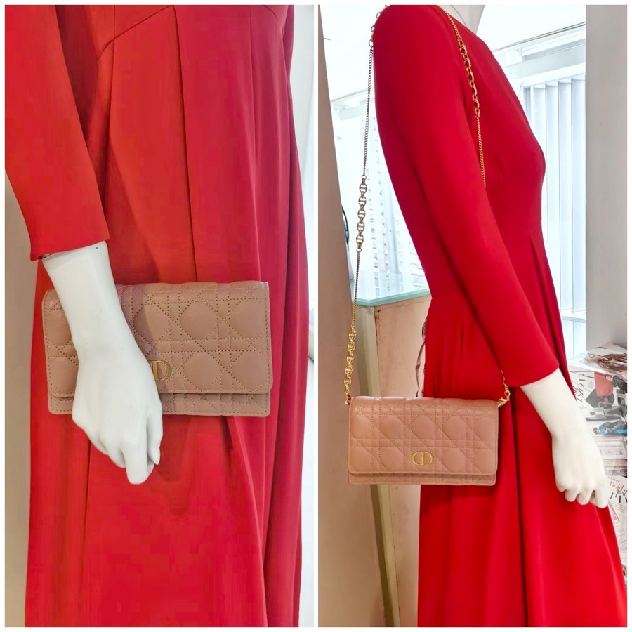 Christian Dior Caro Pouch with Chain Beige Lambskin with Gold Hardware #ROUU-1
