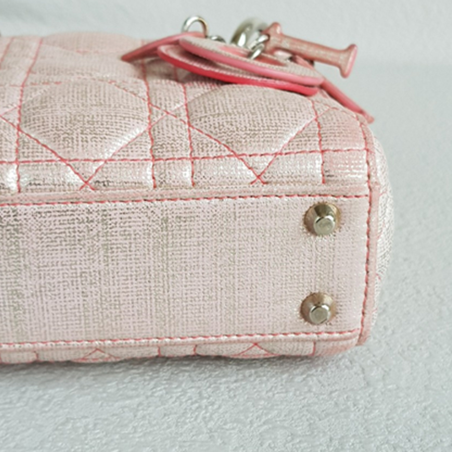 Christian Dior Lady Dior Micro Pink Lambskin with Silver Hardware #RYUU-1