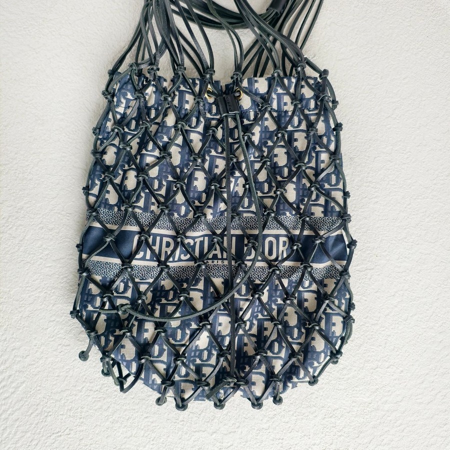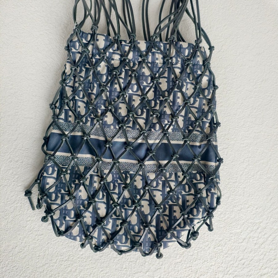 Christian Dior Net Buckle Bag BlueCalfskin /Oblique Technical Fabric Bag #RSTE-2