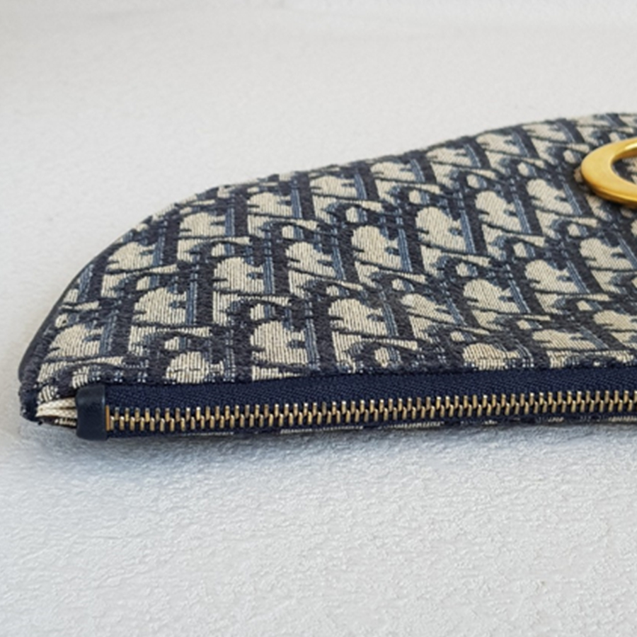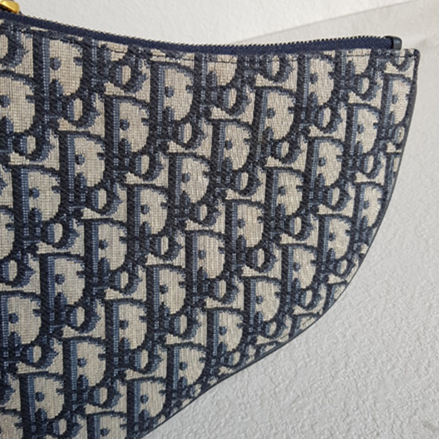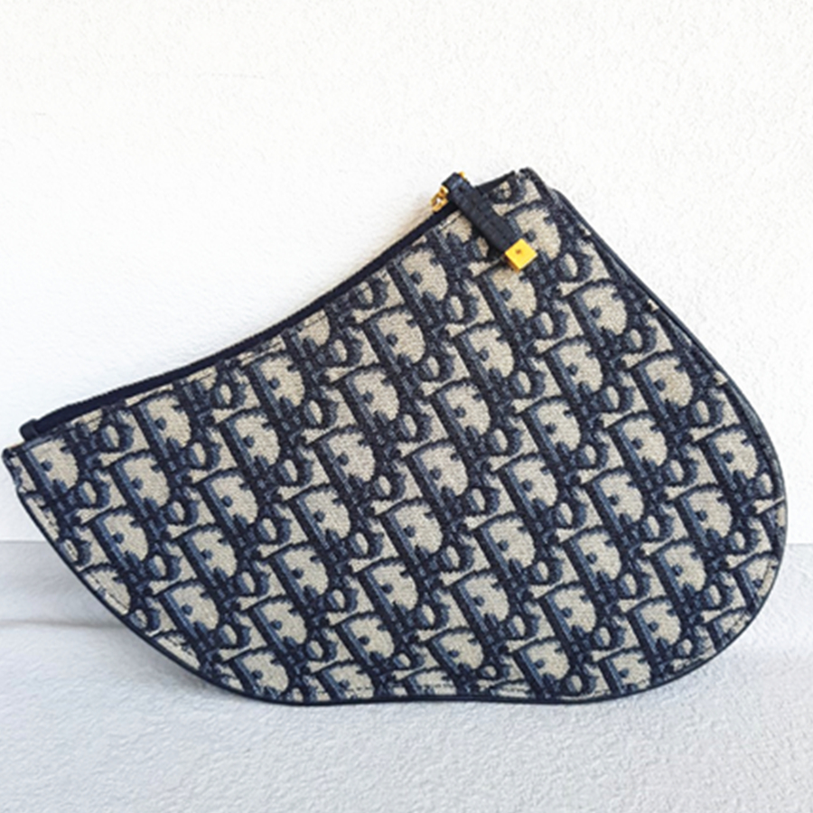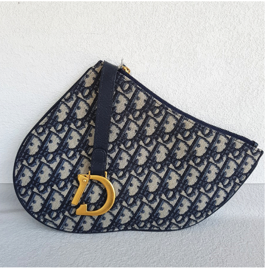 Christian Dior Saddle Clutch Blue Canvas with Leather and Gold Hardware #RCTL-1