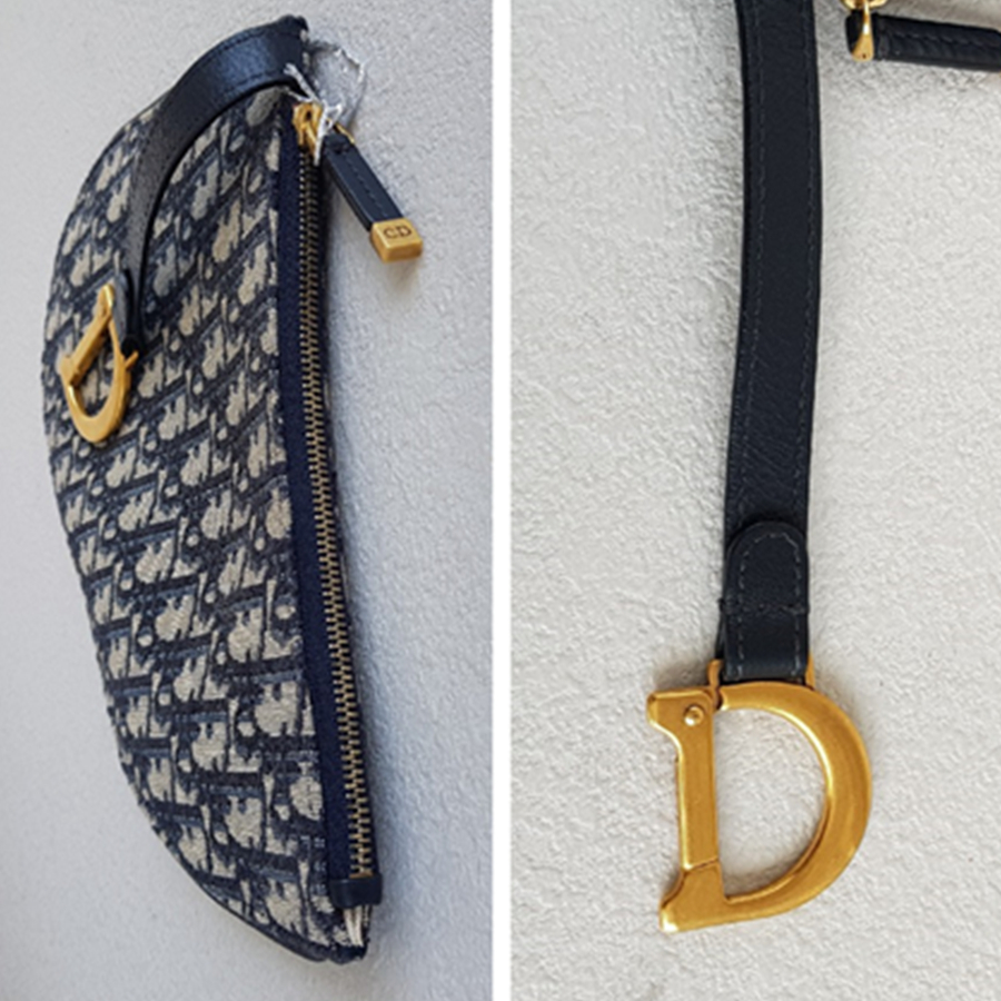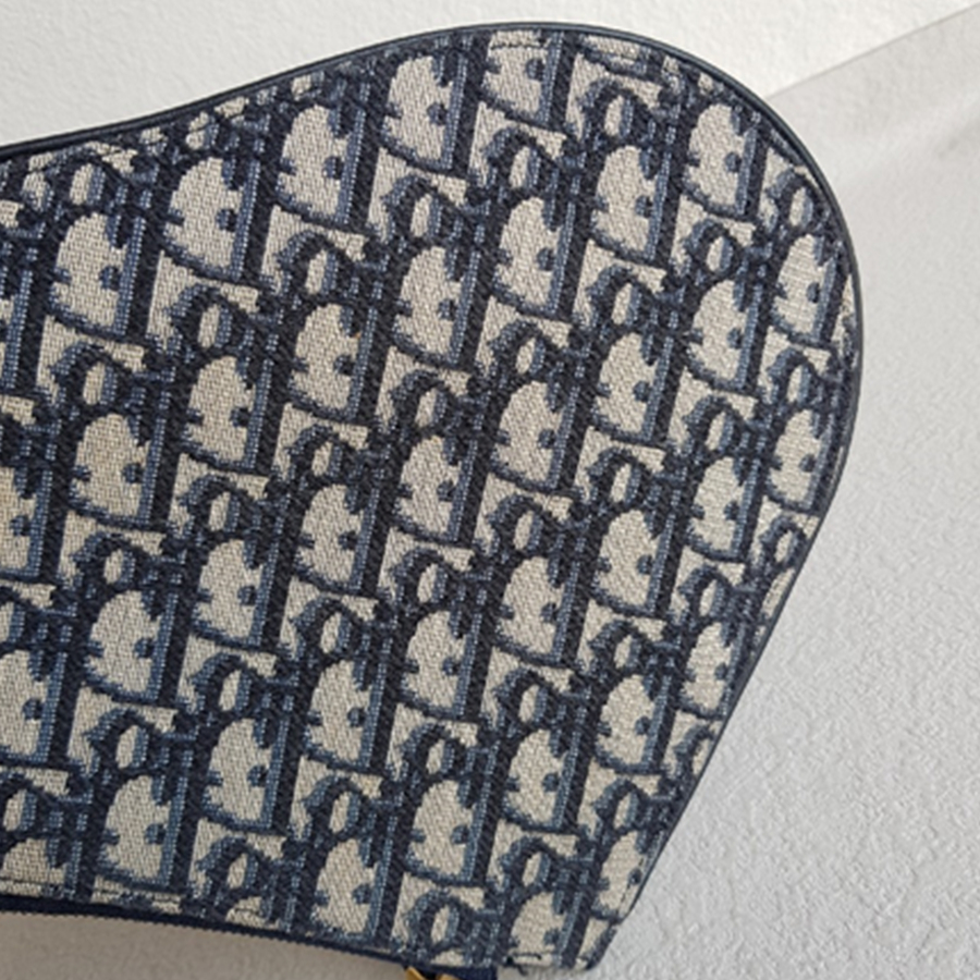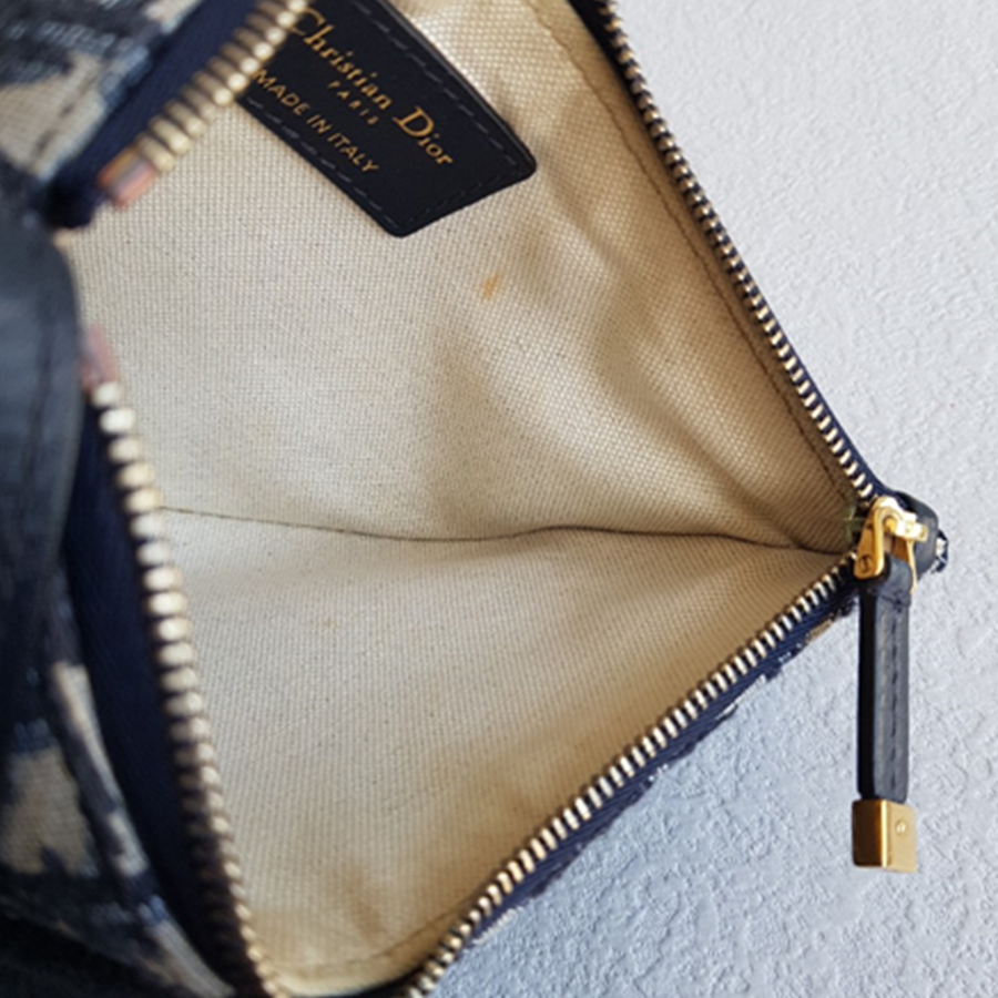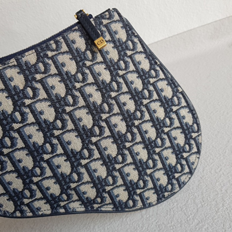 Christian Dior Saddle Clutch Blue Canvas with Leather and Gold Hardware #RCTL-1