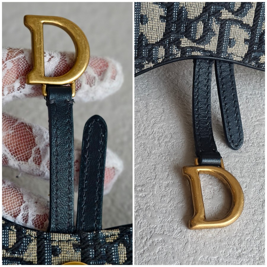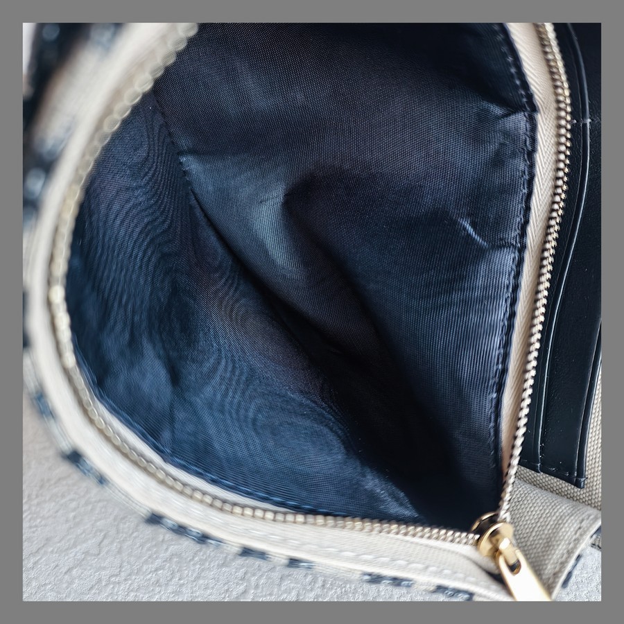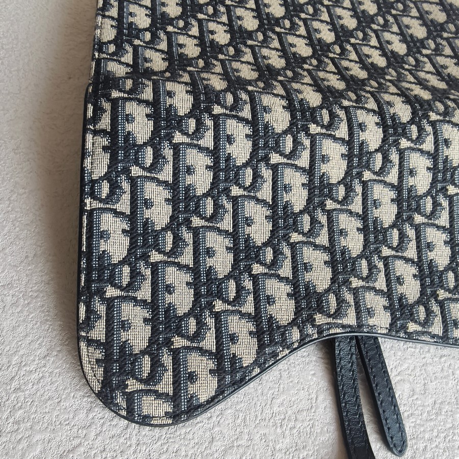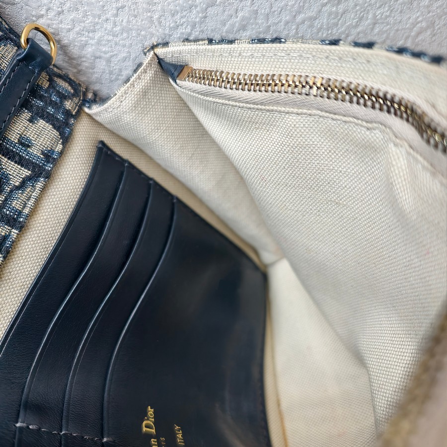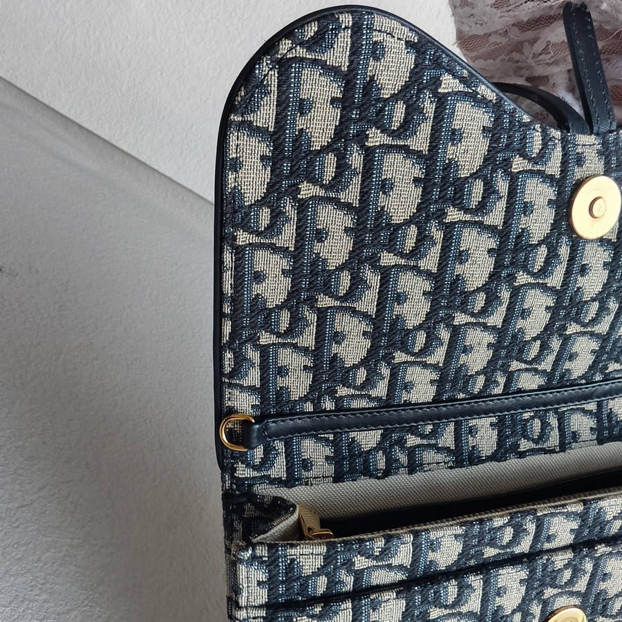 Christian Dior Saddle Pouch Chain/Clutch Blue Canvas with Leather and Gold Hardware #RTCS-1