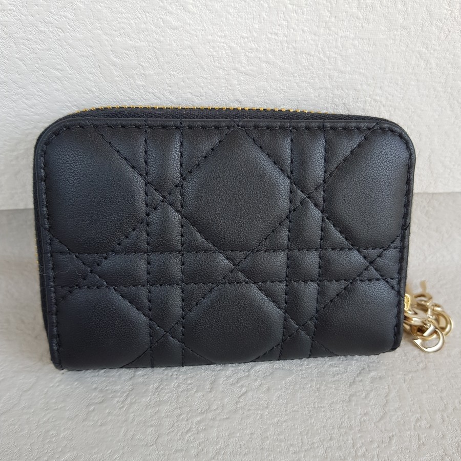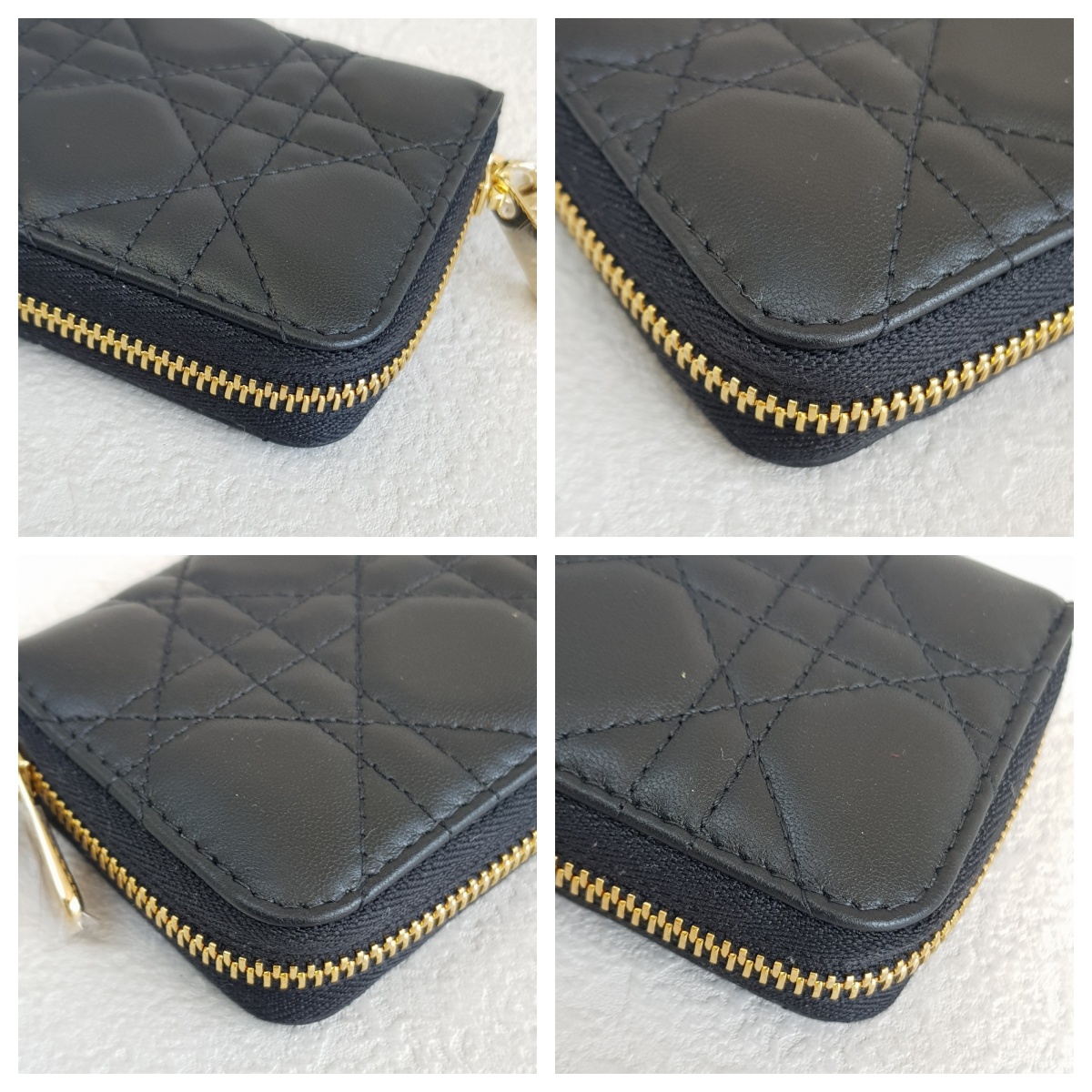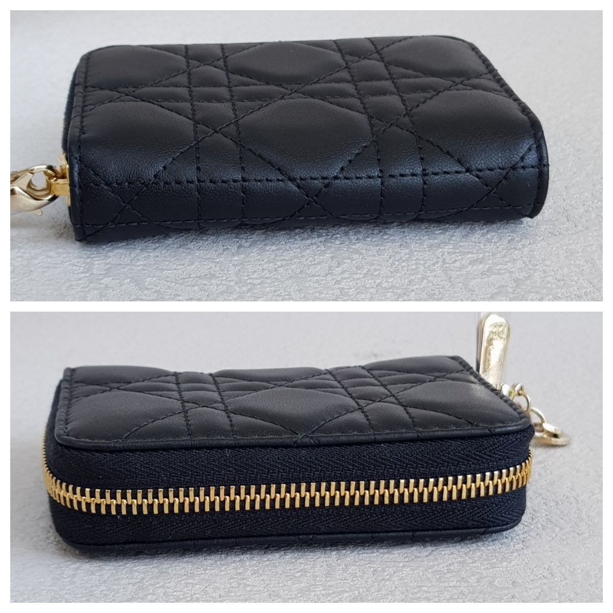 Christian Dior Small Lady Dior Voyageur Coin Purse Black Lambskin with Gold Hardware #RTYC-1