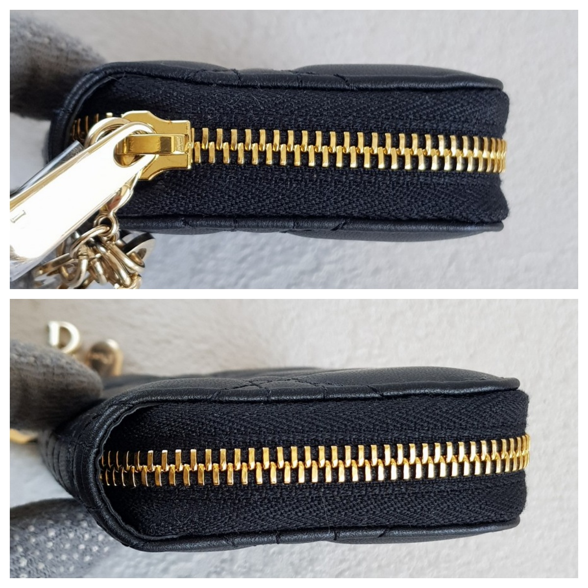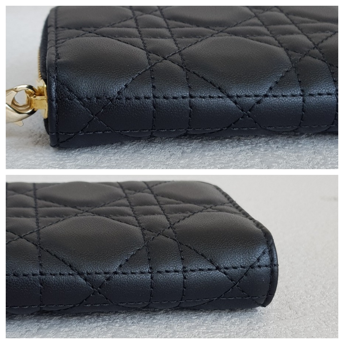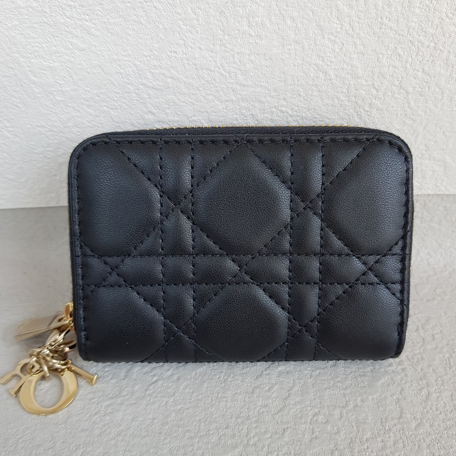 Christian Dior Small Lady Dior Voyageur Coin Purse Black Lambskin with Gold Hardware #RTYC-1