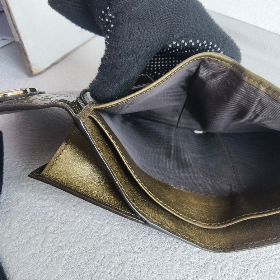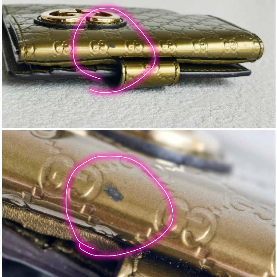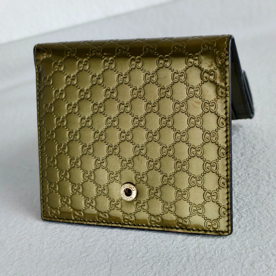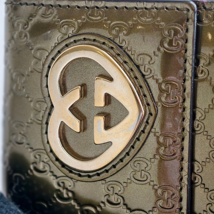 Gucci Compact Wallet Gold Guccissima Patent Leather with Gold Hardware #GUULU-1