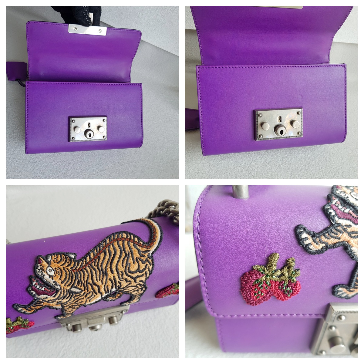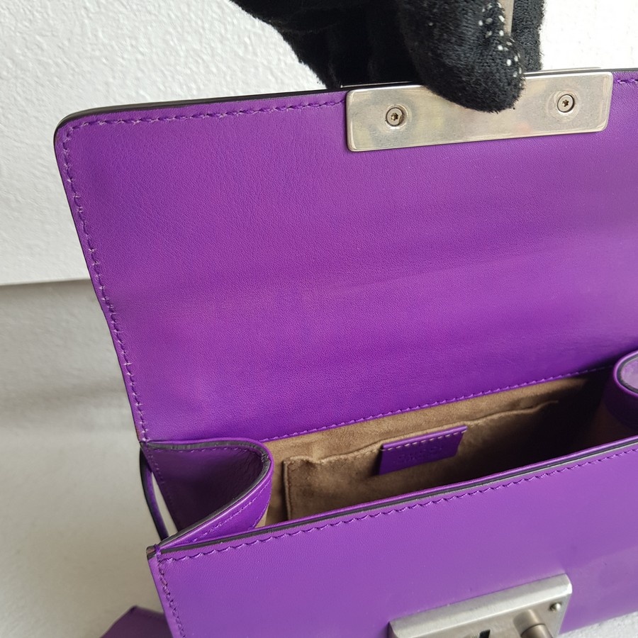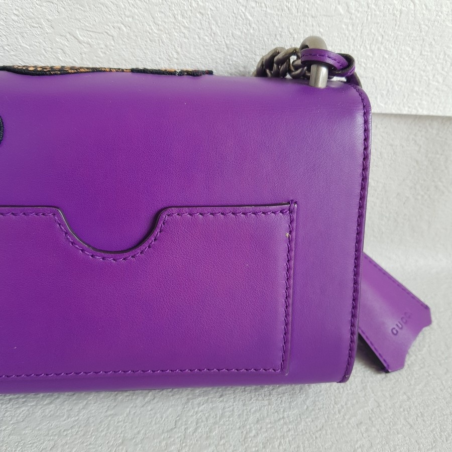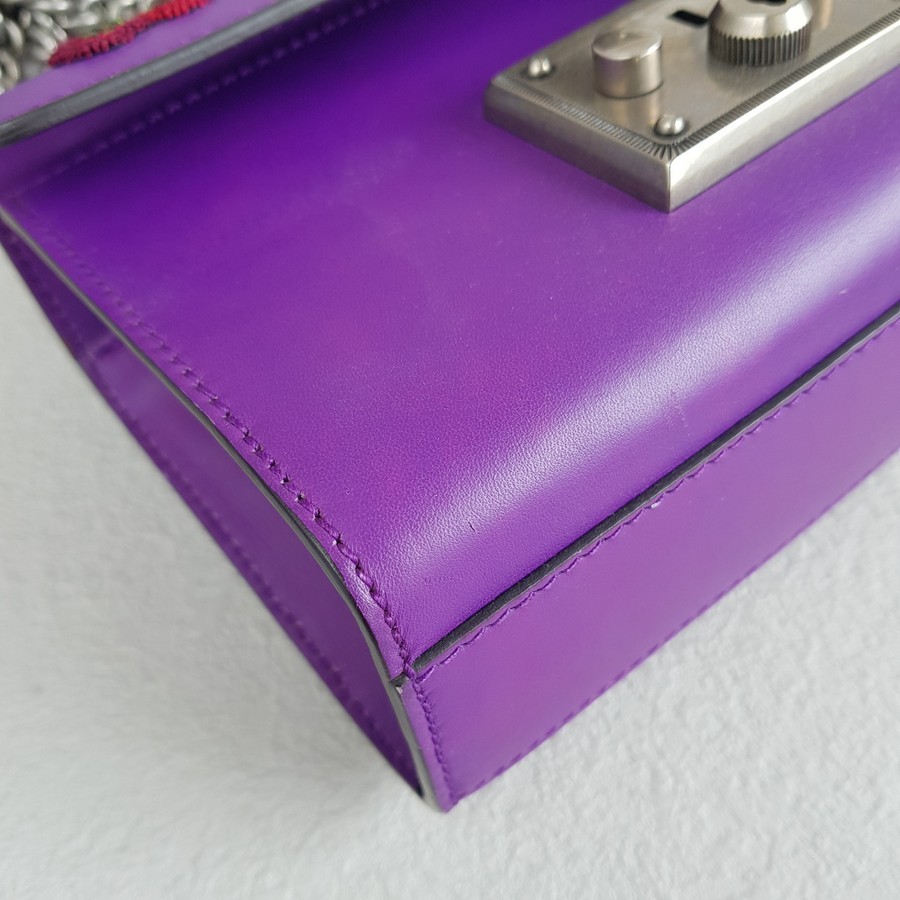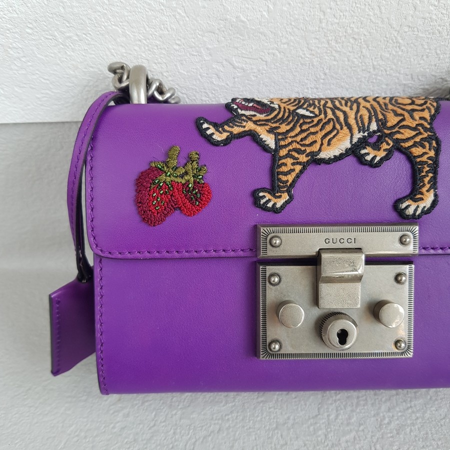 Gucci Padlock Bag Small Purple Smooth Leather Embroidered Tiger and Strawberry with Antique Silver Hardware #RUTT-1