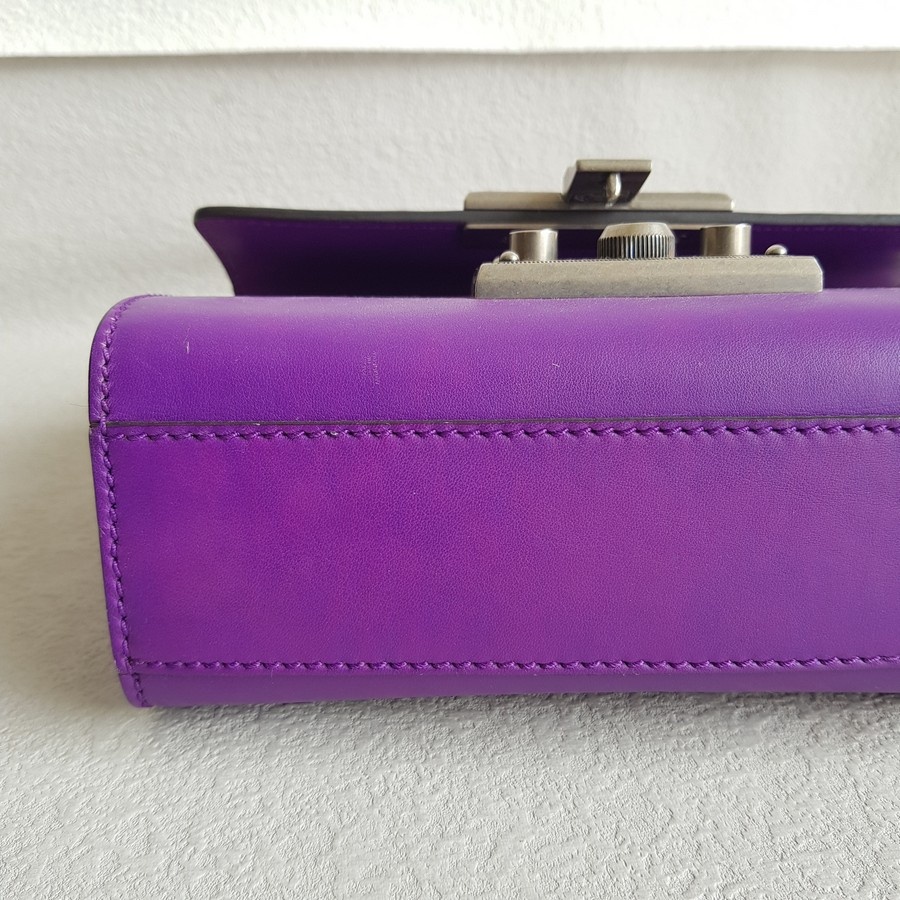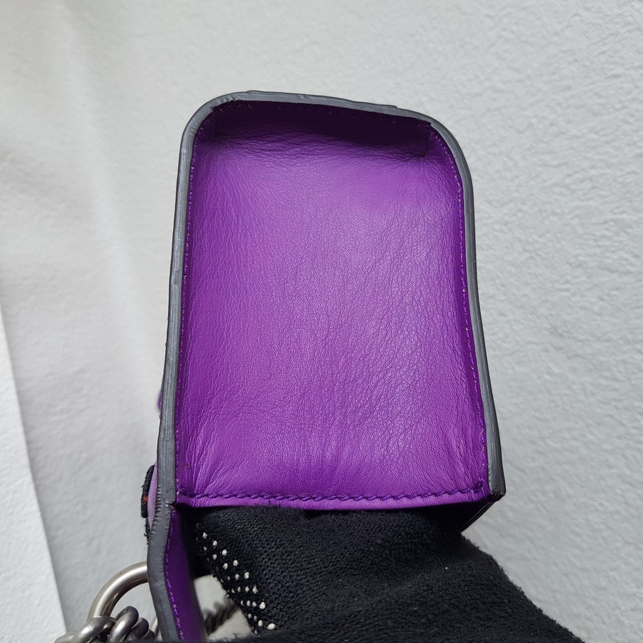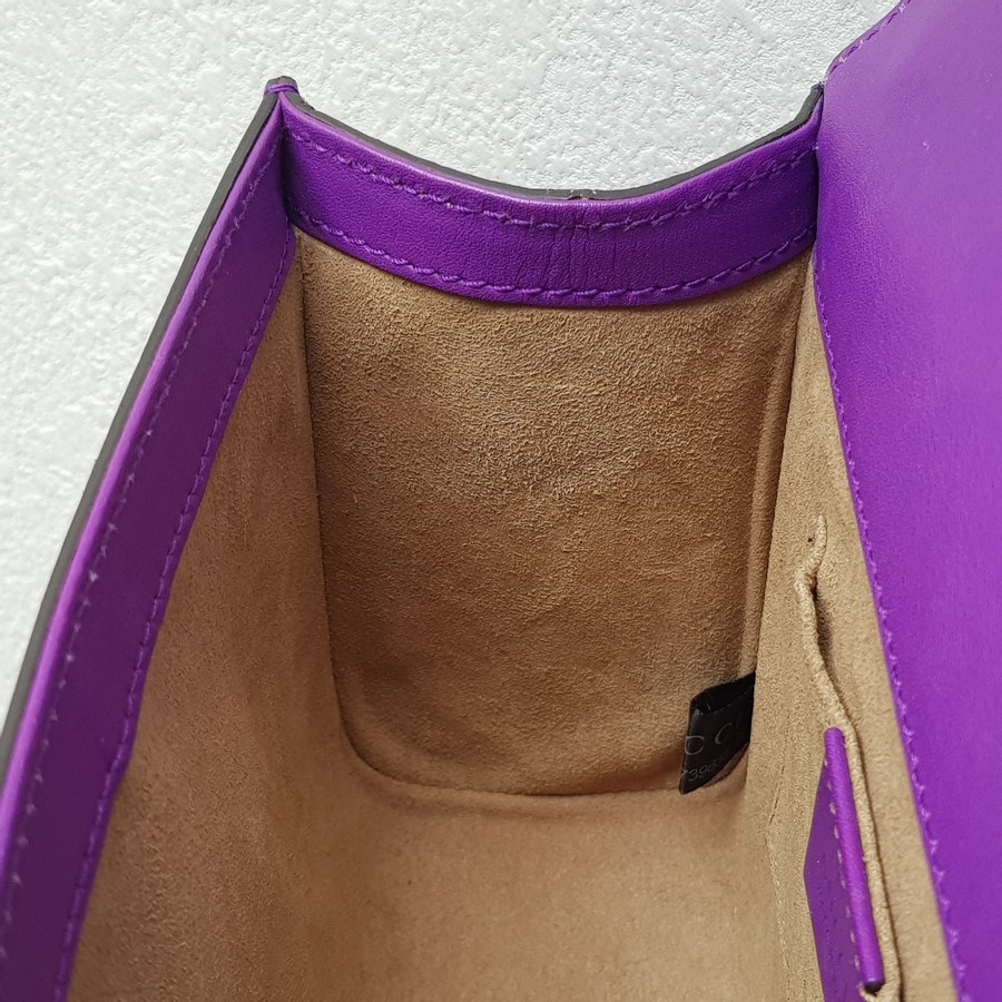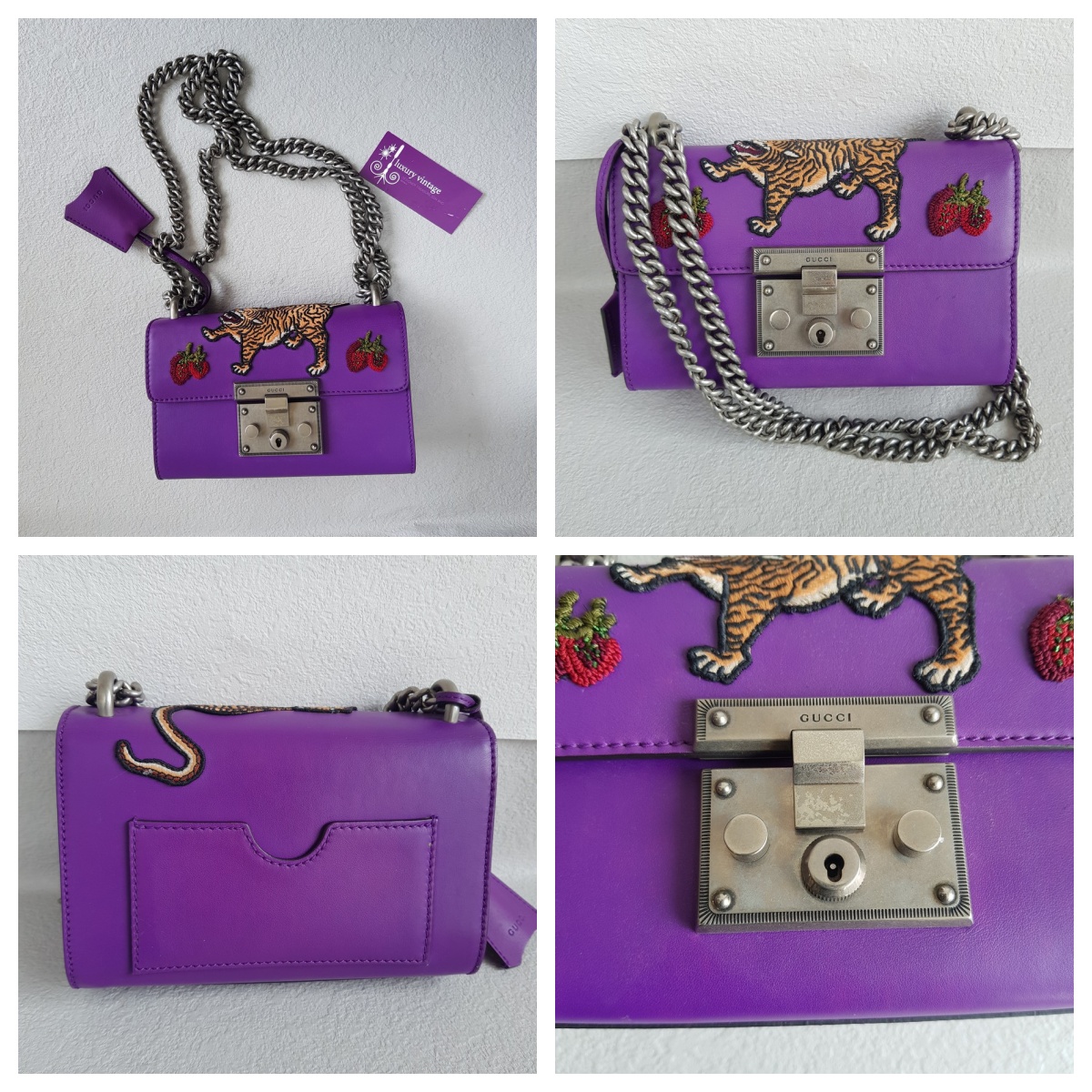 Gucci Padlock Bag Small Purple Smooth Leather Embroidered Tiger and Strawberry with Antique Silver Hardware #RUTT-1