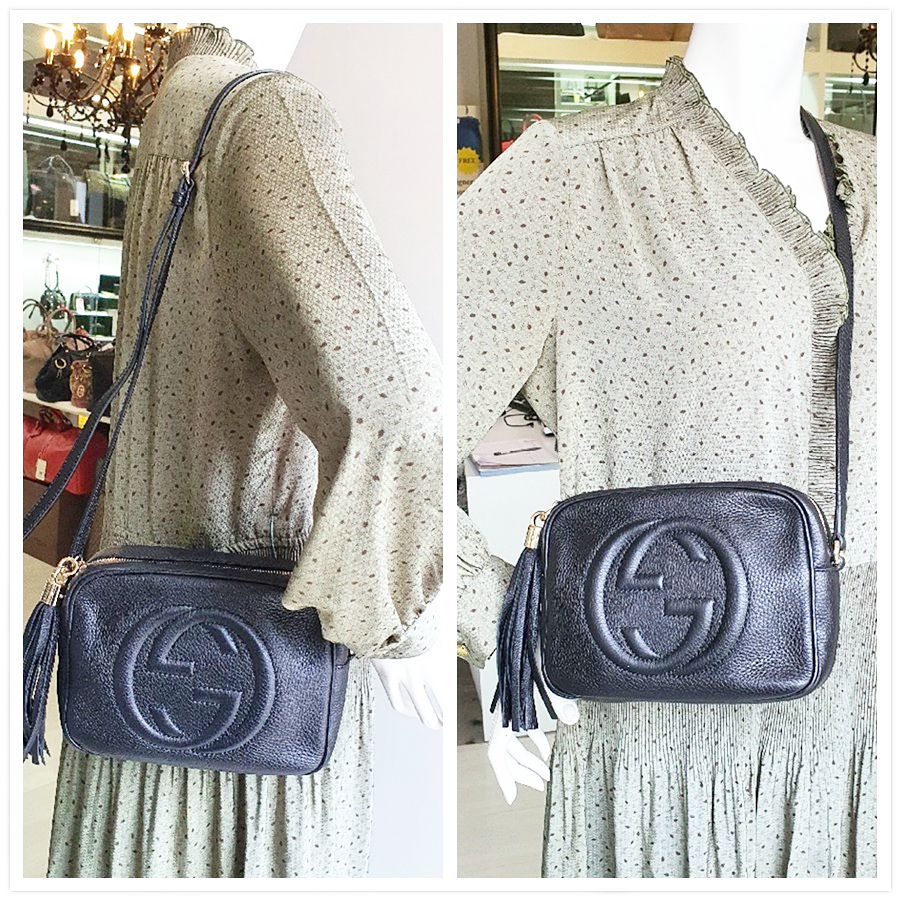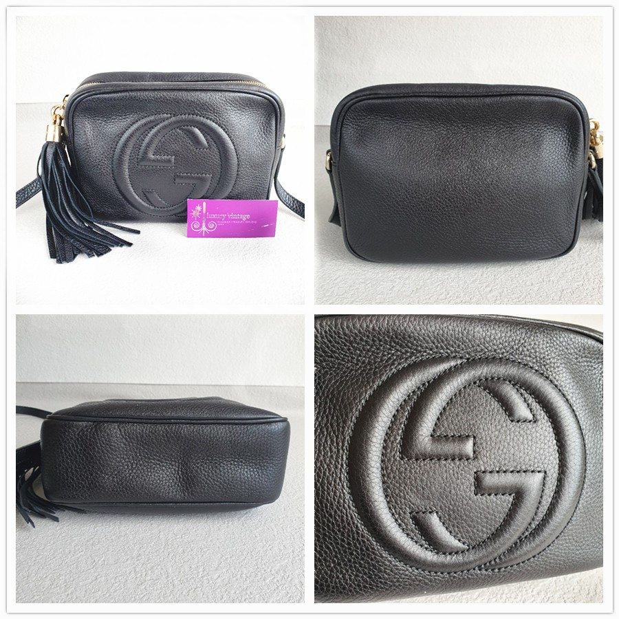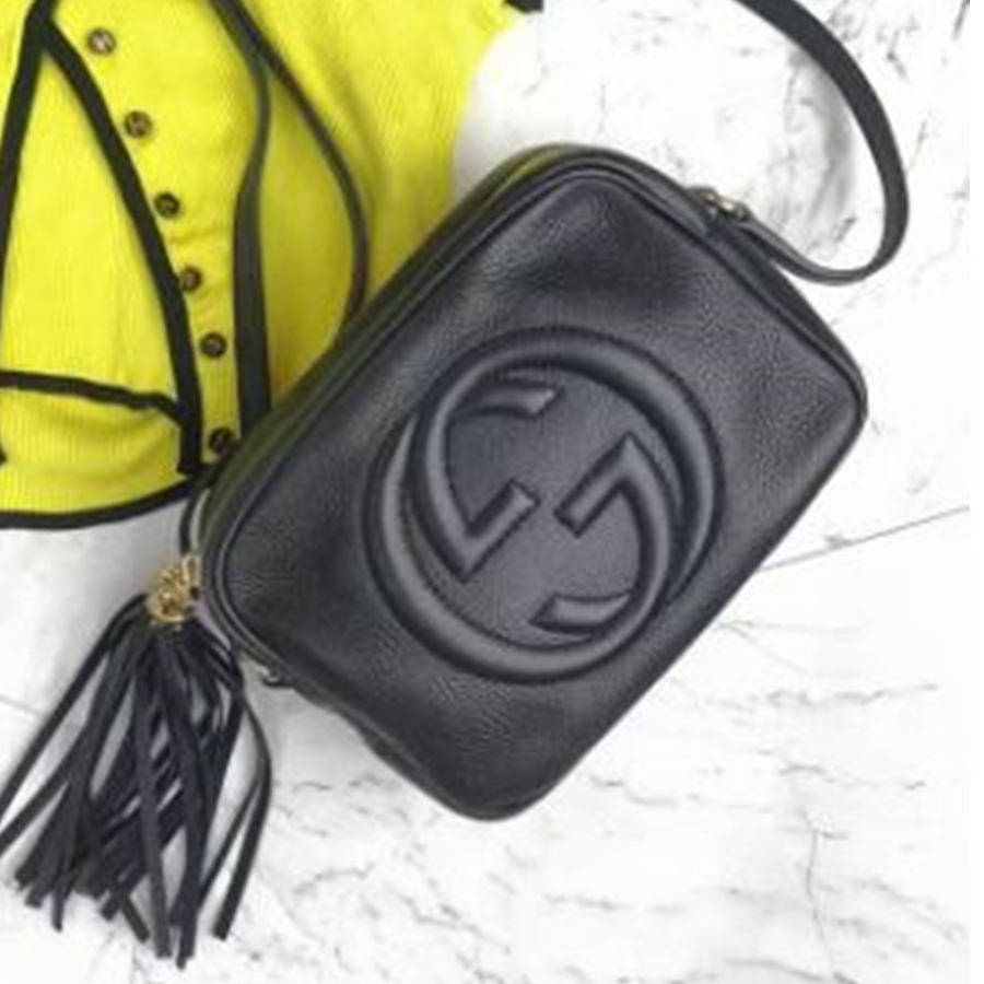 Gucci Soho Crossbody Bag Black Calf Leather with Gold Hardware #RYUK-2